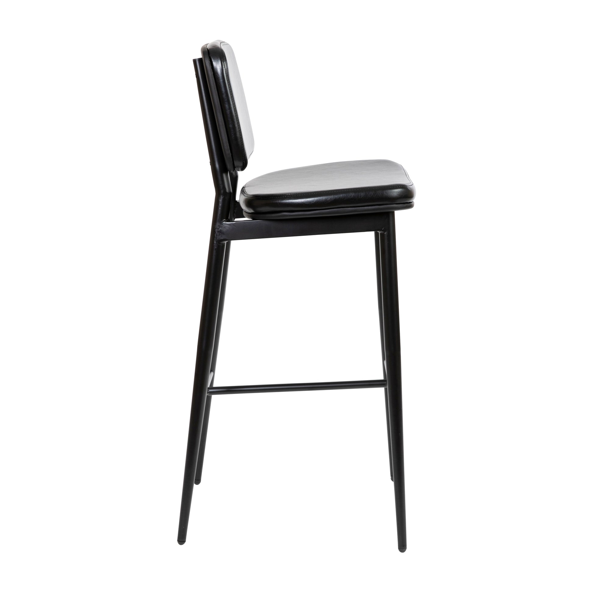 Kenzie Commercial Grade Mid-Back Barstools - Black LeatherSoft Upholstery - Black Iron Frame with Integrated Footrest - Set of 2 Dimensions: 18"W x 19.5"D x 42"H