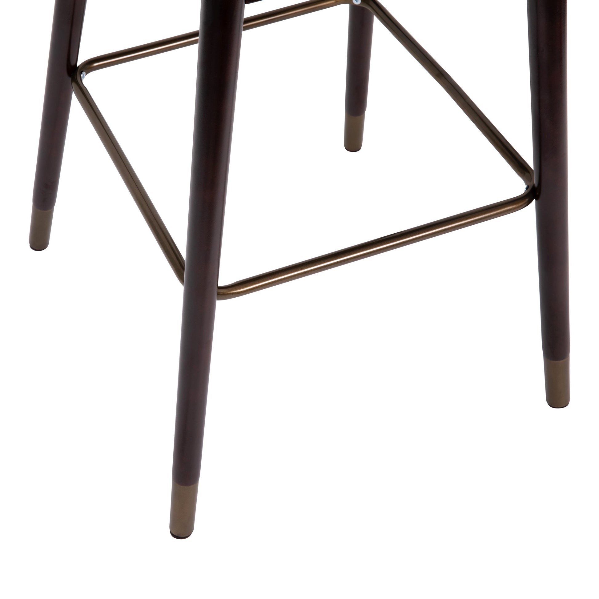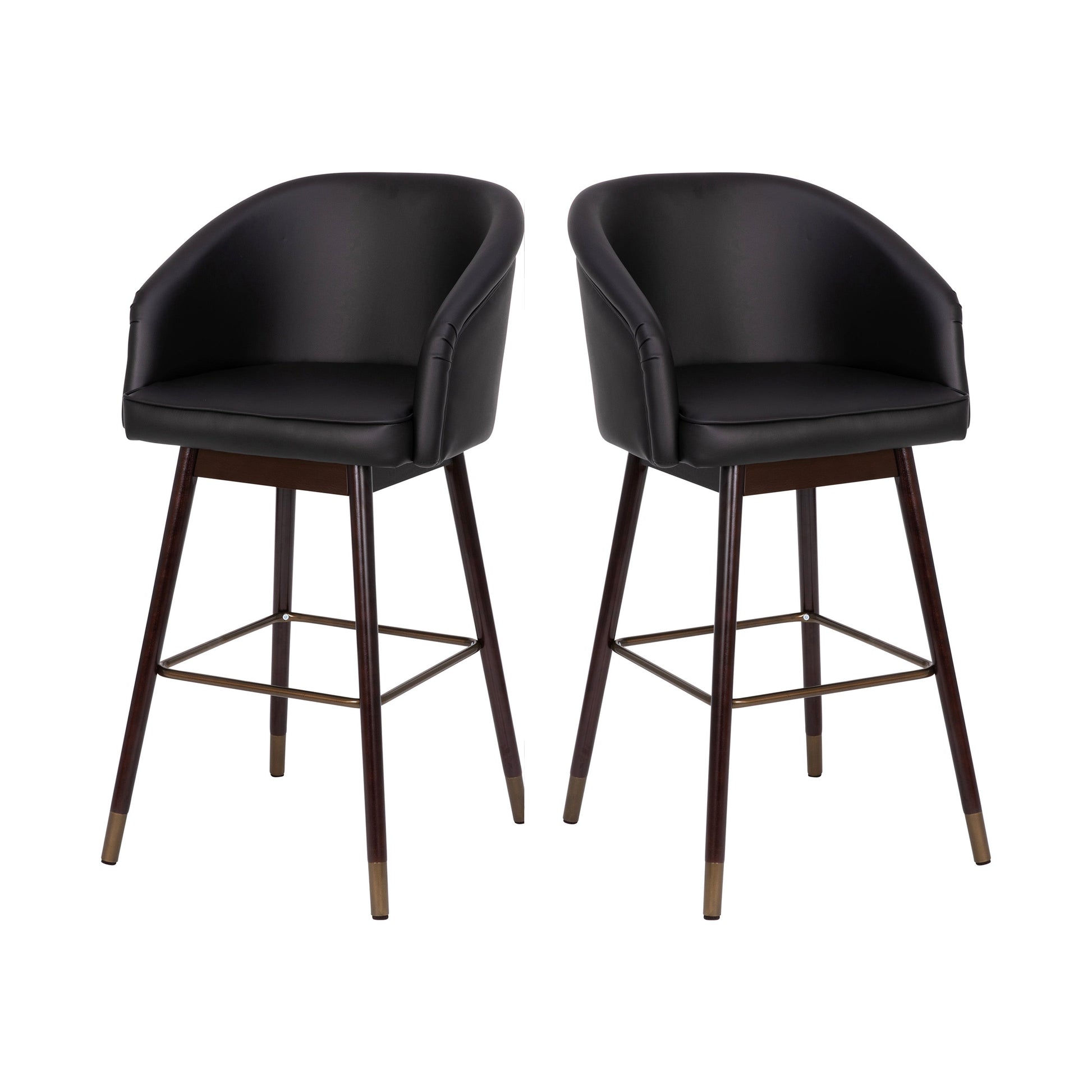 Margo 30" Commercial Grade Mid-Back Modern Barstool with Walnut Finish Beechwood Legs and Curved Back, Black LeatherSoft/Bronze Accents-Set of 2 Dimensions: 22"W x 22"D x 42"H