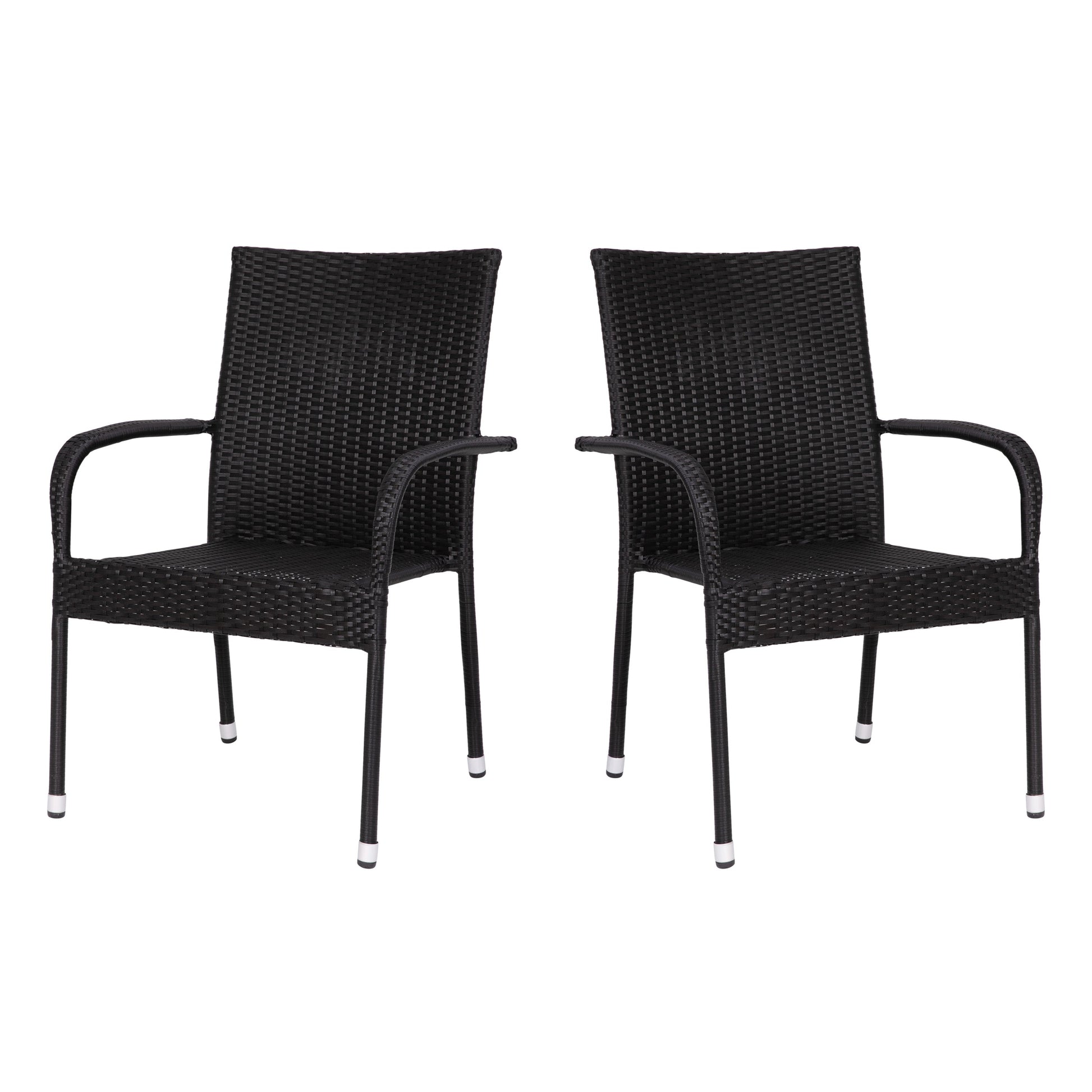 Maxim Set of 2 Stackable Indoor/Outdoor Wicker Dining Chairs with Arms - Fade & Weather-Resistant Steel Frames - Black Dimensions: 26"W x 24"D x 36.5"H