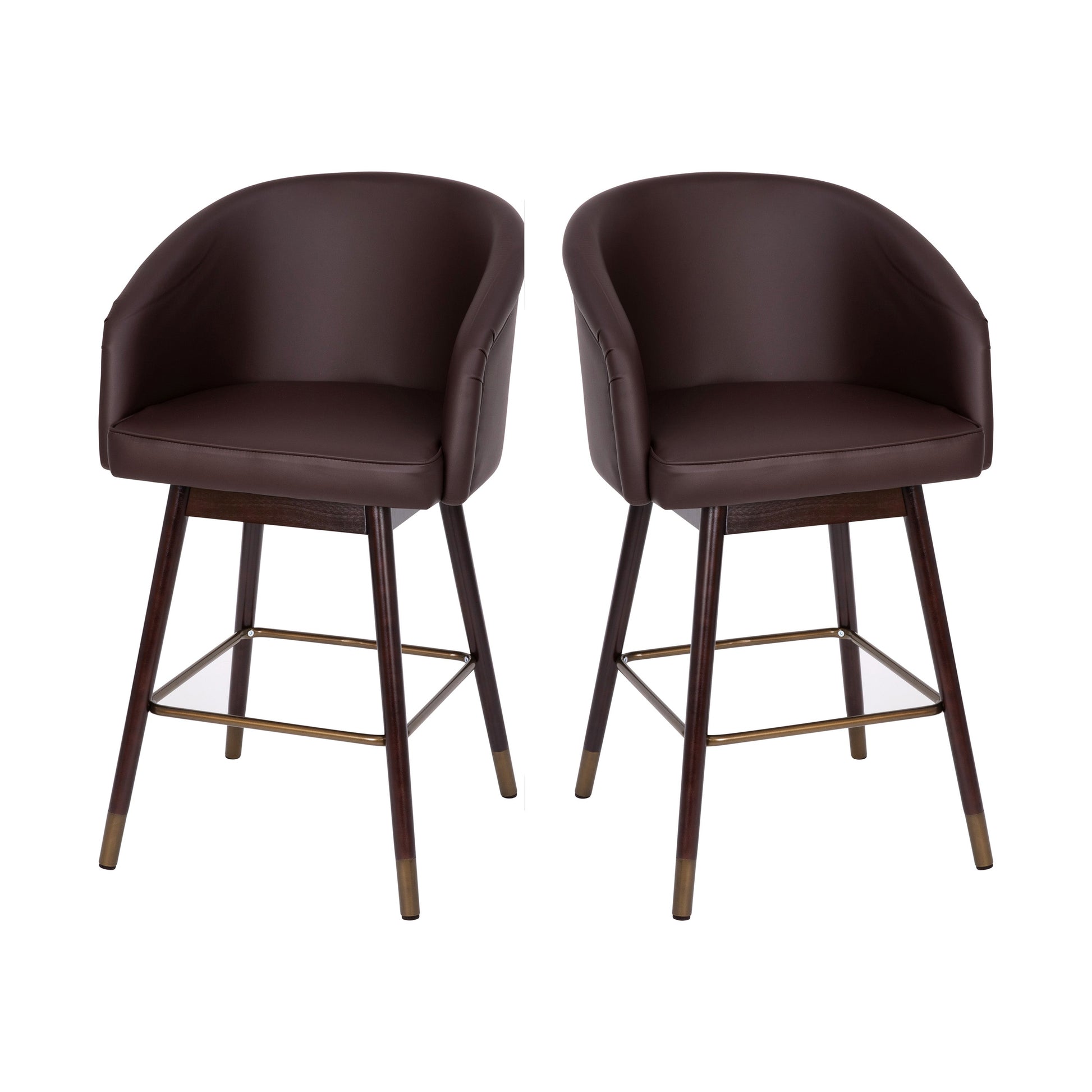 Margo 26" Commercial Mid-Back Modern Counter Stool, Walnut Finish Beechwood Legs and Contoured Back, Brown LeatherSoft/Bronze Accents - Set of 2 Dimensions: 22"W x 22"D x 38.25"H