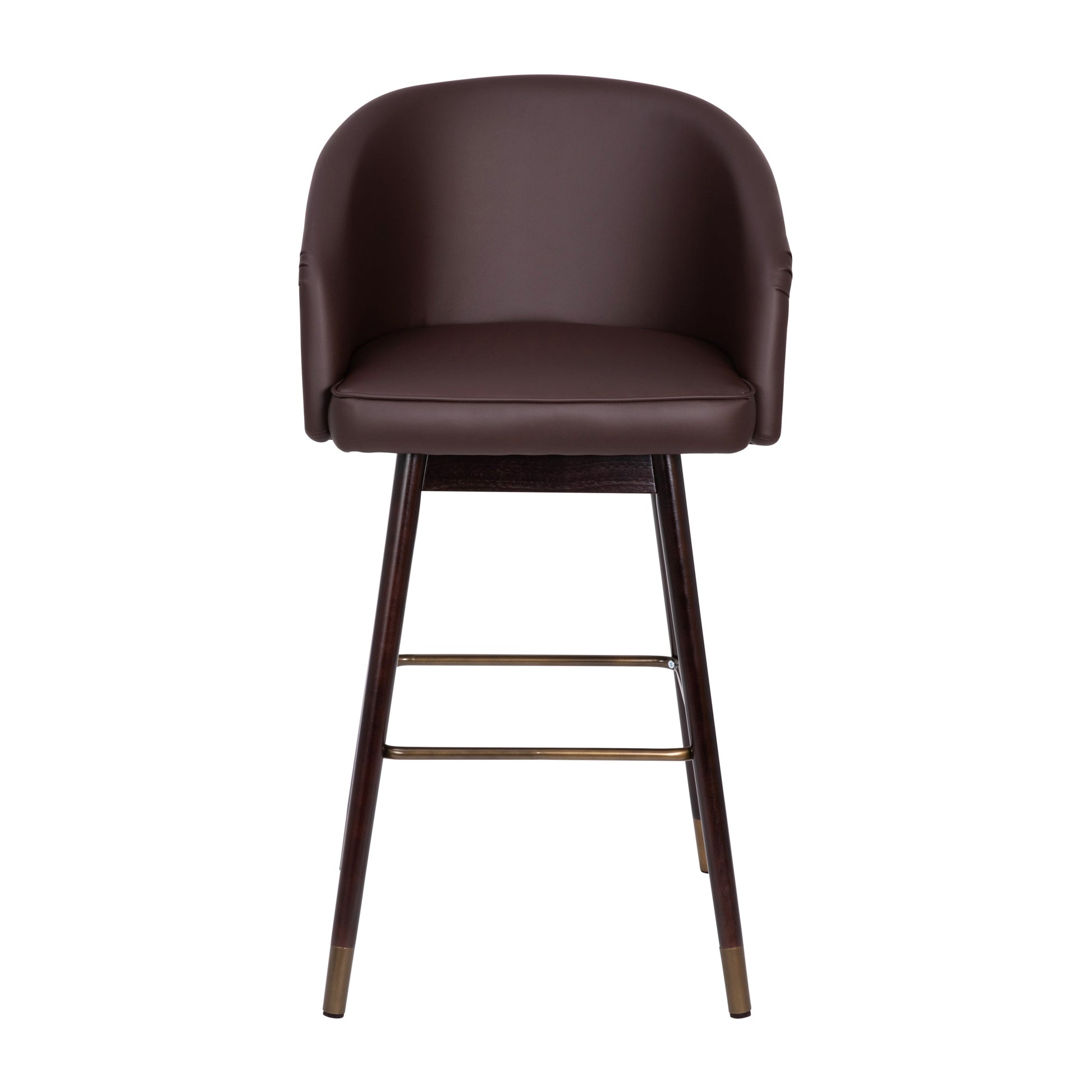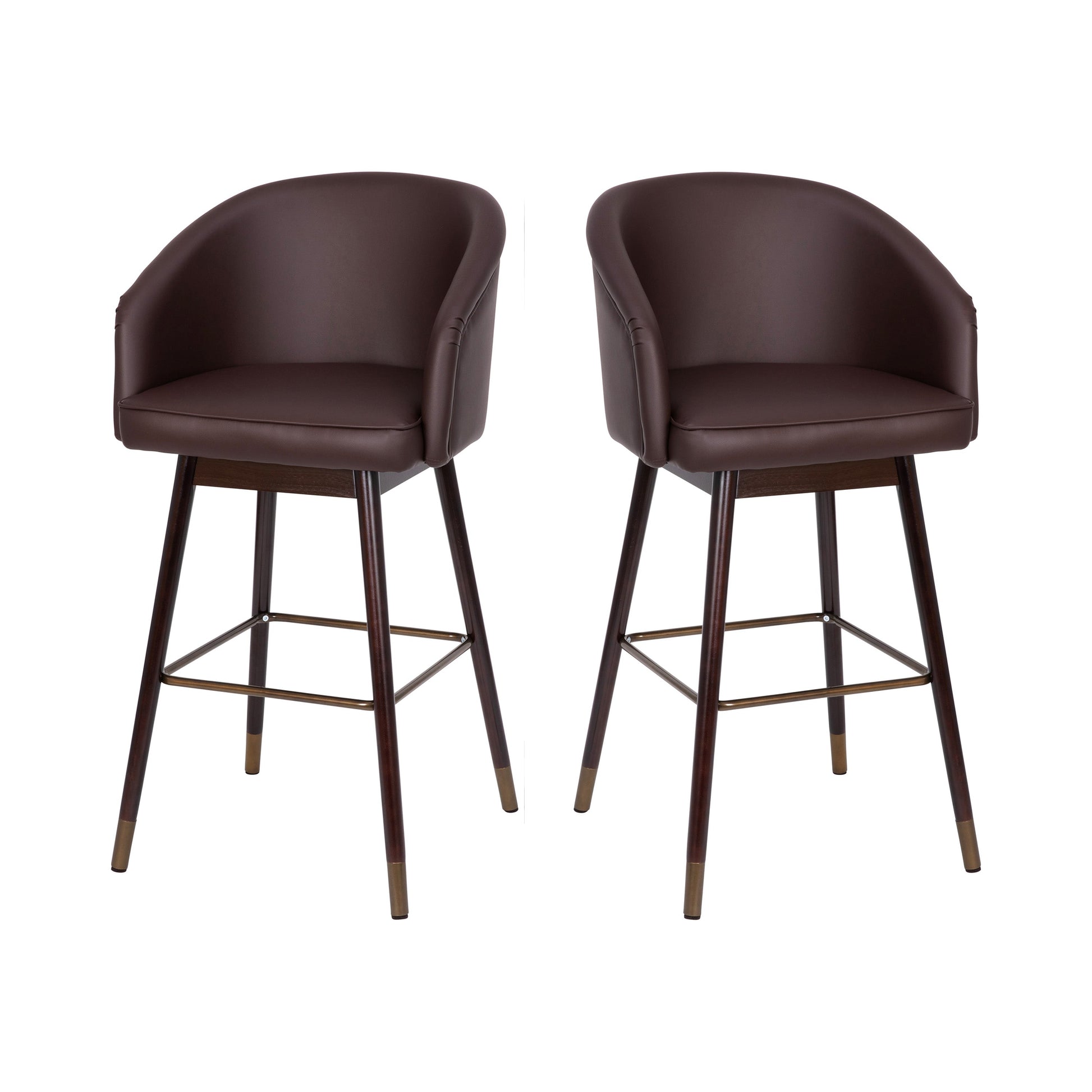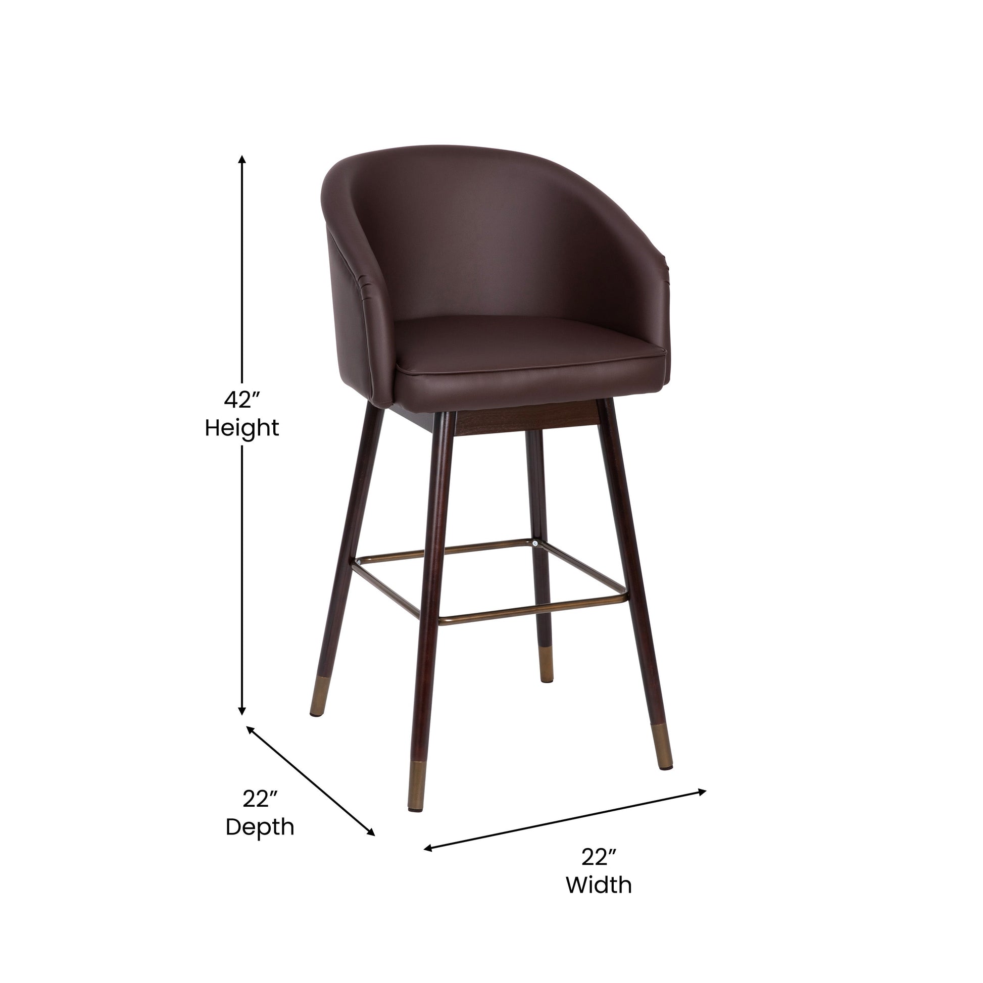 Margo 30" Commercial Grade Mid-Back Modern Barstool with Walnut Finish Beechwood Legs and Curved Back, Brown LeatherSoft/Bronze Accents-Set of 2 Dimensions: 22"W x 22"D x 42"H
