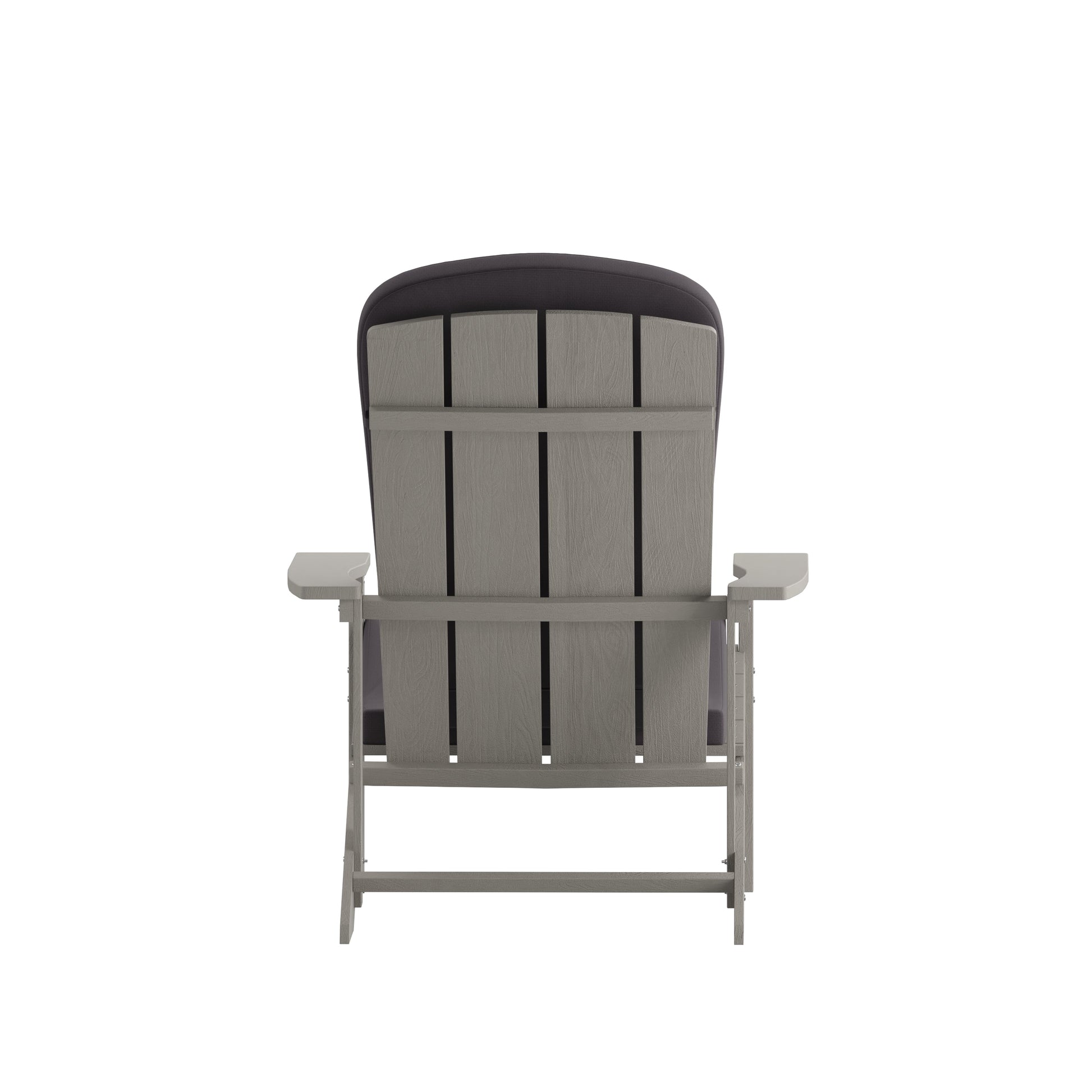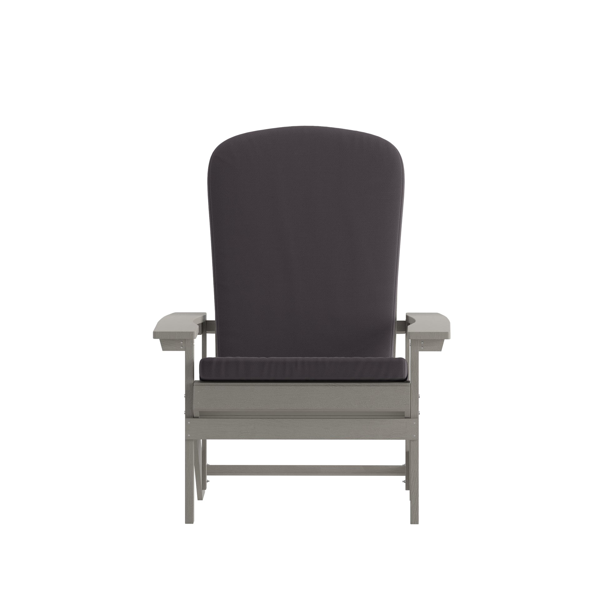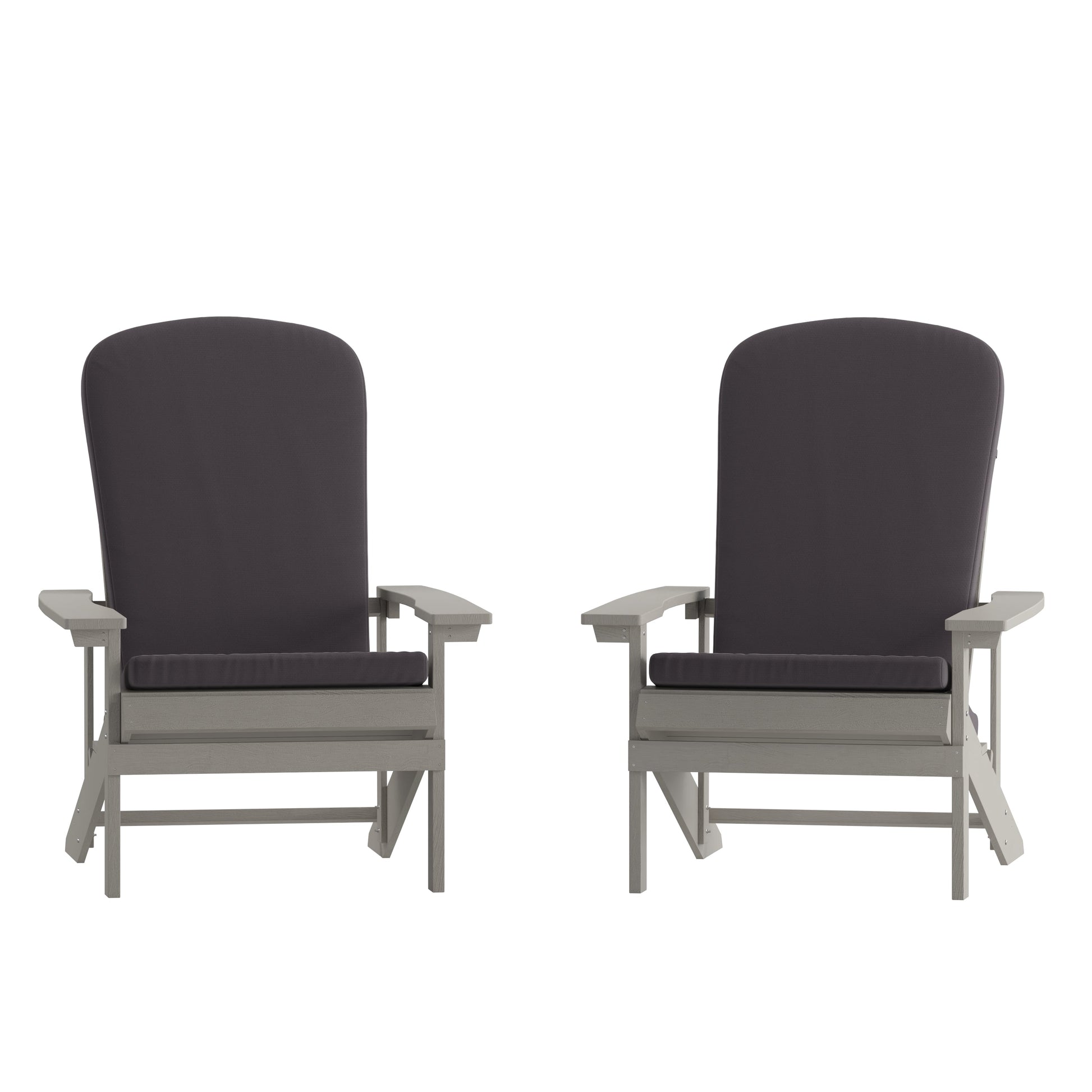 Charlestown Set of 2 All-Weather Poly Resin Wood Adirondack Chairs in Gray with Gray Cushions for Deck, Porch, and Patio Dimensions: 29.5"W x 33.5"D x 35"H