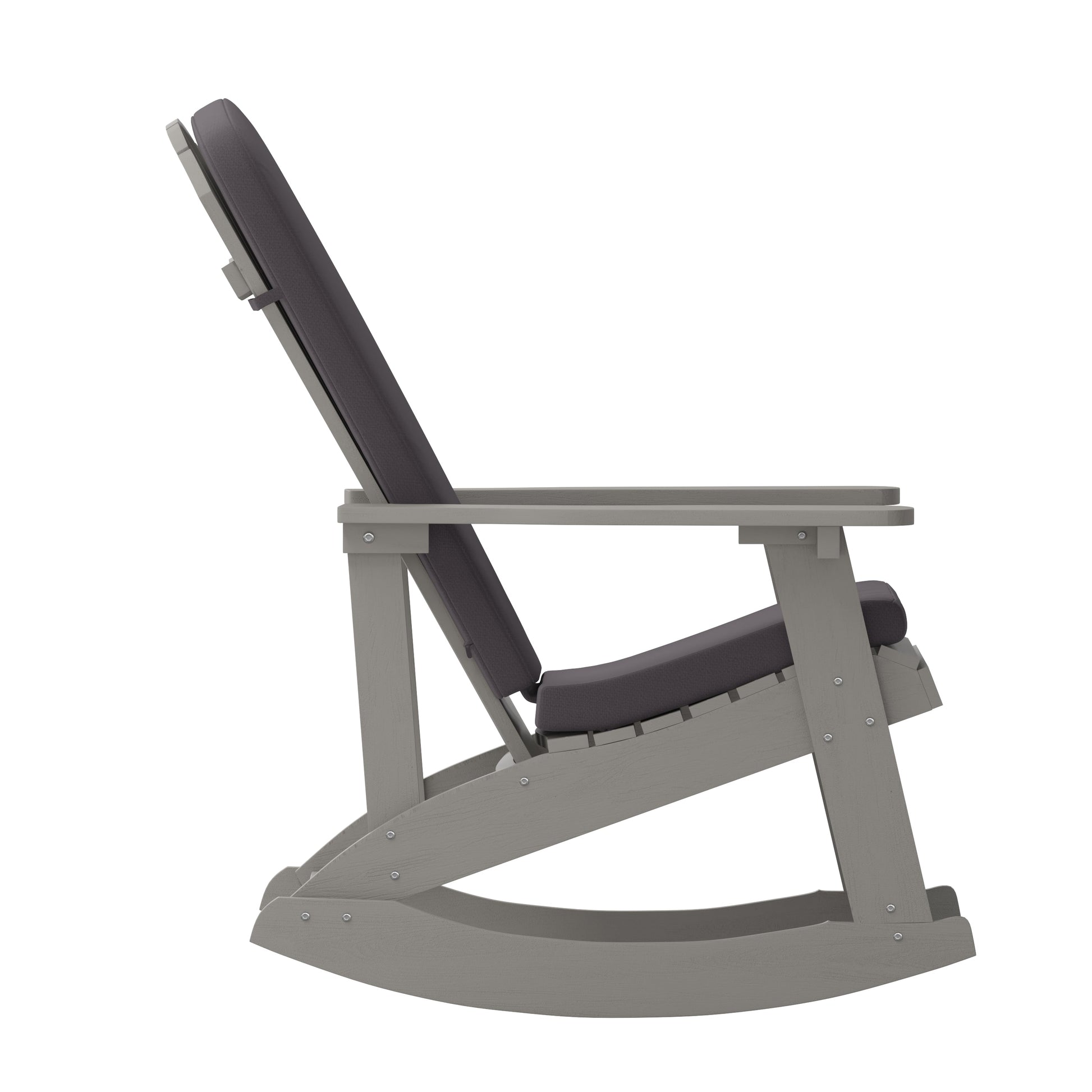 Savannah Set of 2 All-Weather Poly Resin Wood Adirondack Rocking Chairs in Gray with Gray Cushions for Deck, Porch, and Patio Dimensions: 29.5"W x 37.75"D x 39.5"H