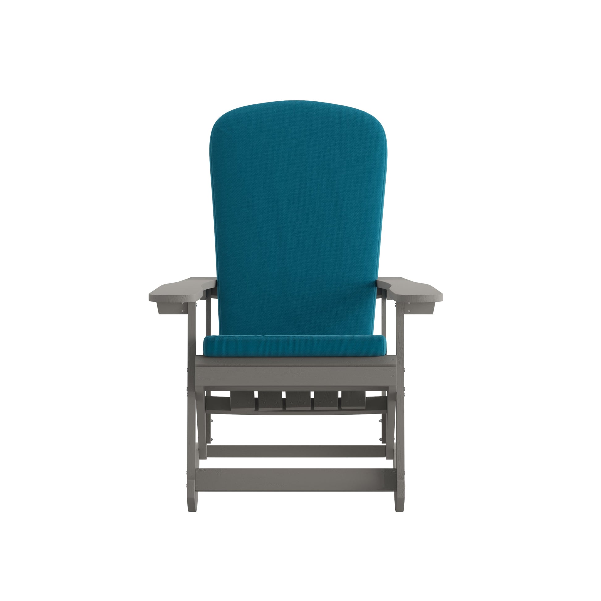 Savannah Set of 2 All-Weather Poly Resin Wood Adirondack Rocking Chairs in Gray with Teal Cushions for Deck, Porch, and Patio Dimensions: 29.5"W x 37.75"D x 39.5"H
