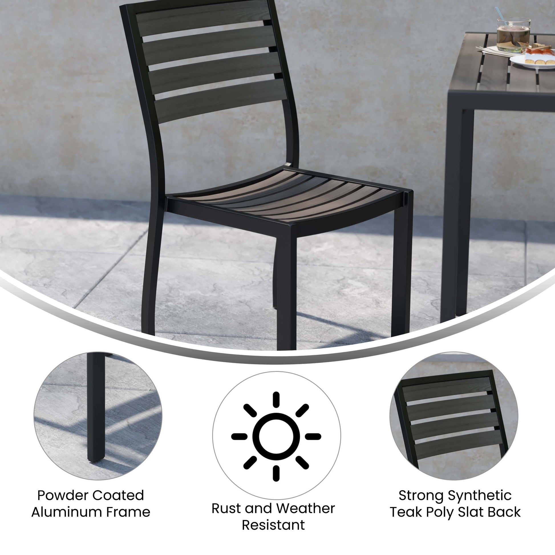 Lark Outdoor Stackable Side Chair with Gray Wash Faux Teak Poly Slats, Set of 2 Dimensions: 19"W x 21.25"D x 34"H