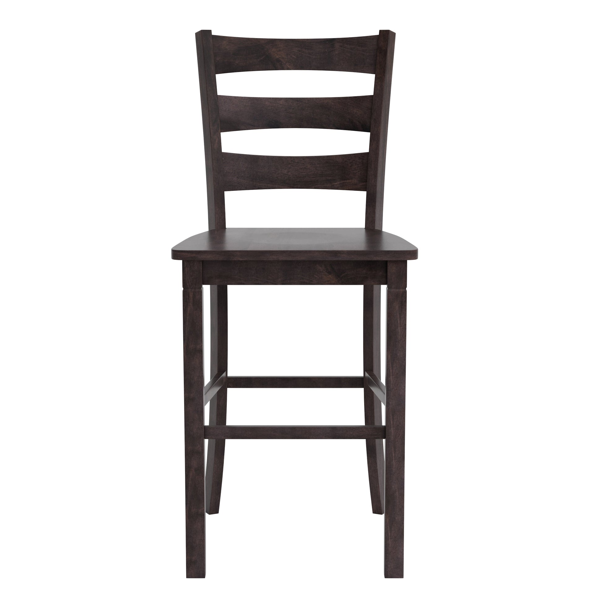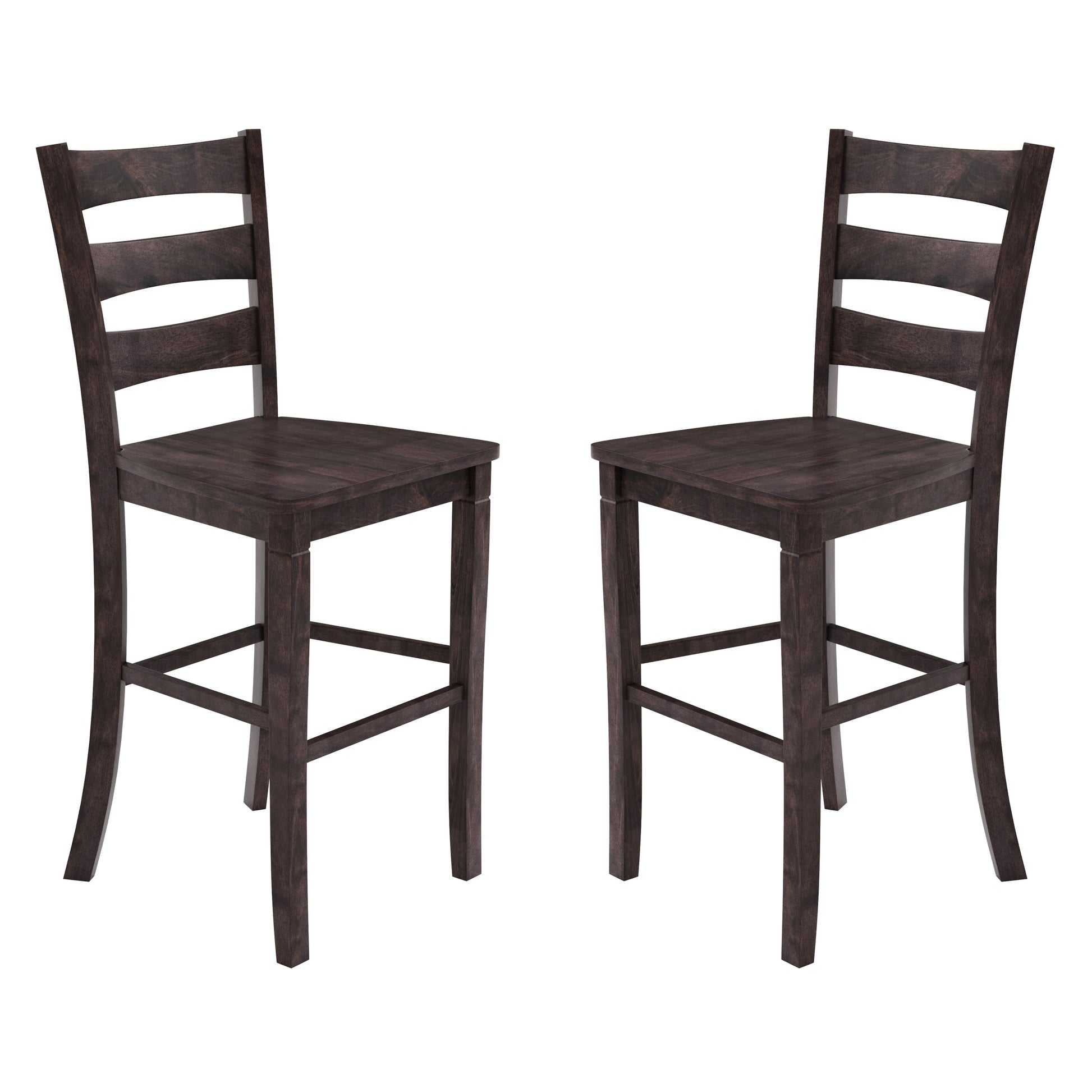 Liesel Set of 2 Commercial Grade Wooden Classic Ladderback Bar Height Barstool with Solid Wood Seat, Gray Wash Walnut Dimensions: 19"W x 19.5"D x 45.75"H