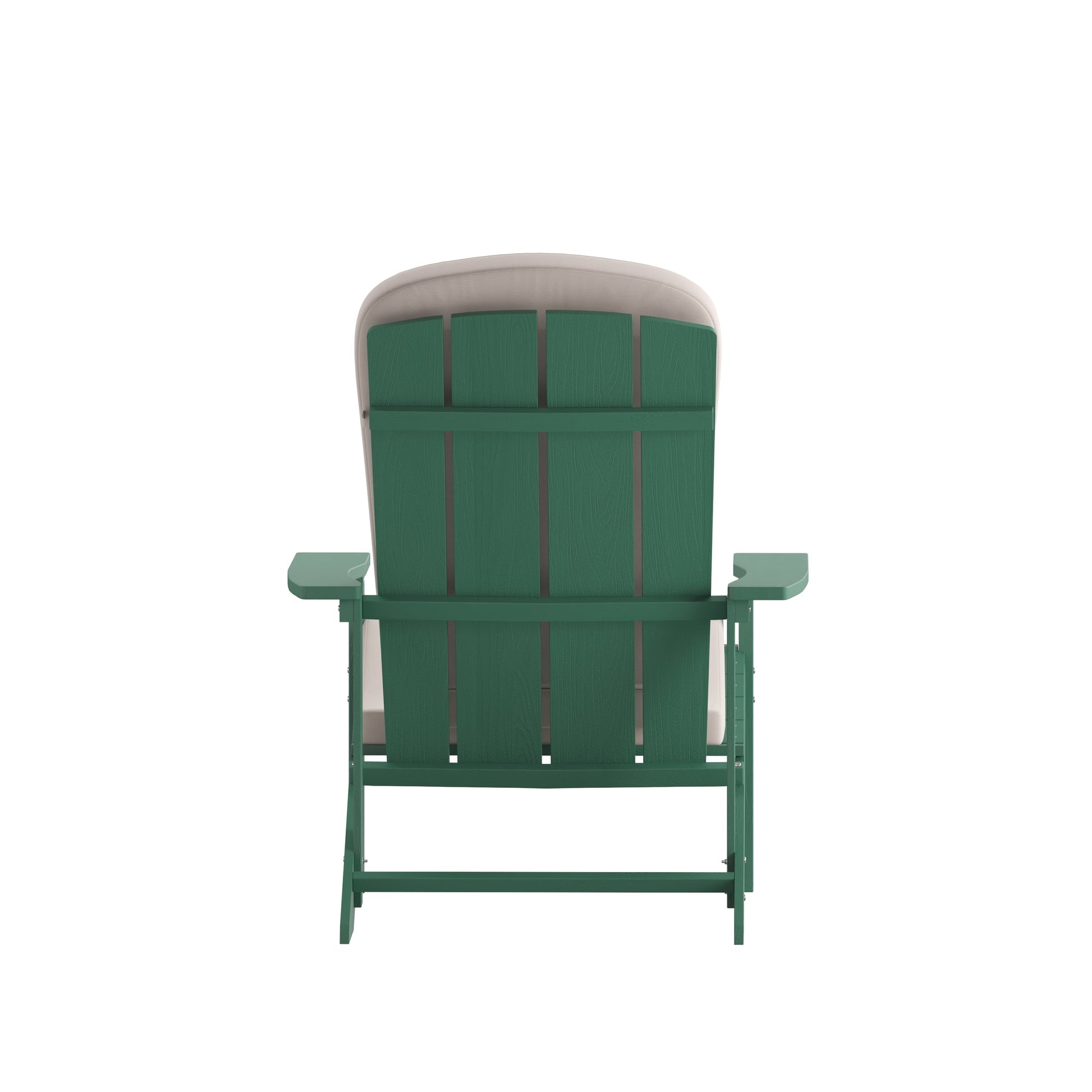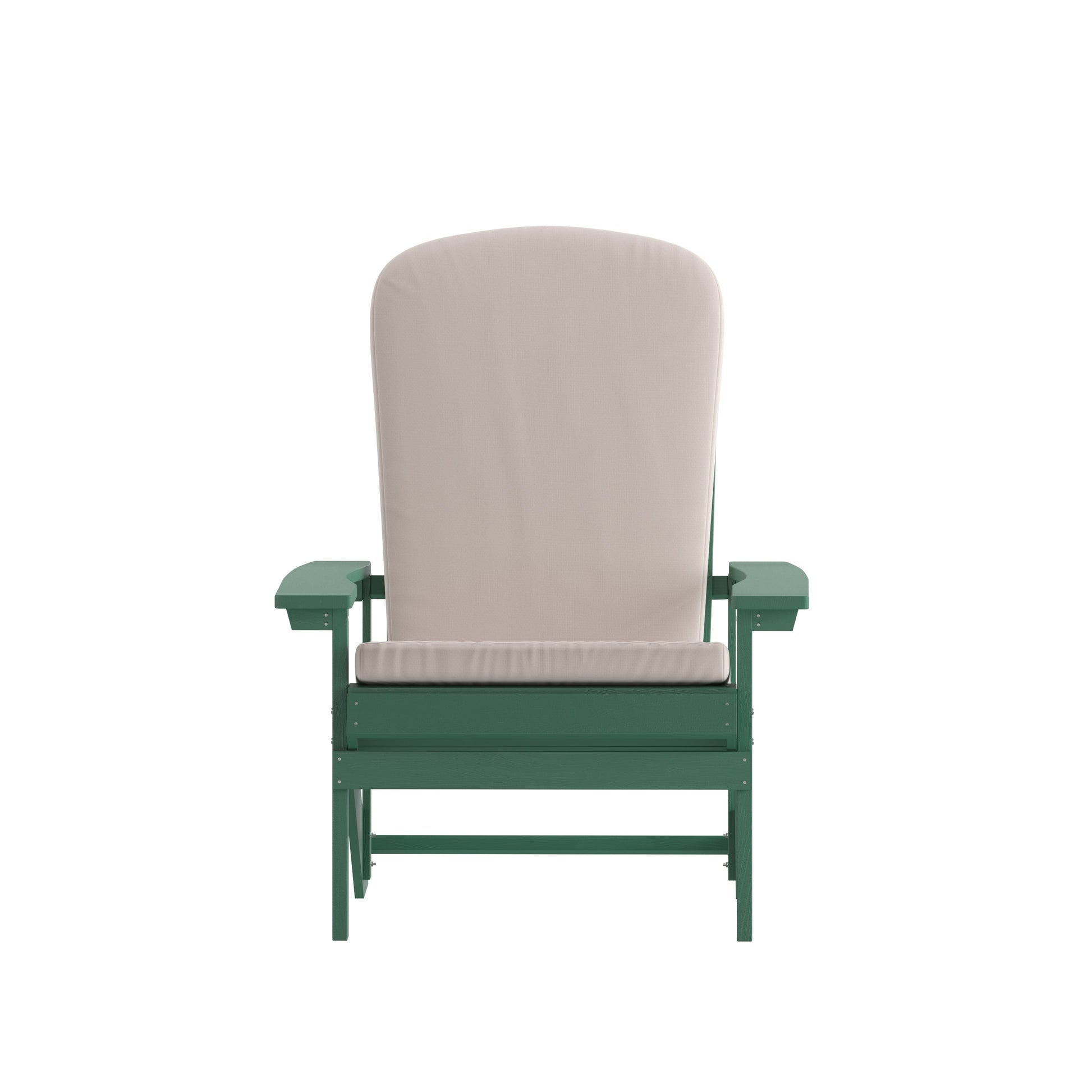 Charlestown Set of 2 All-Weather Poly Resin Wood Adirondack Chairs in Green with Cream Cushions for Deck, Porch, and Patio Dimensions: 29.5"W x 33.5"D x 35"H