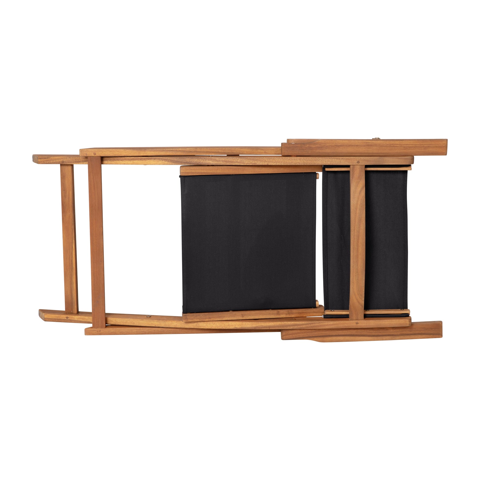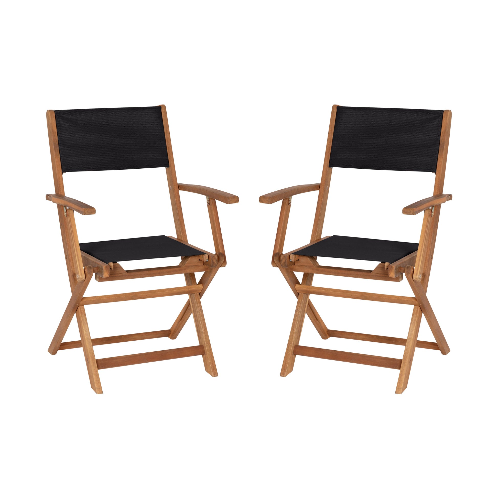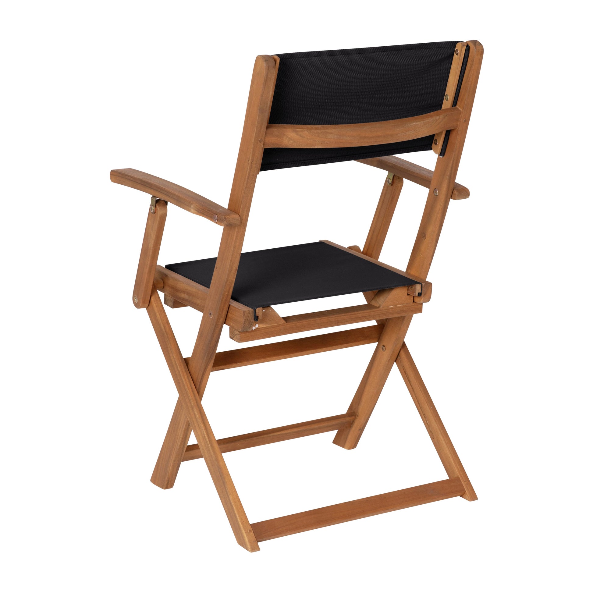 Martindale Indoor/Outdoor Folding Acacia Wood Patio Bistro Chairs with Natural X Base Frame with Arms and Black Textilene Back and Seat, Set of 2 Dimensions: 20.5"W x 18.75"D x 35"H