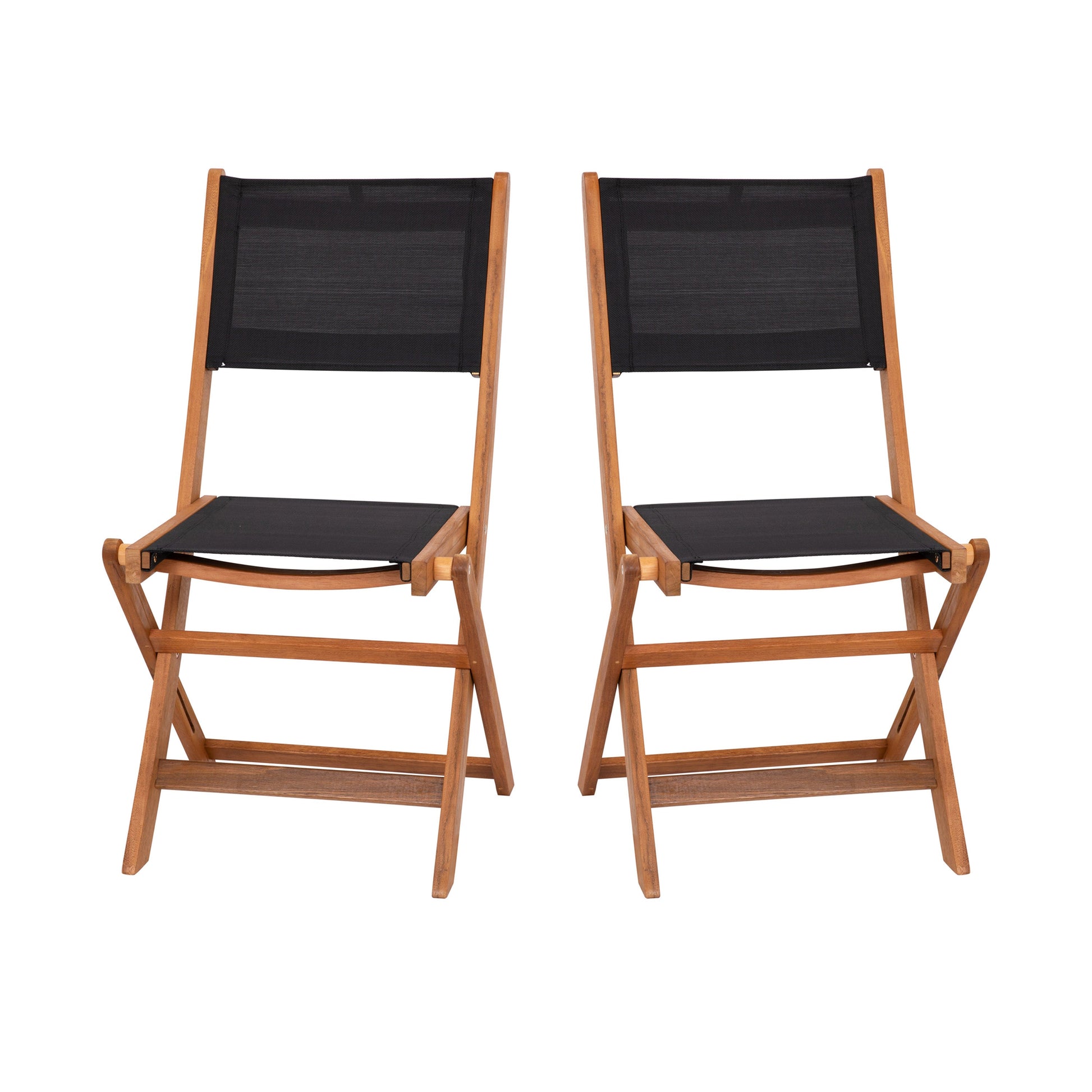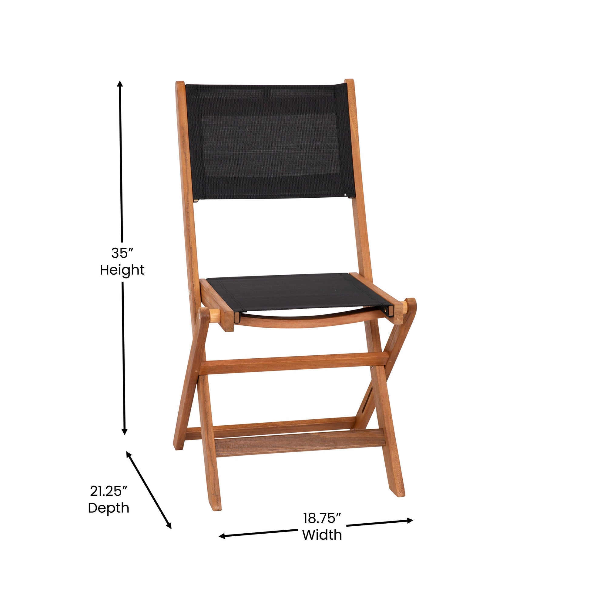 Martindale Indoor/Outdoor Folding Acacia Wood Patio Bistro Chairs with Natural X Base Frame and Black Textilene Back and Seat, Set of 2 Dimensions: 18.75"W x 21.25"D x 35"H