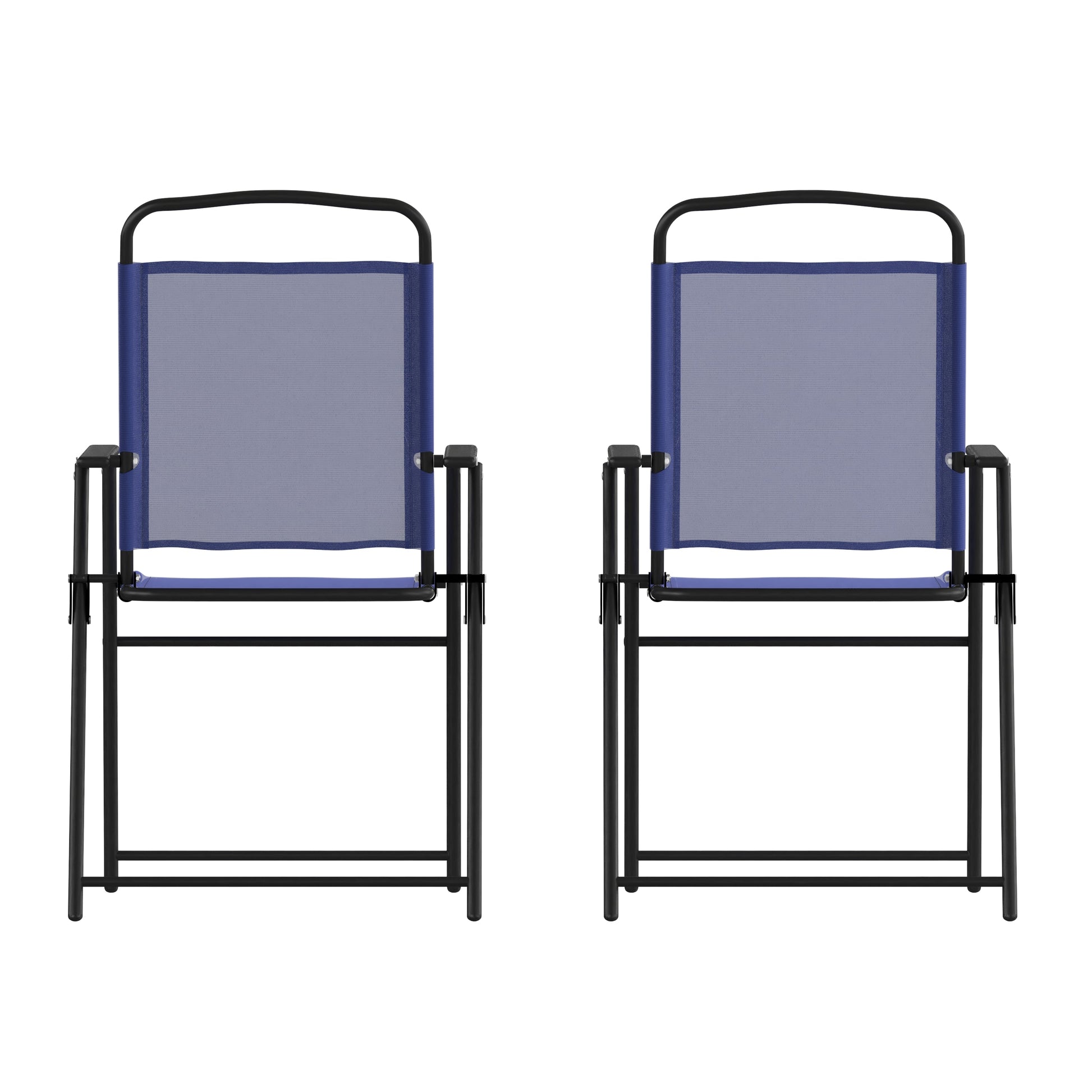 Set of 2 Mystic Folding Patio Sling Chairs, Outdoor Textilene Lawn Chairs with Armrests in Navy Dimensions: 20.75"W x 24.5"D x 35.75"H