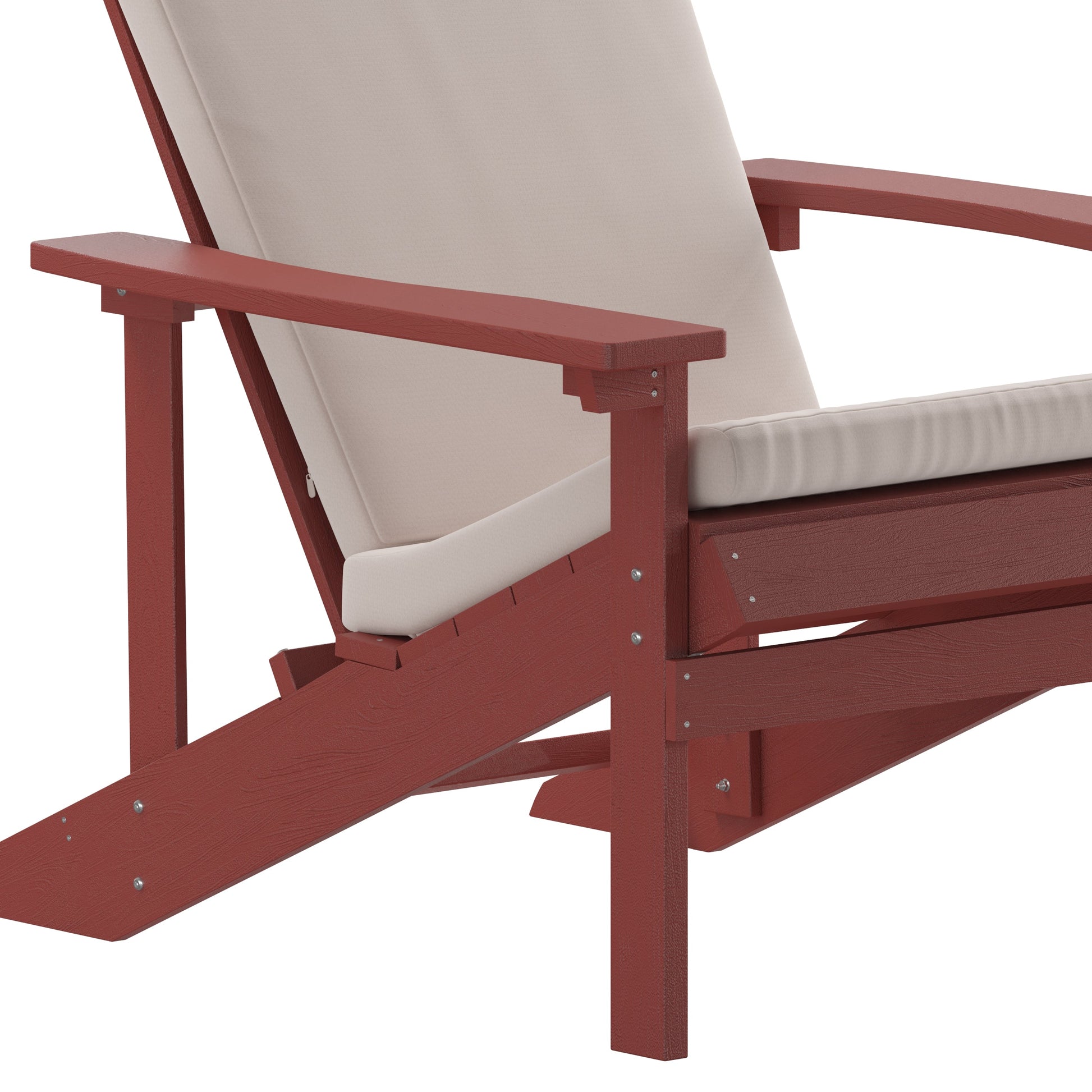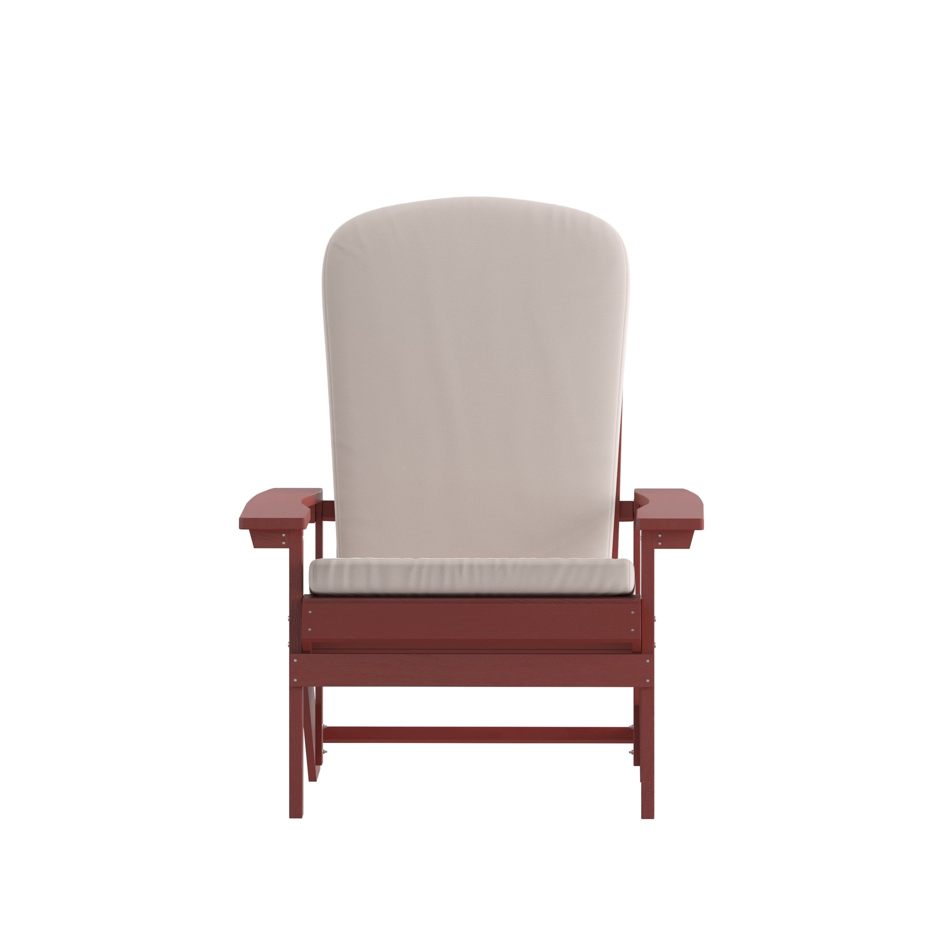 Charlestown Set of 2 All-Weather Poly Resin Wood Adirondack Chairs in Red with Cream Cushions for Deck, Porch, and Patio Dimensions: 29.5"W x 33.5"D x 35"H