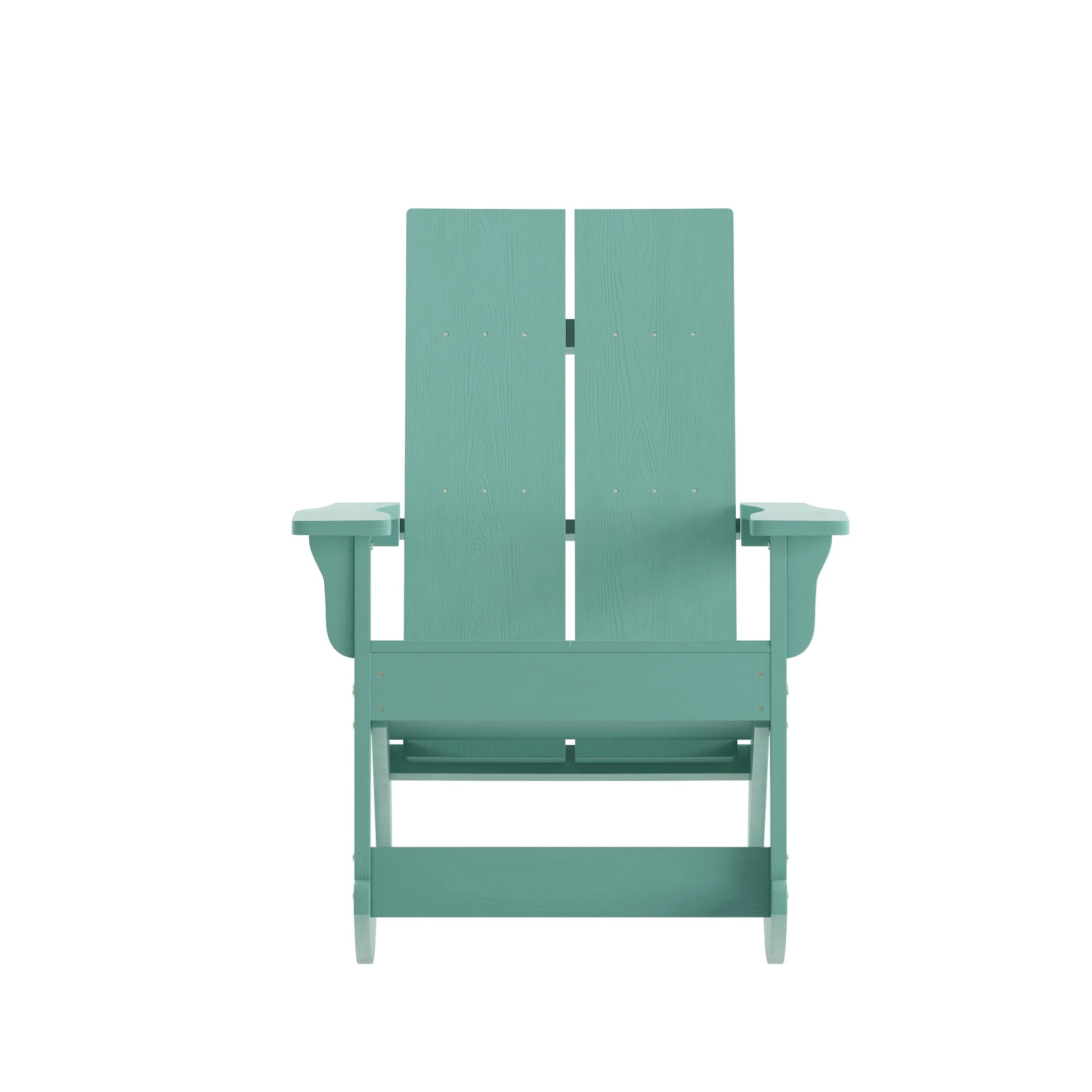 Finn Modern Commercial Poly Resin Wood Adirondack Rocking Chair - All Weather Sea Foam Polystyrene - Dual Slat Back - Stainless Steel Hardware - Set of 2 Dimensions: 29"W x 38"D x 40.5"H