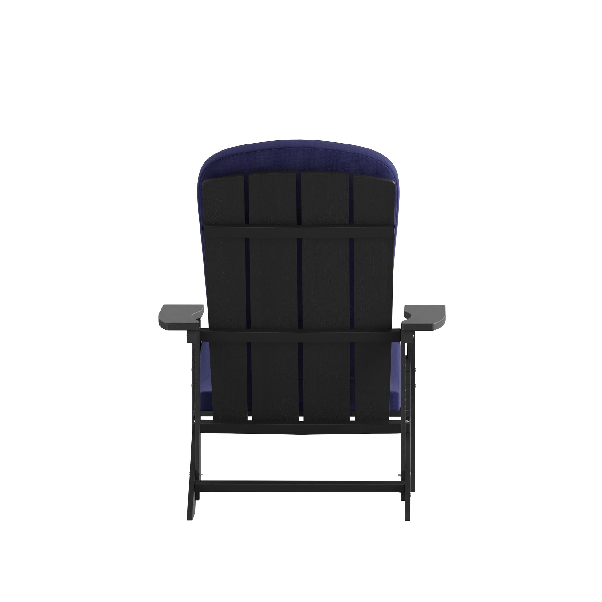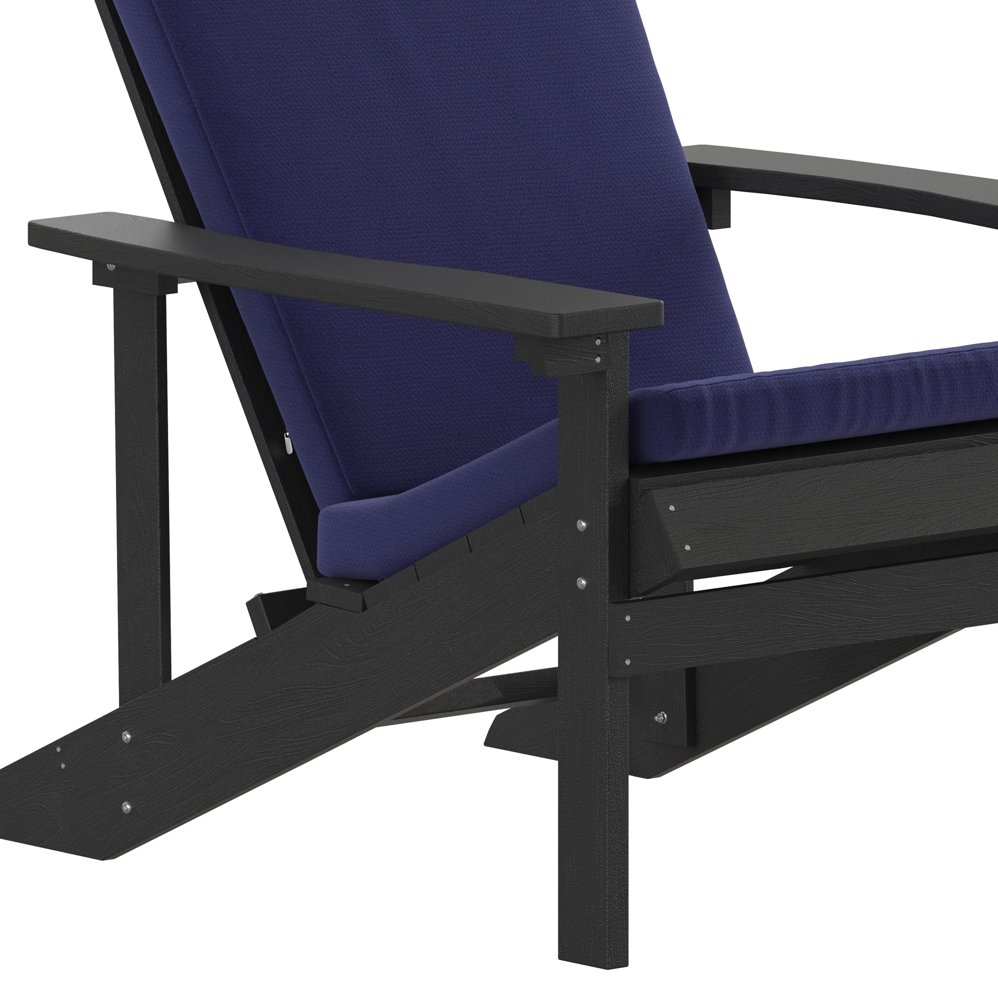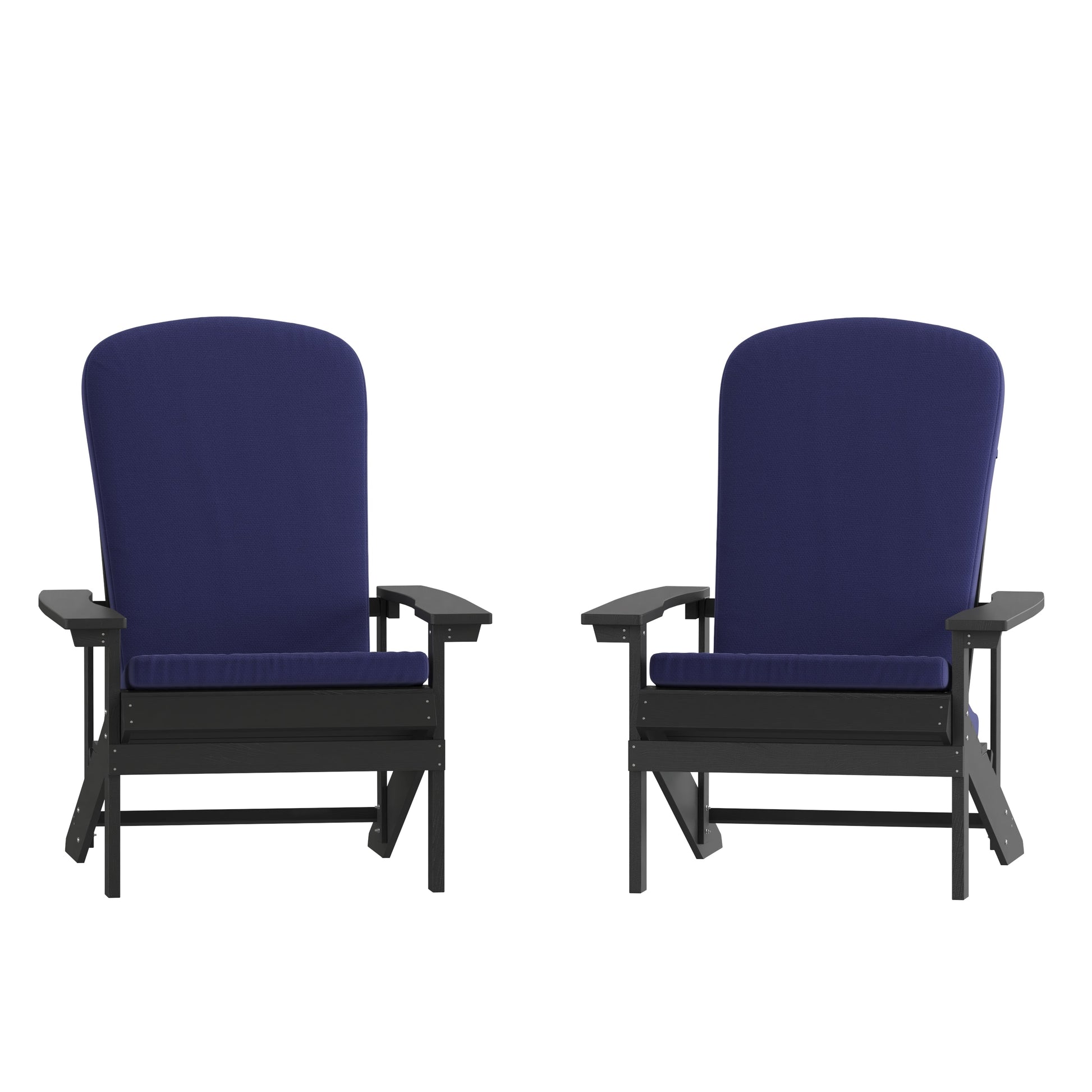 Charlestown Set of 2 All-Weather Poly Resin Wood Adirondack Chairs in Slate Gray with Blue Cushions for Deck, Porch, and Patio Dimensions: 29.5"W x 33.5"D x 35"H
