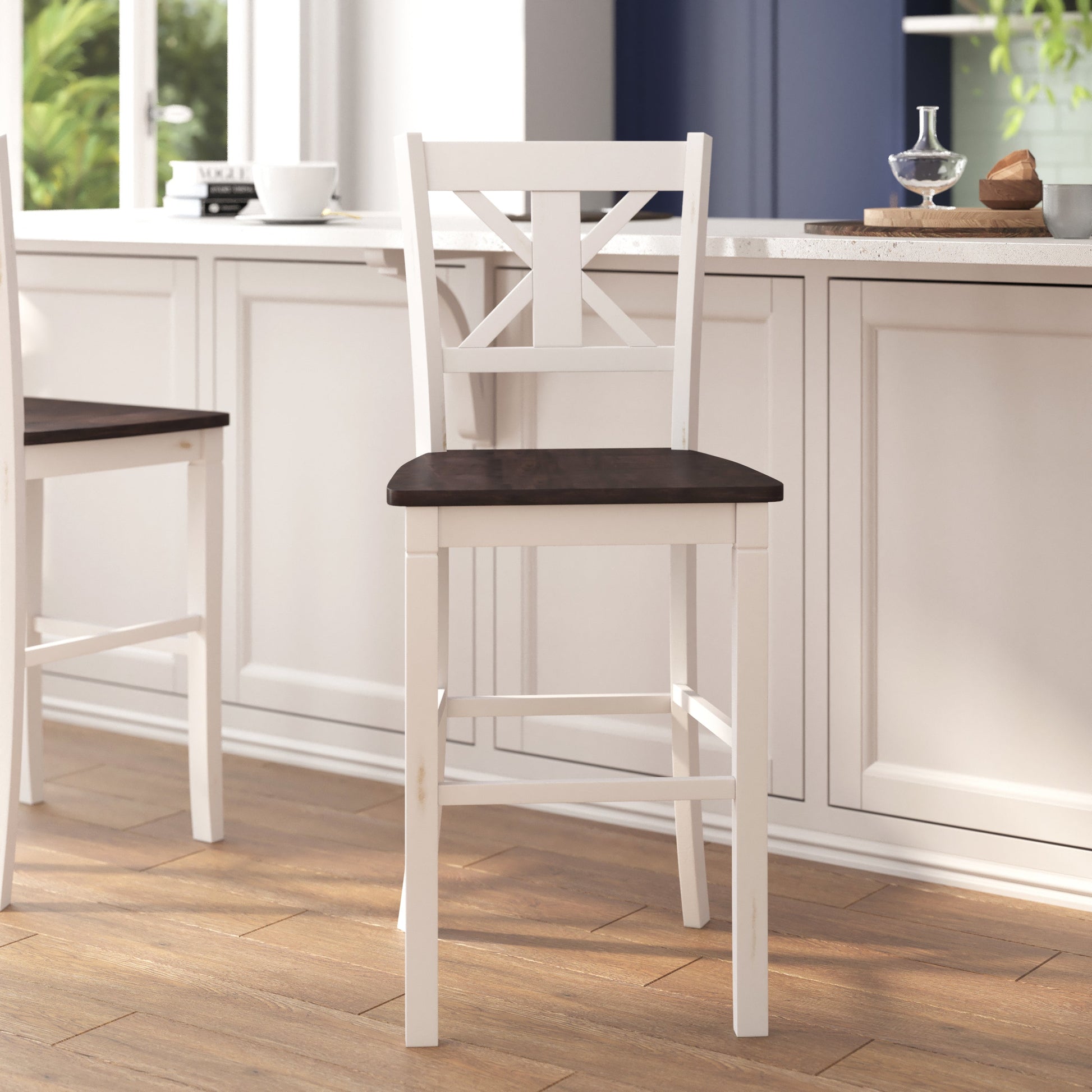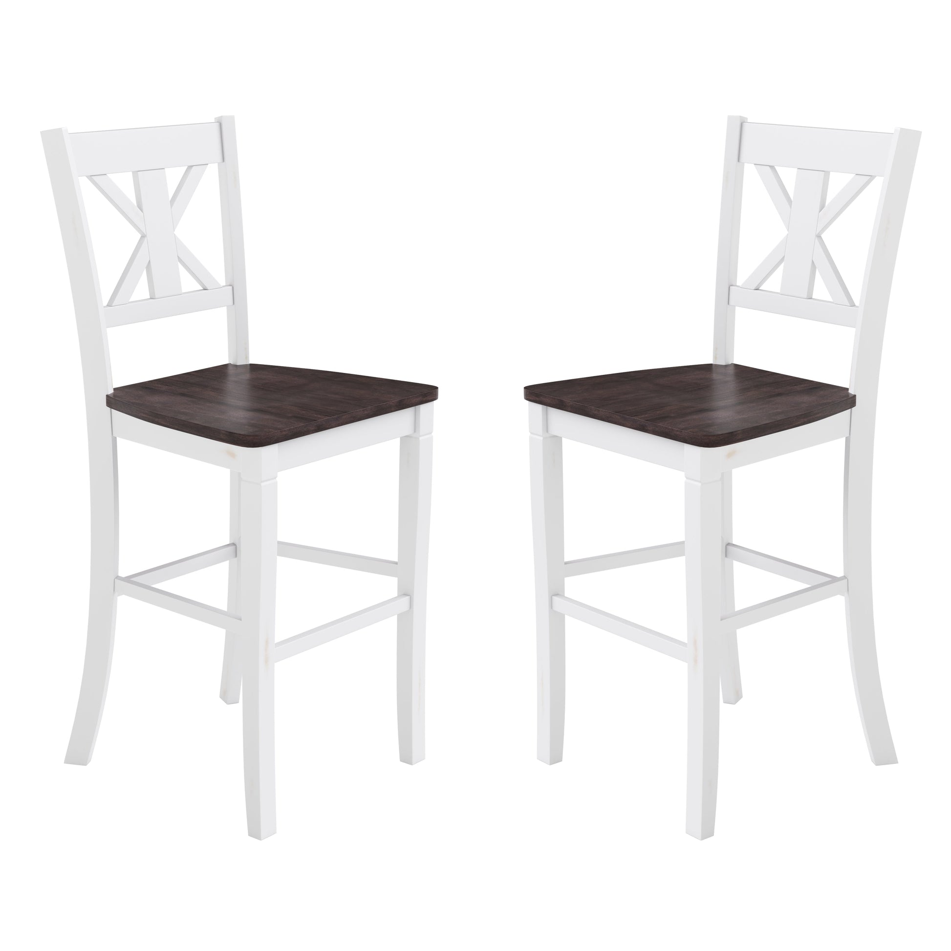 Gwendolyn Set of 2 Commercial Grade Solid Wood Modern Farmhouse Barstool in Antique White Wash Dimensions: 19"W x 19.5"D x 45.75"H