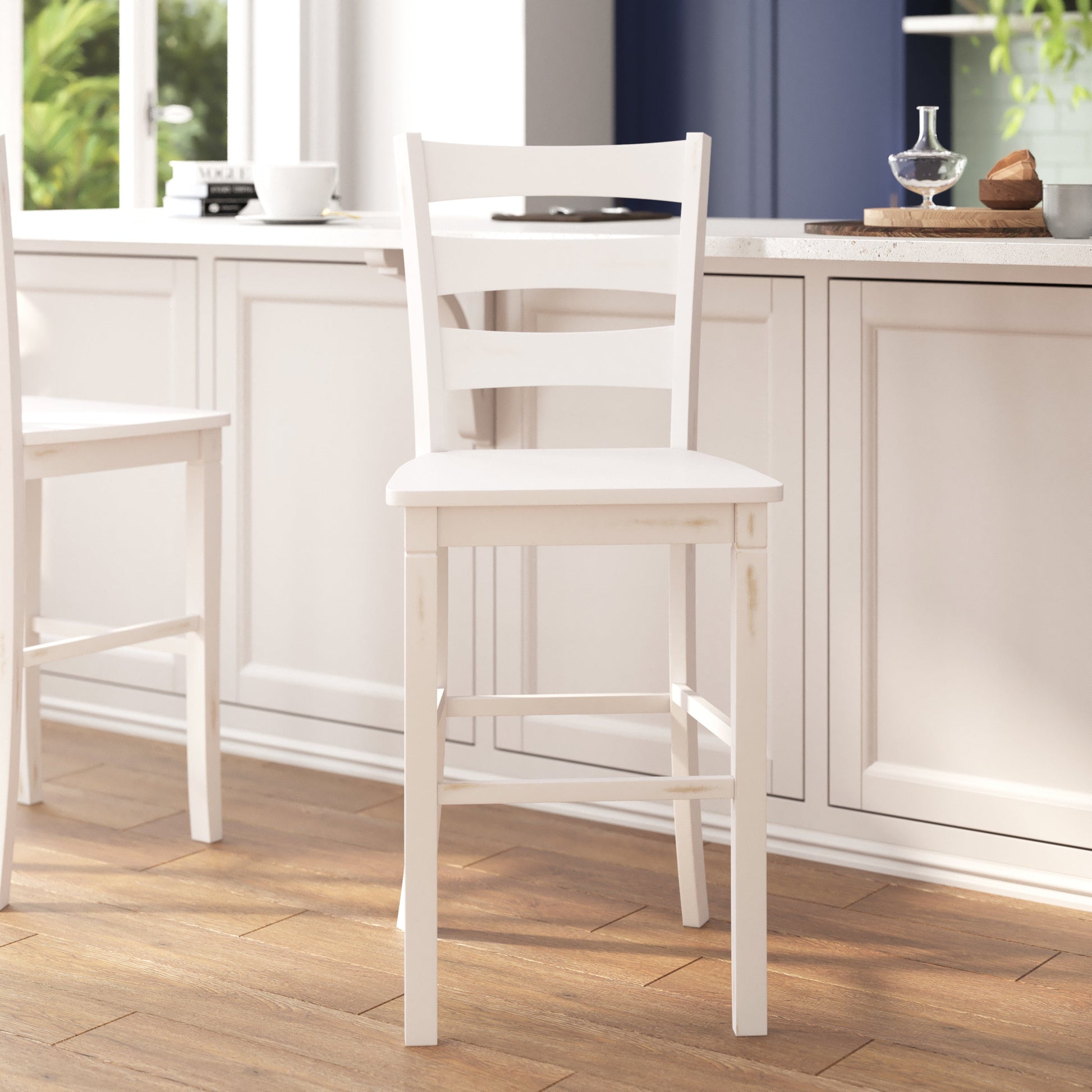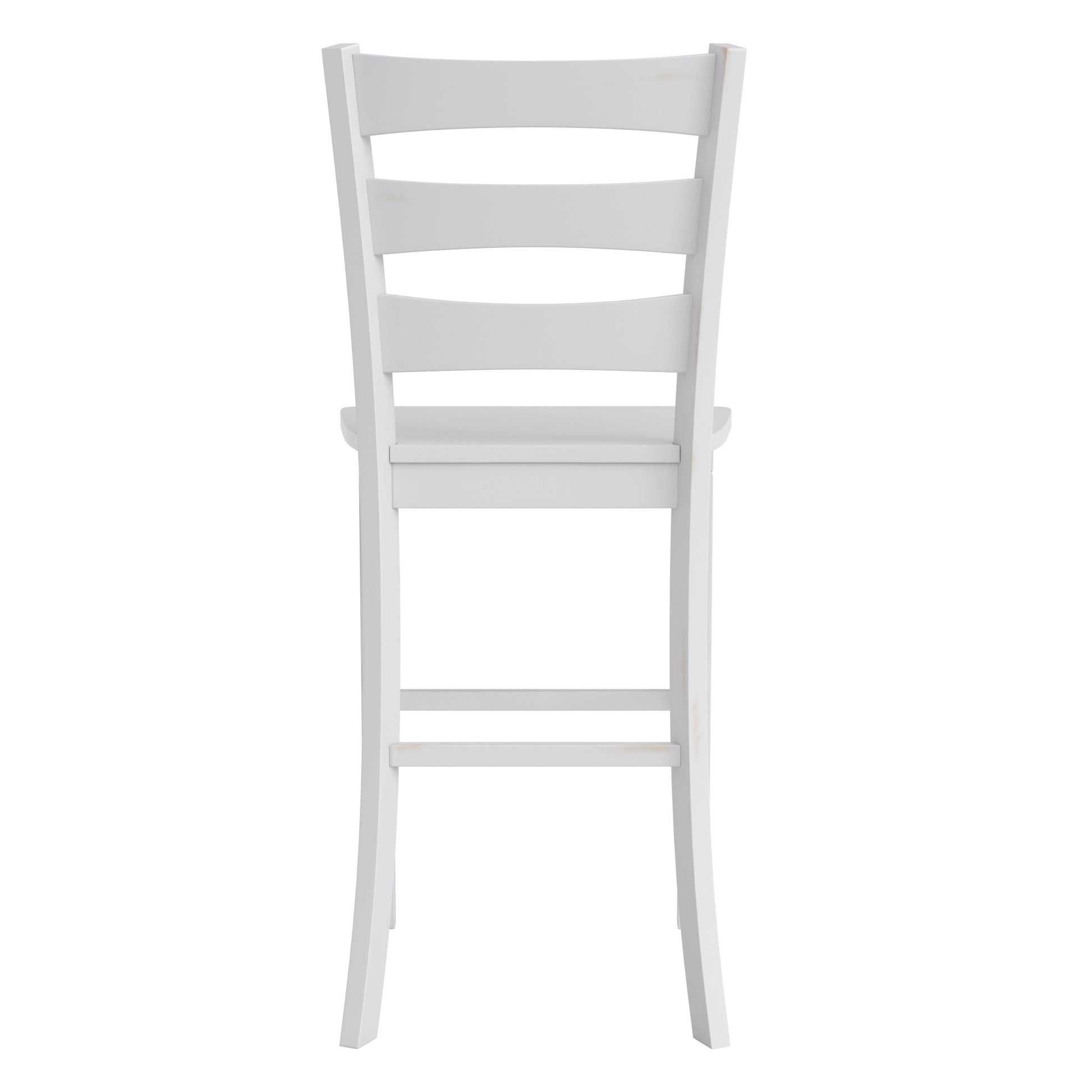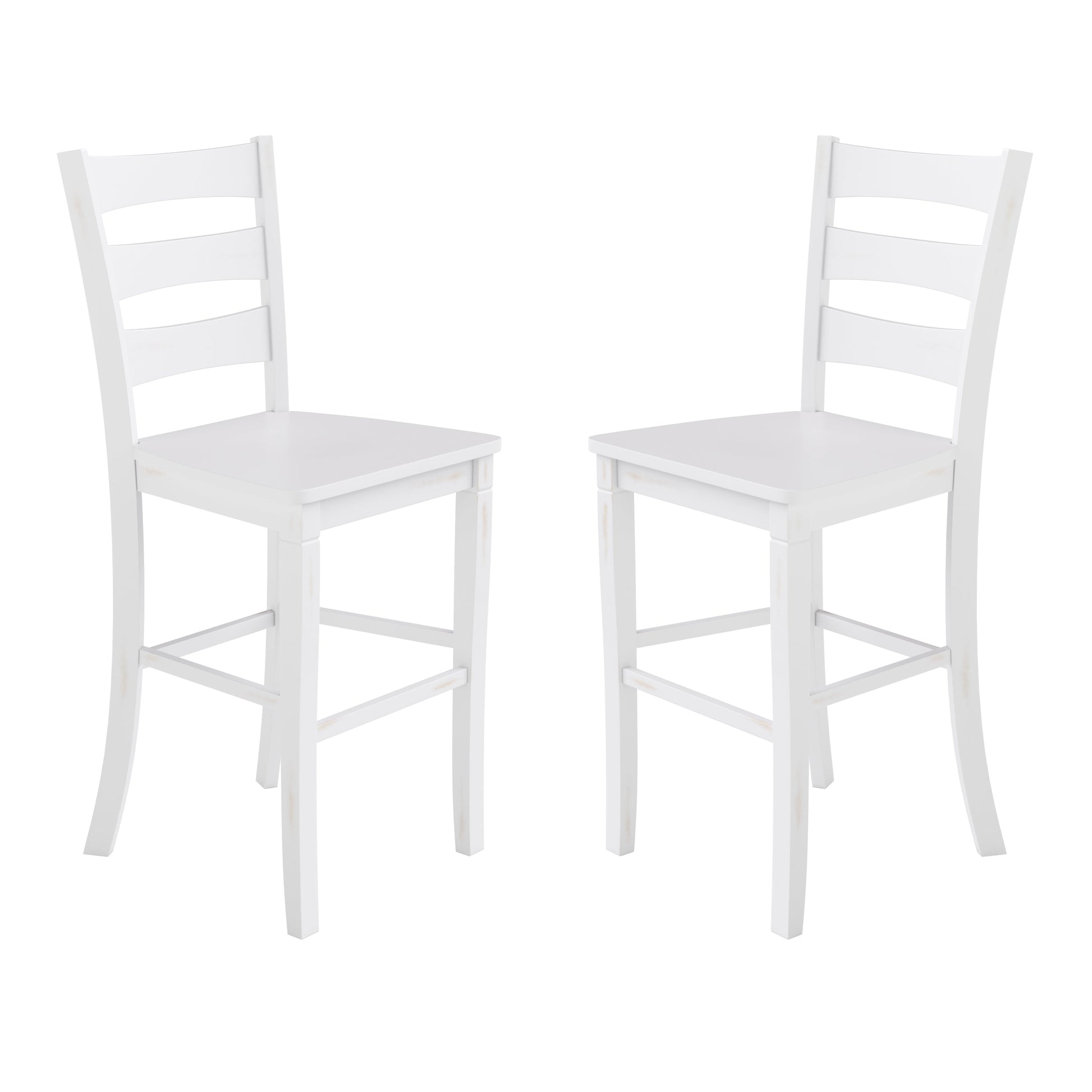 Liesel Set of 2 Commercial Grade Wooden Classic Ladderback Bar Height Barstool with Solid Wood Seat, Antique White Wash Dimensions: 19"W x 19.5"D x 45.75"H