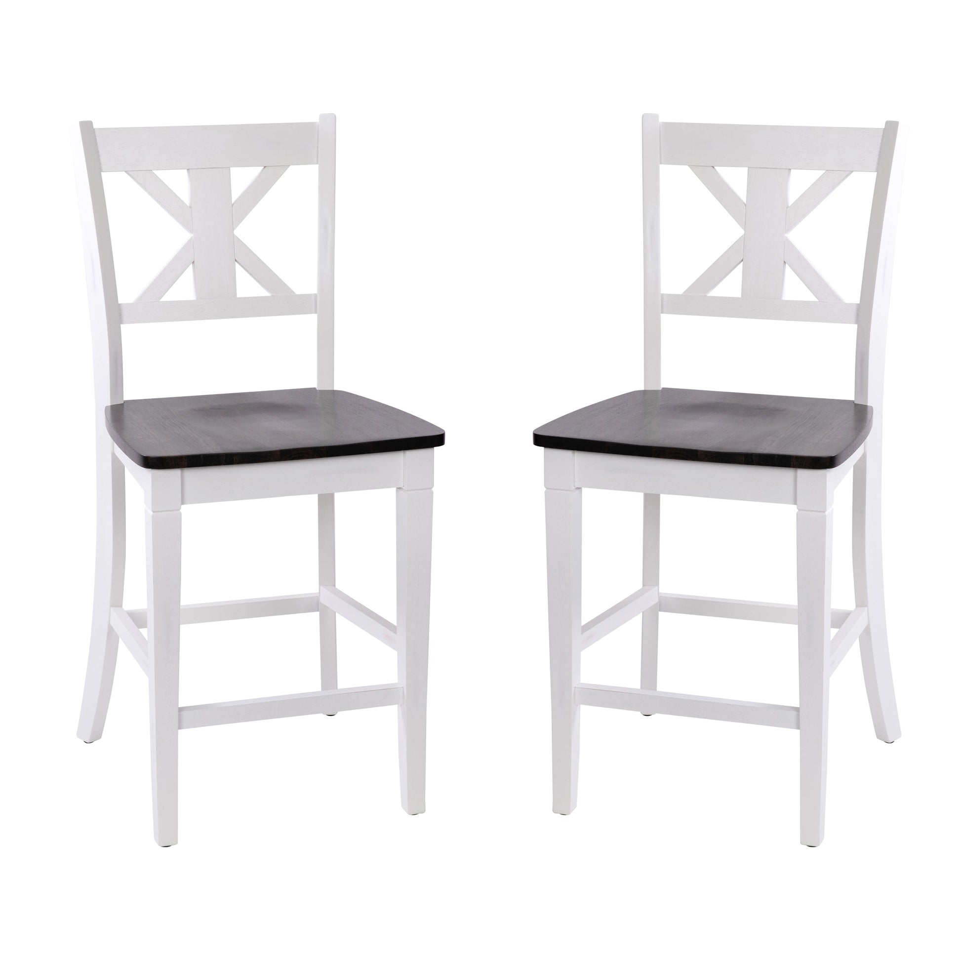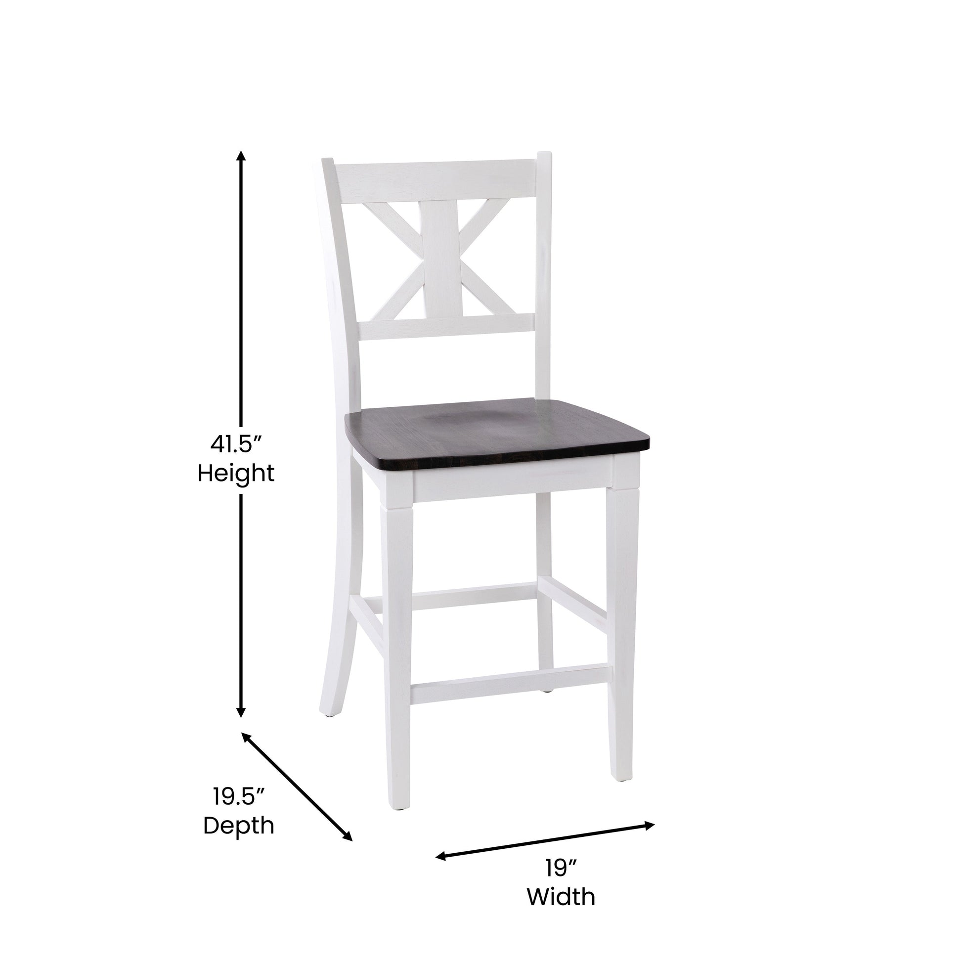 Gwendolyn Set of 2 Commercial Grade Solid Wood Modern Farmhouse Counter Height Barstool in Antique White Wash Dimensions: 19"W x 19.5"D x 41.5"H