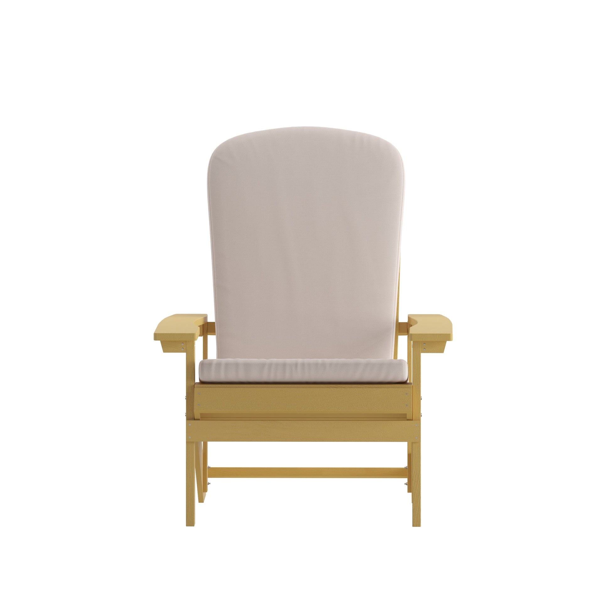 Charlestown Set of 2 All-Weather Poly Resin Wood Adirondack Chairs in Yellow with Cream Cushions for Deck, Porch, and Patio Dimensions: 29.5"W x 33.5"D x 35"H