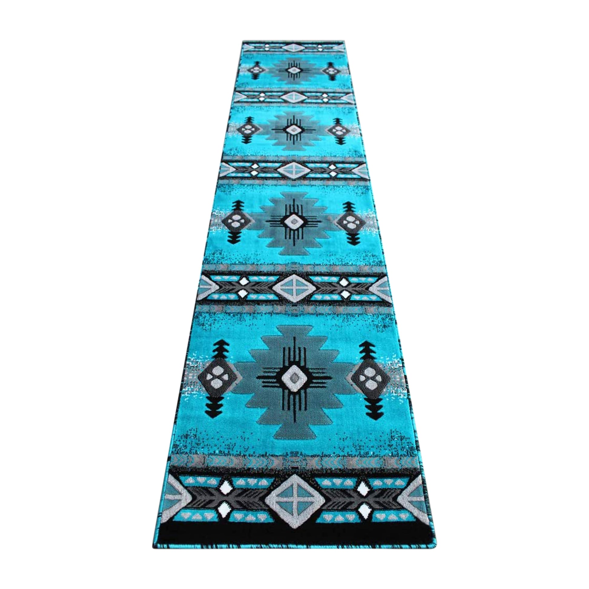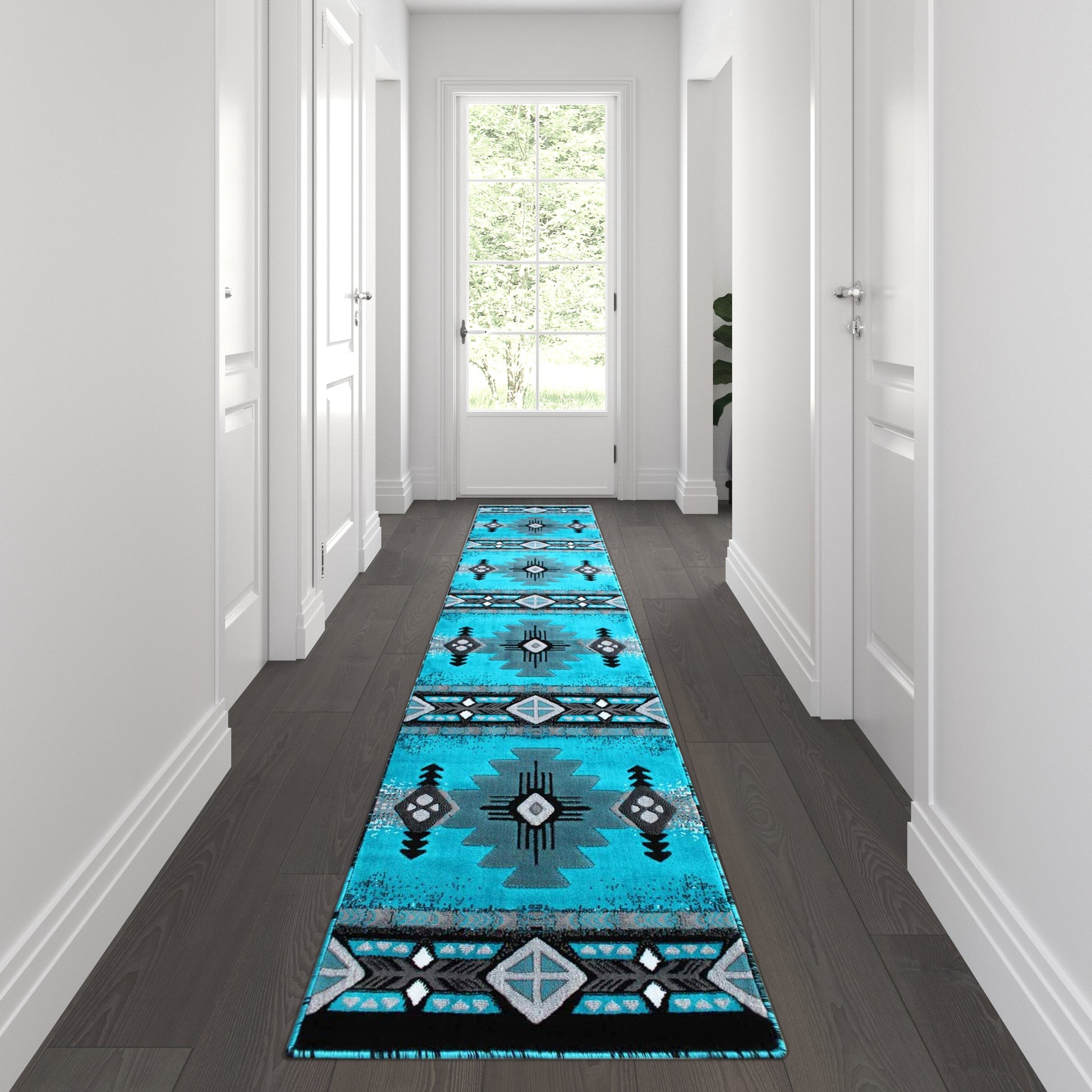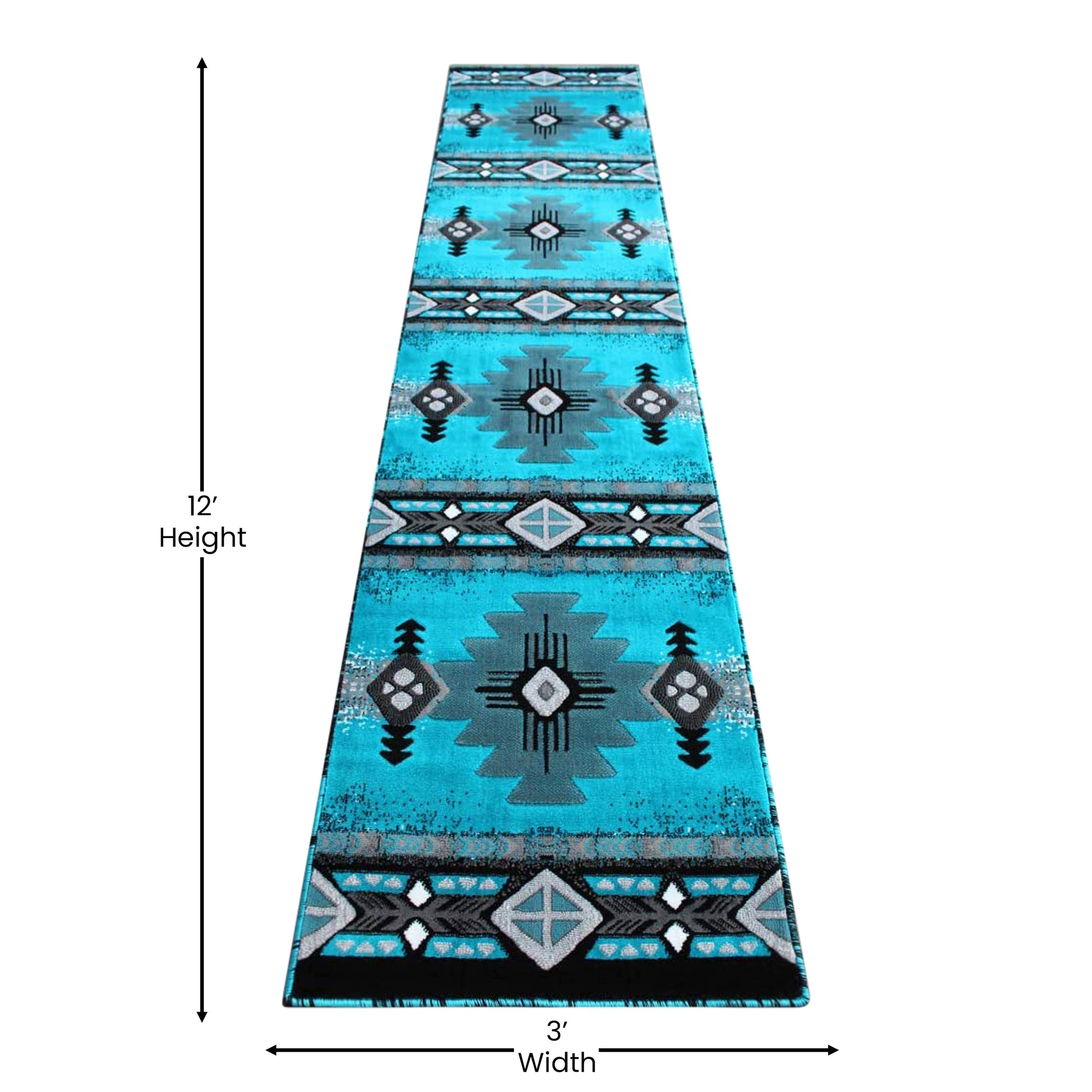 Mohave Collection 2' x 11' Turquoise Traditional Southwestern Style Area Rug - Olefin Fibers with Jute Backing Dimensions: 28.8"W x 132"D x 0.5"H