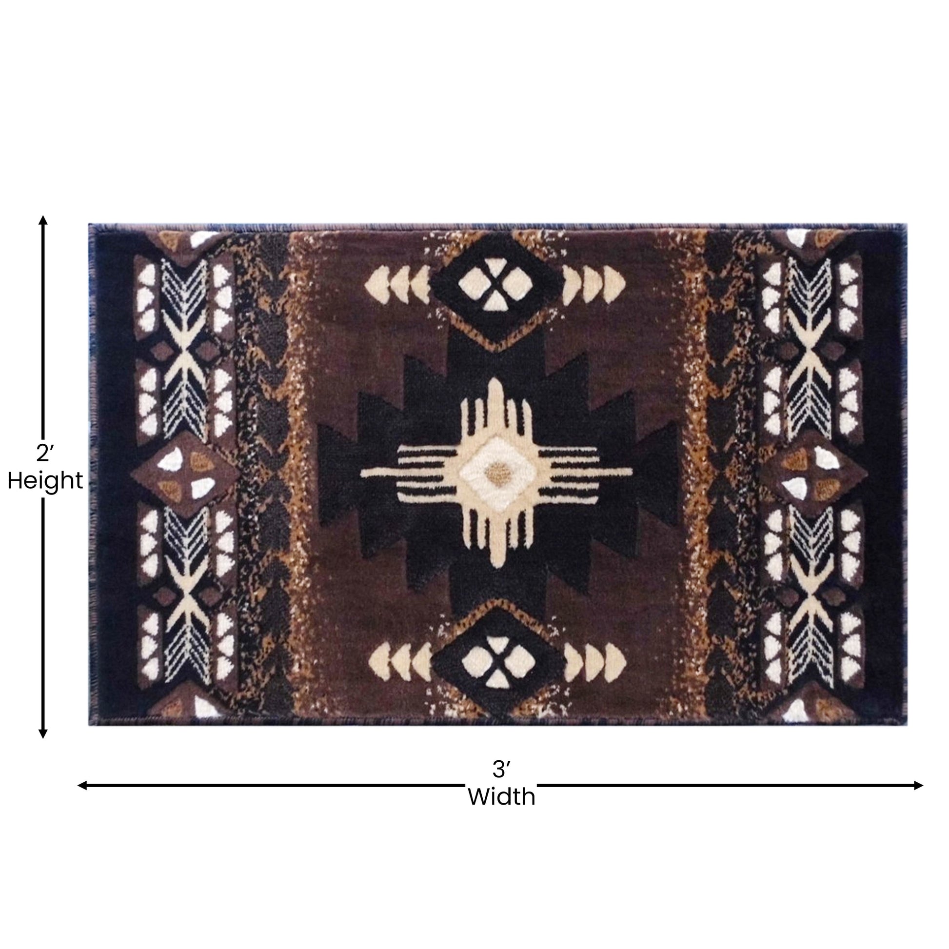 Mohave Collection 2' x 3' Chocolate Traditional Southwestern Style Area Rug - Olefin Fibers with Jute Backing Dimensions: 24"W x 39.6"D x 0.5"H
