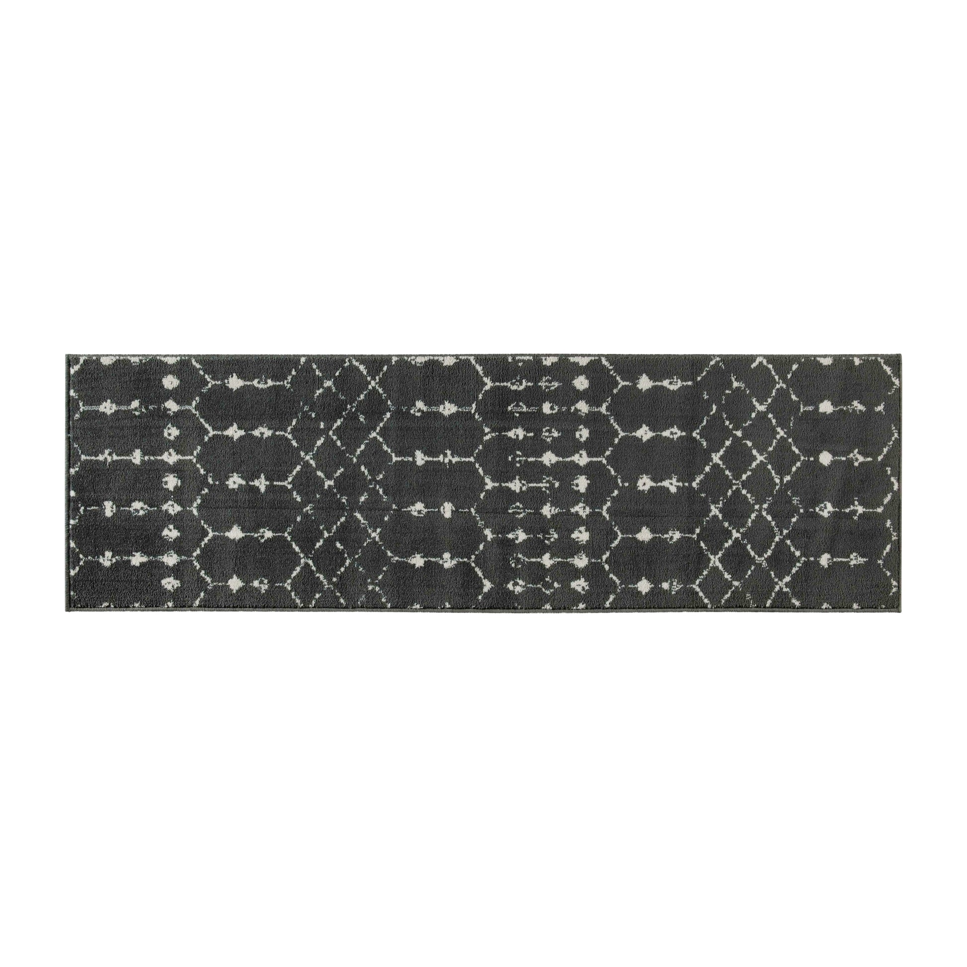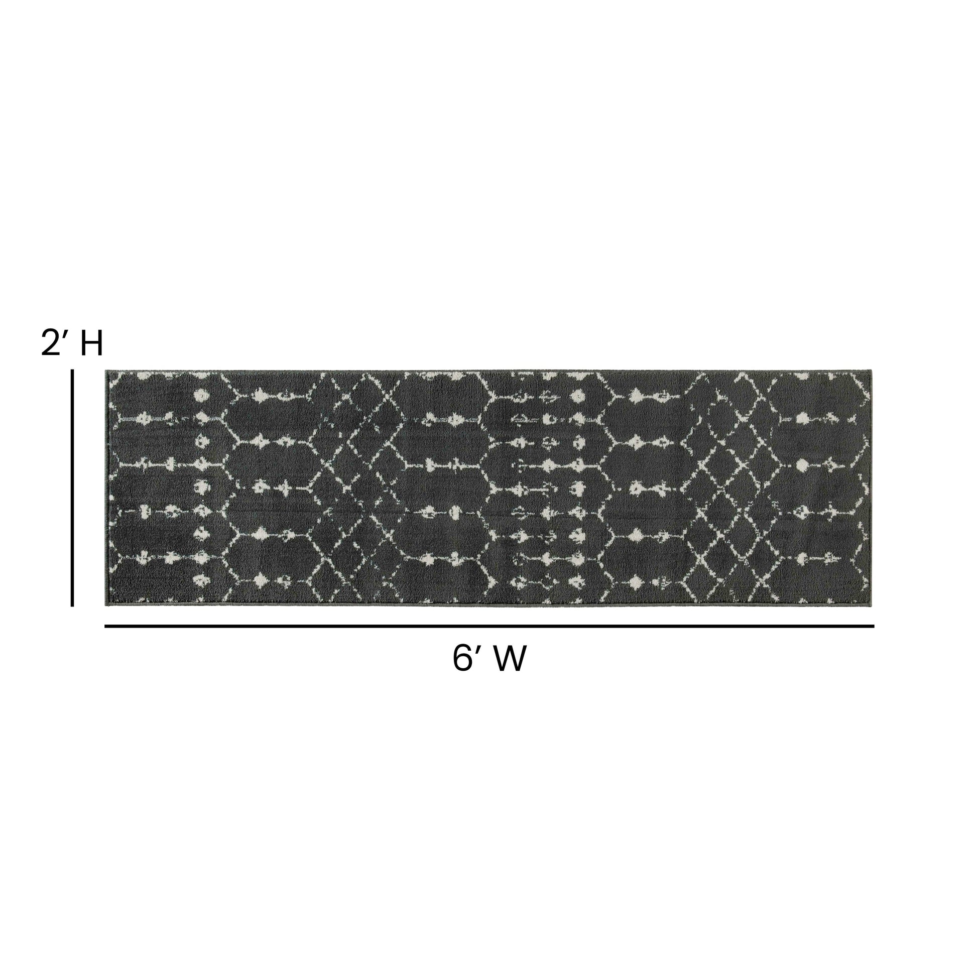 Beth Geometric Bohemian Low Pile Rug - 2' x 6' - Dark Gray/Ivory Polyester Dimensions: 24"W x 73"D x 0.5"H