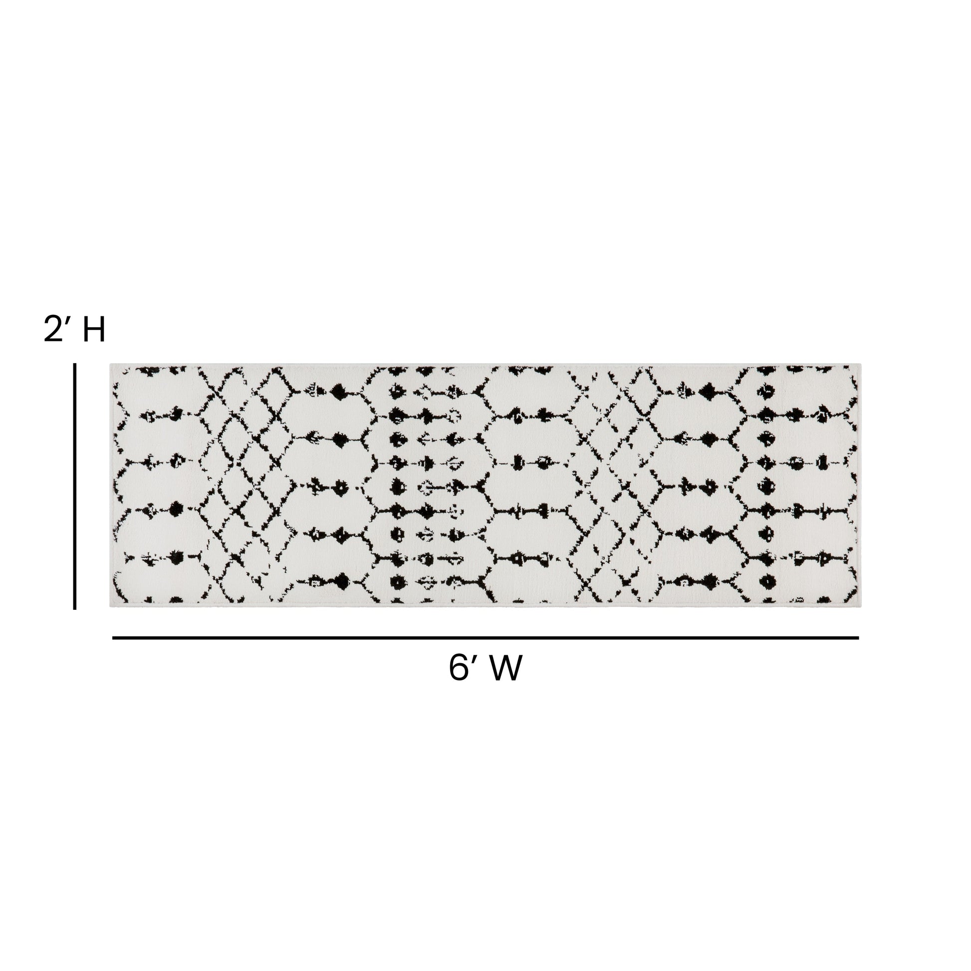 Beth Geometric Bohemian Low Pile Rug - 2'x6' - Ivory/Black Dimensions: 23.5"W x 72"D x 0.5"H