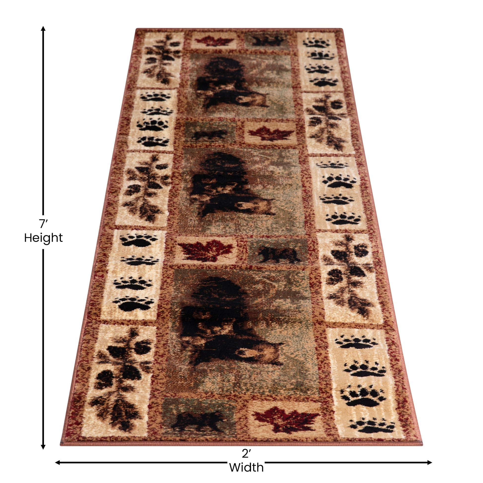 Vassa Collection 2' x 7' Mother Bear & Cubs Nature Themed Olefin Area Rug with Jute Backing for Entryway, Living Room, Bedroom Dimensions: 24"W x 87.6"D x 0.5"H
