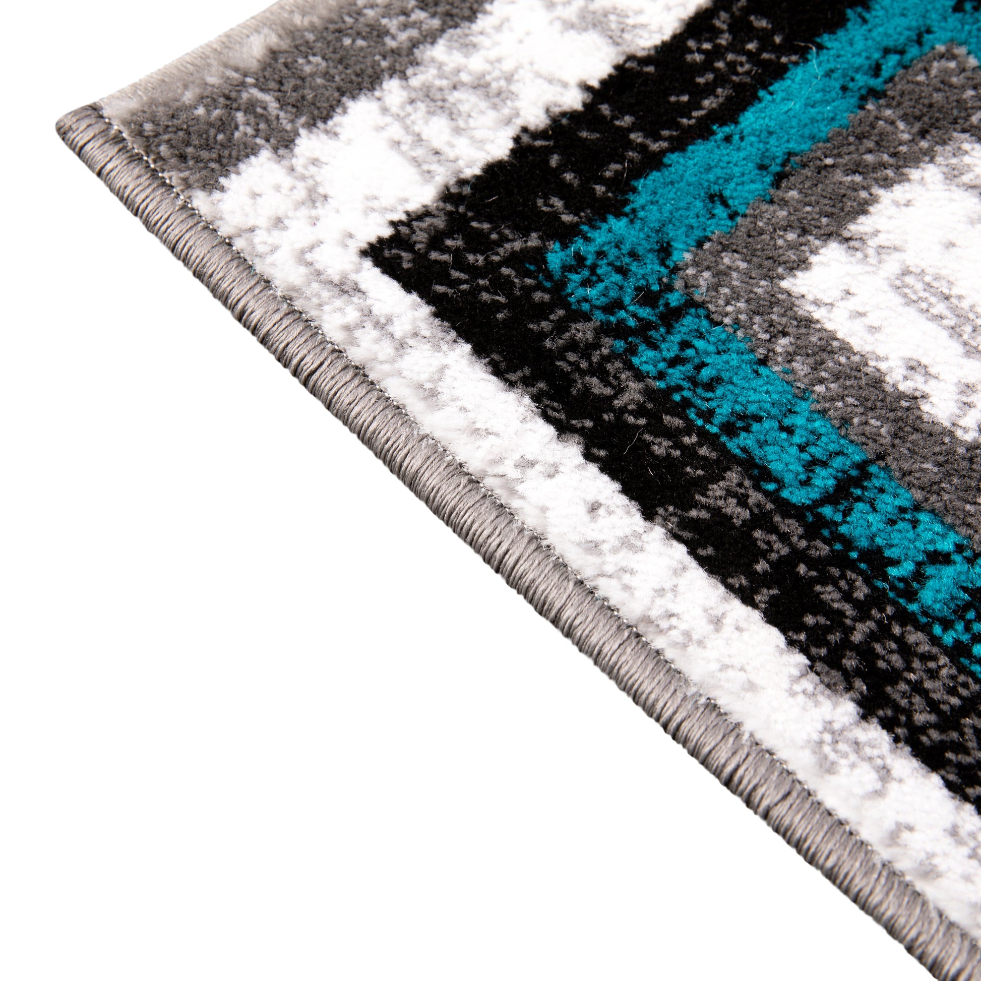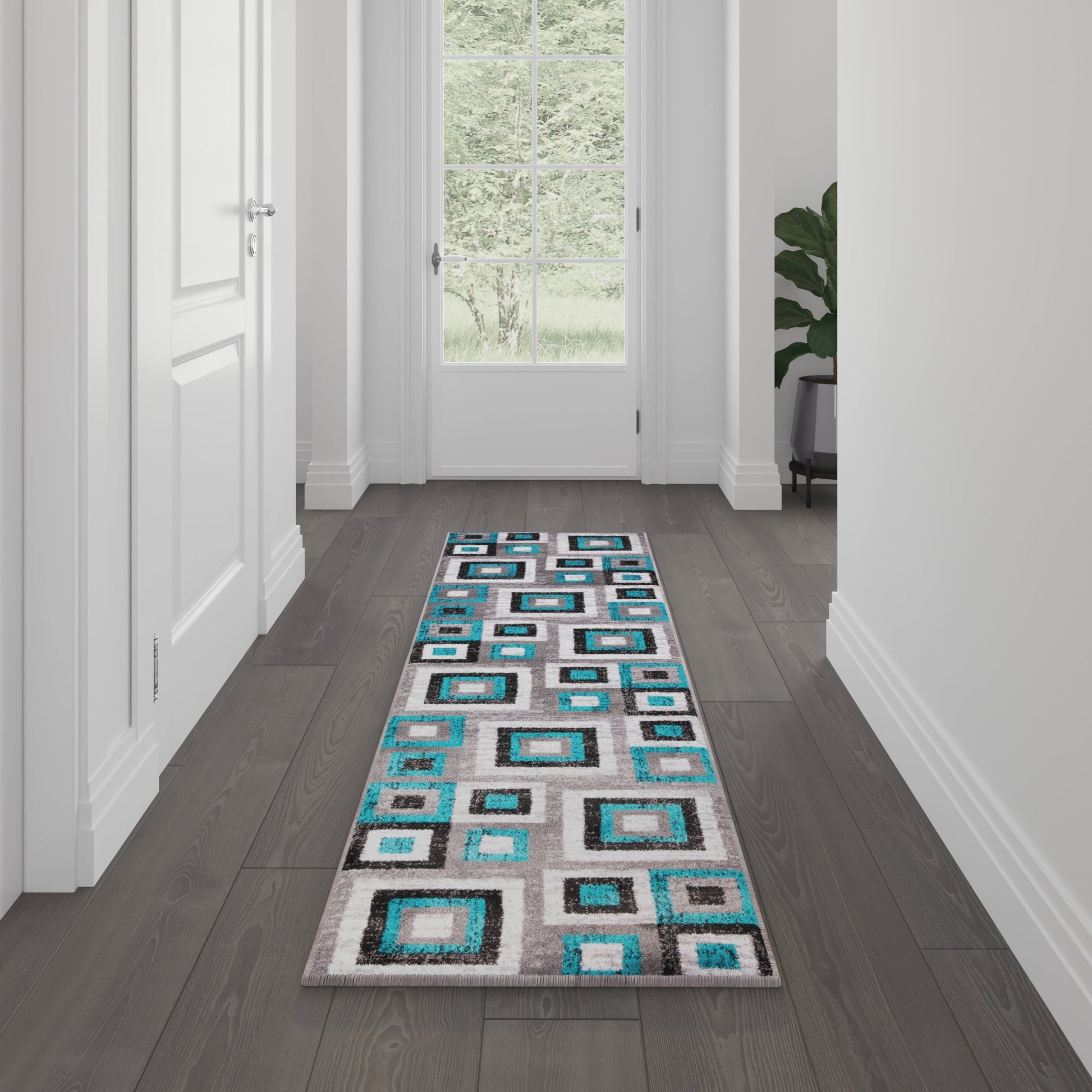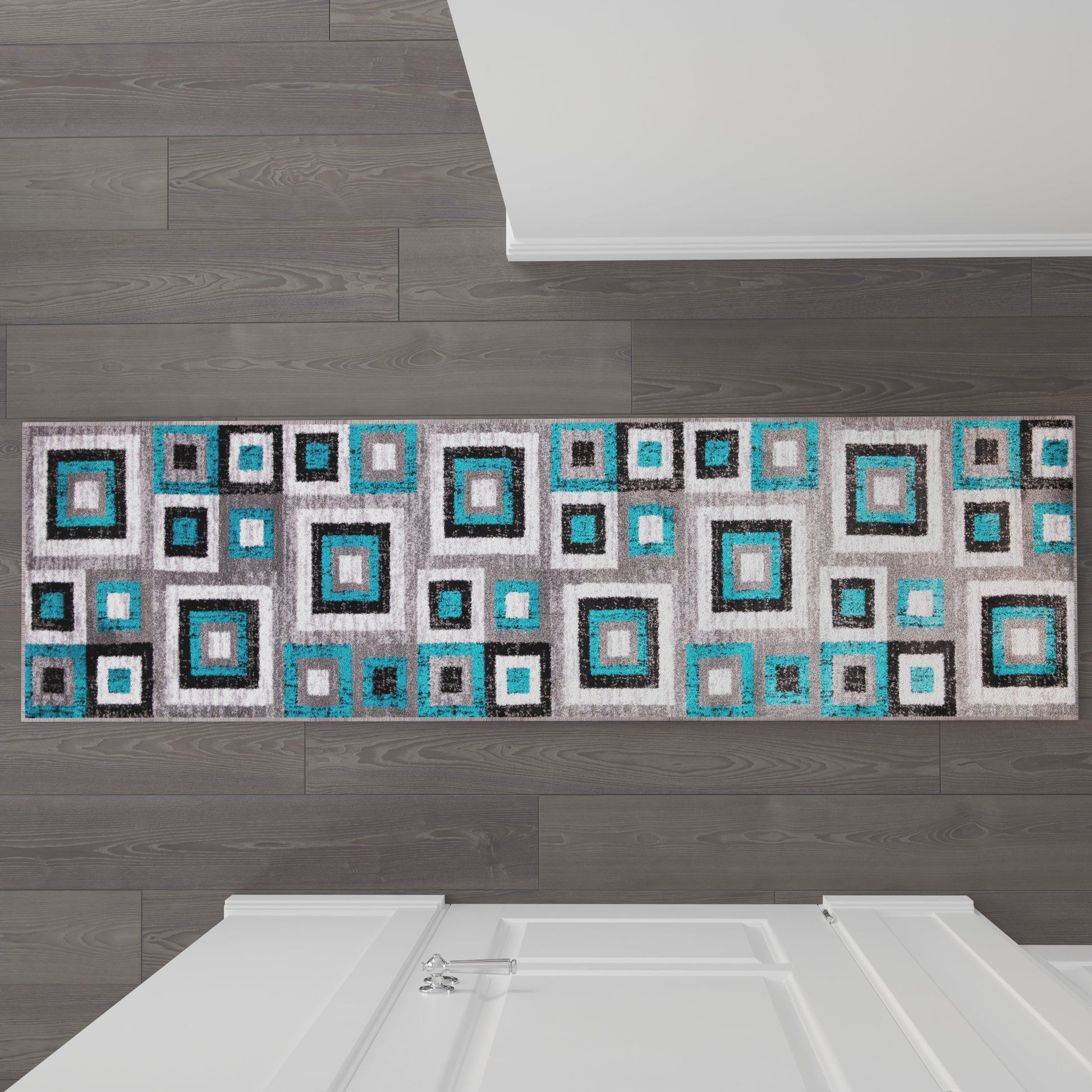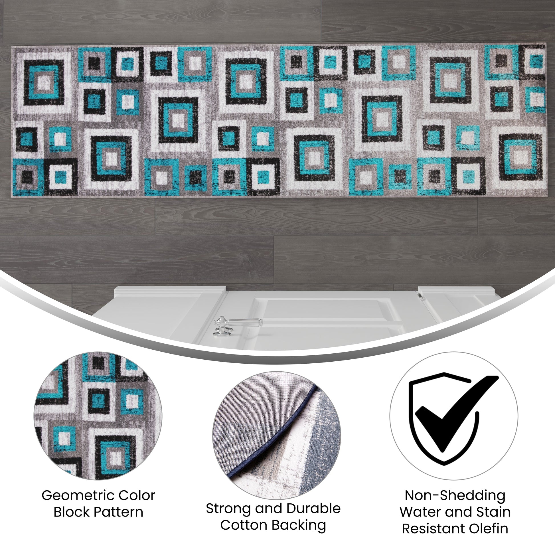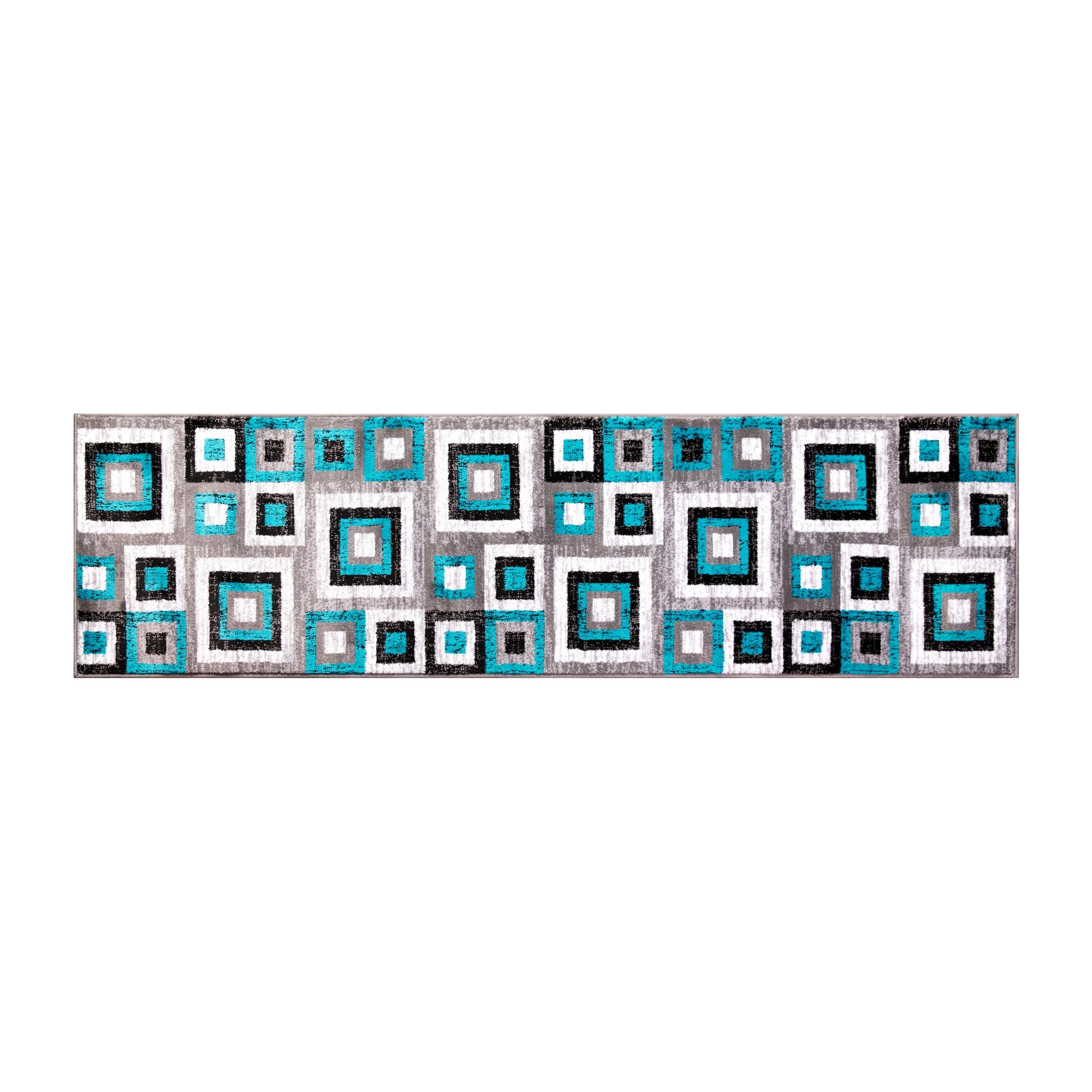 Gideon Collection Geometric 2' x 7' Turquoise, Grey, and White Olefin Area Rug with Cotton Backing, Living Room, Bedroom Dimensions: 24"W x 84"D x 0.5"H