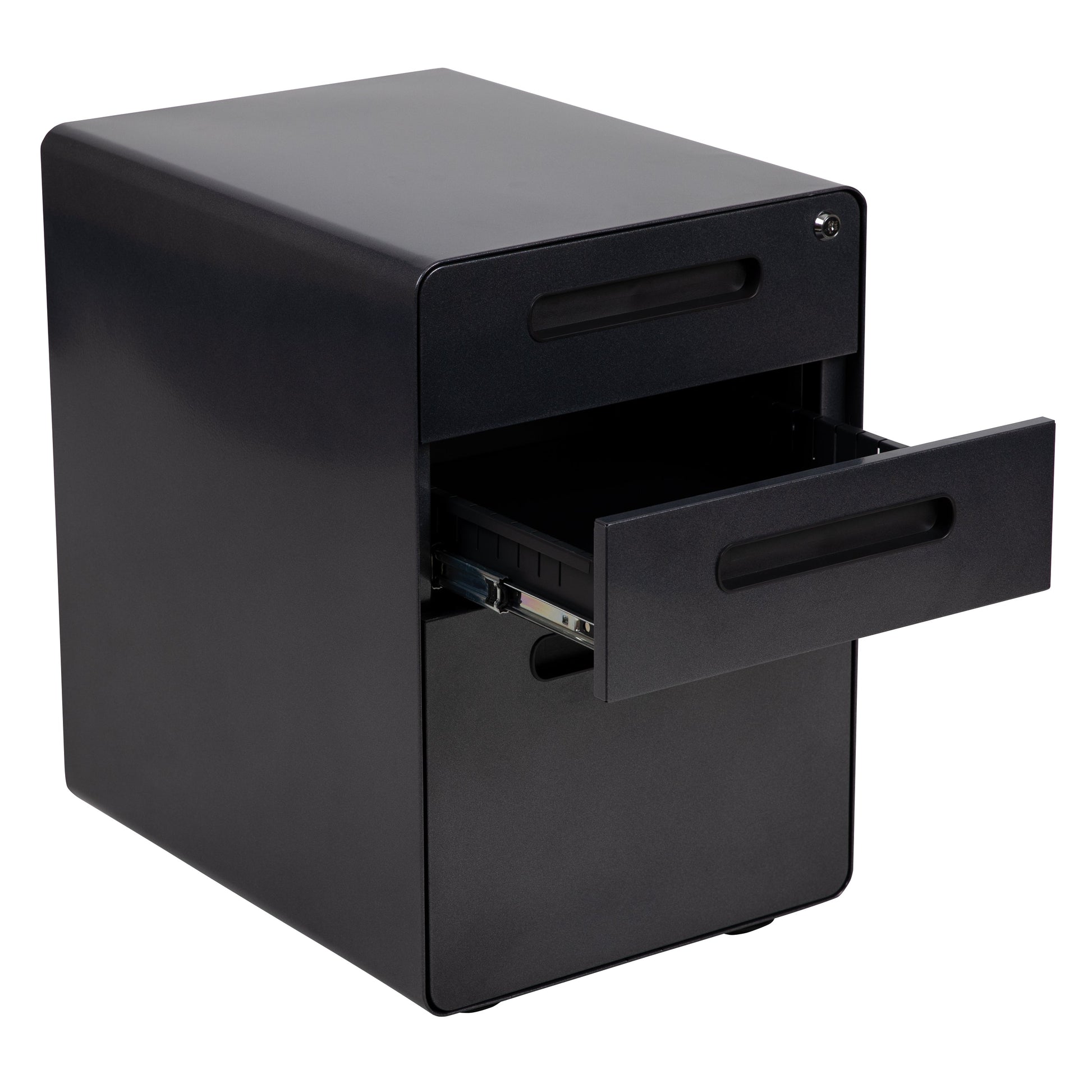 Wren Ergonomic 3-Drawer Mobile Locking Filing Cabinet with Anti-Tilt Mechanism and Hanging Drawer for Legal & Letter Files, Black Dimensions: 16"W x 21"D x 24"H