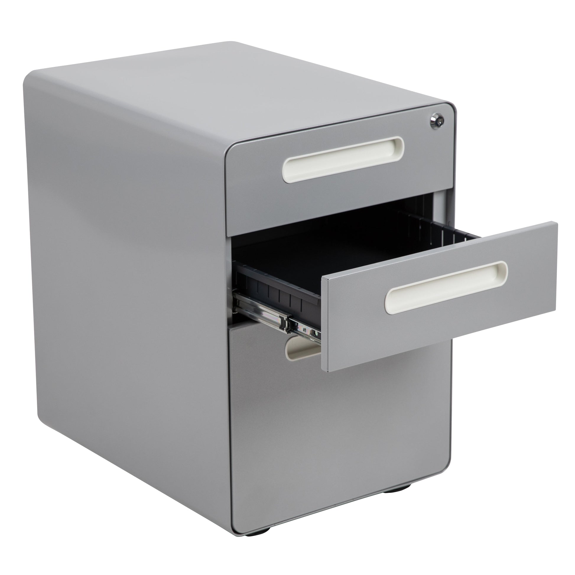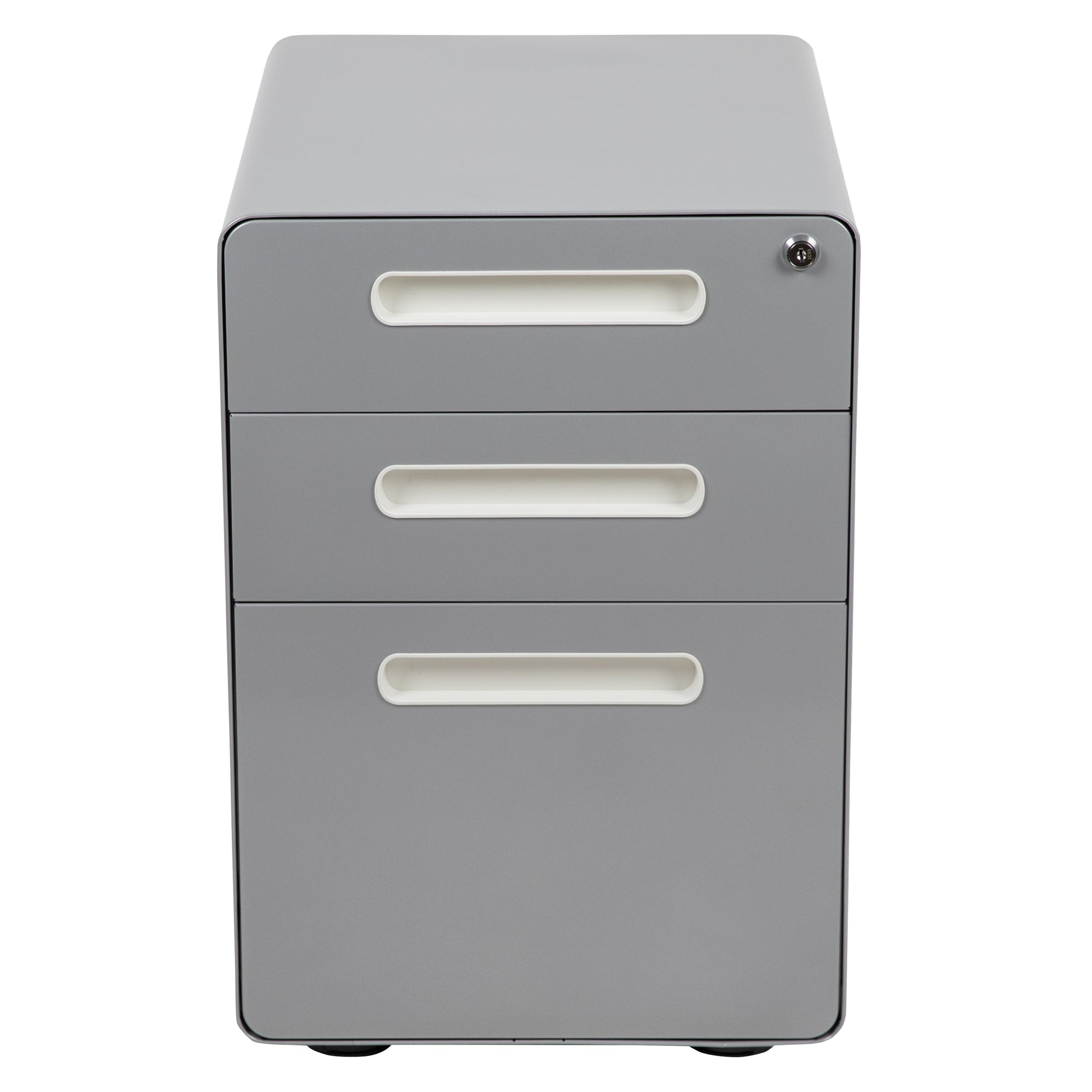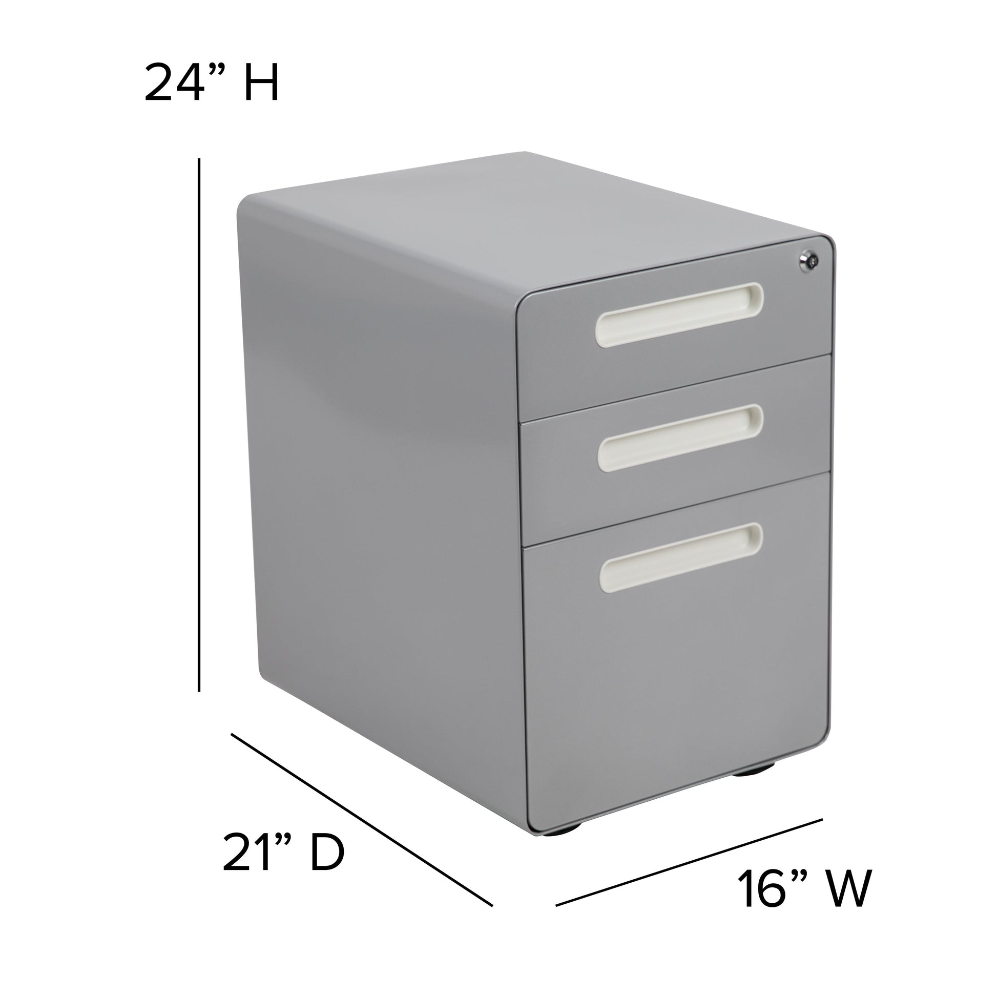 Wren Ergonomic 3-Drawer Mobile Locking Filing Cabinet with Anti-Tilt Mechanism and Hanging Drawer for Legal & Letter Files, Gray Dimensions: 16"W x 21"D x 24"H