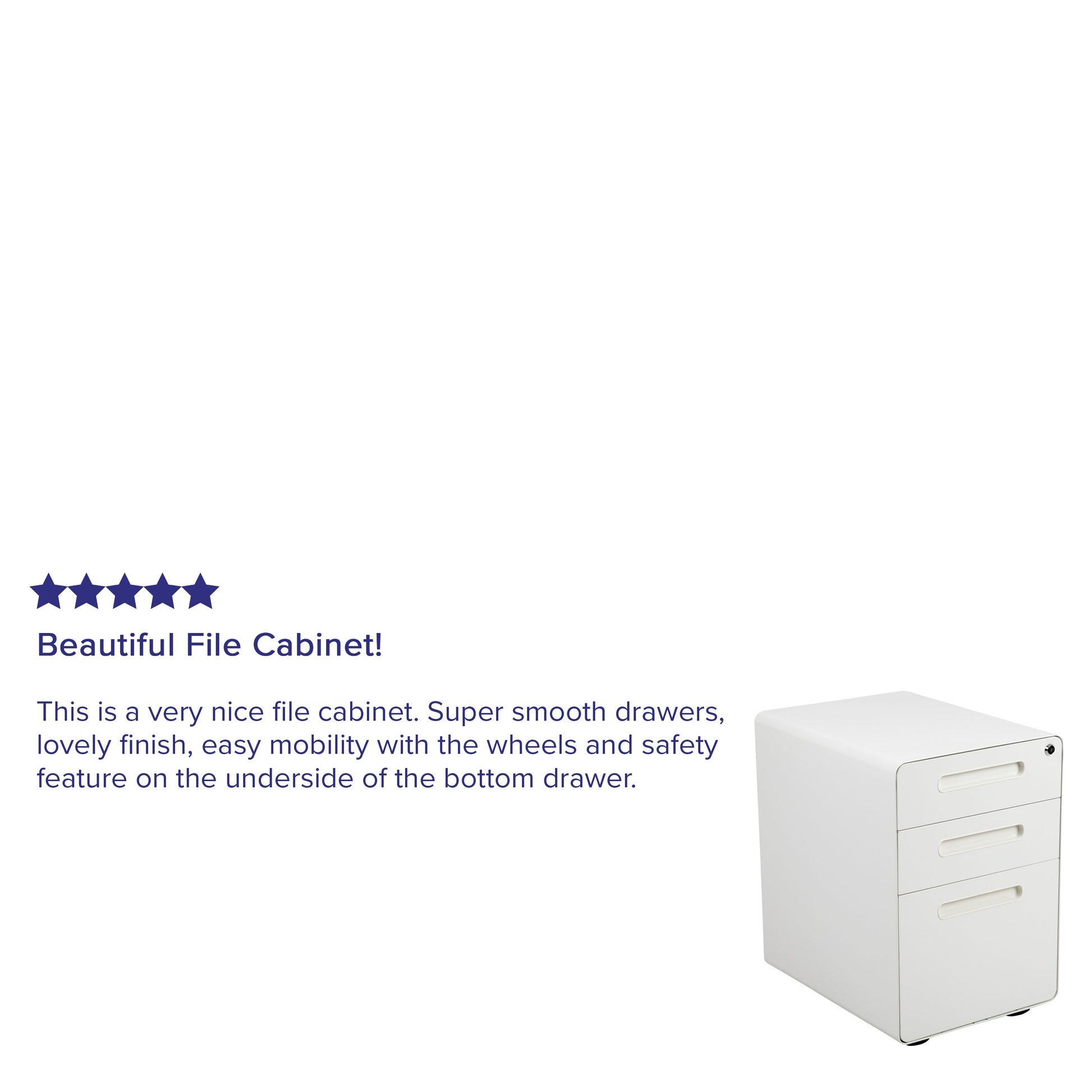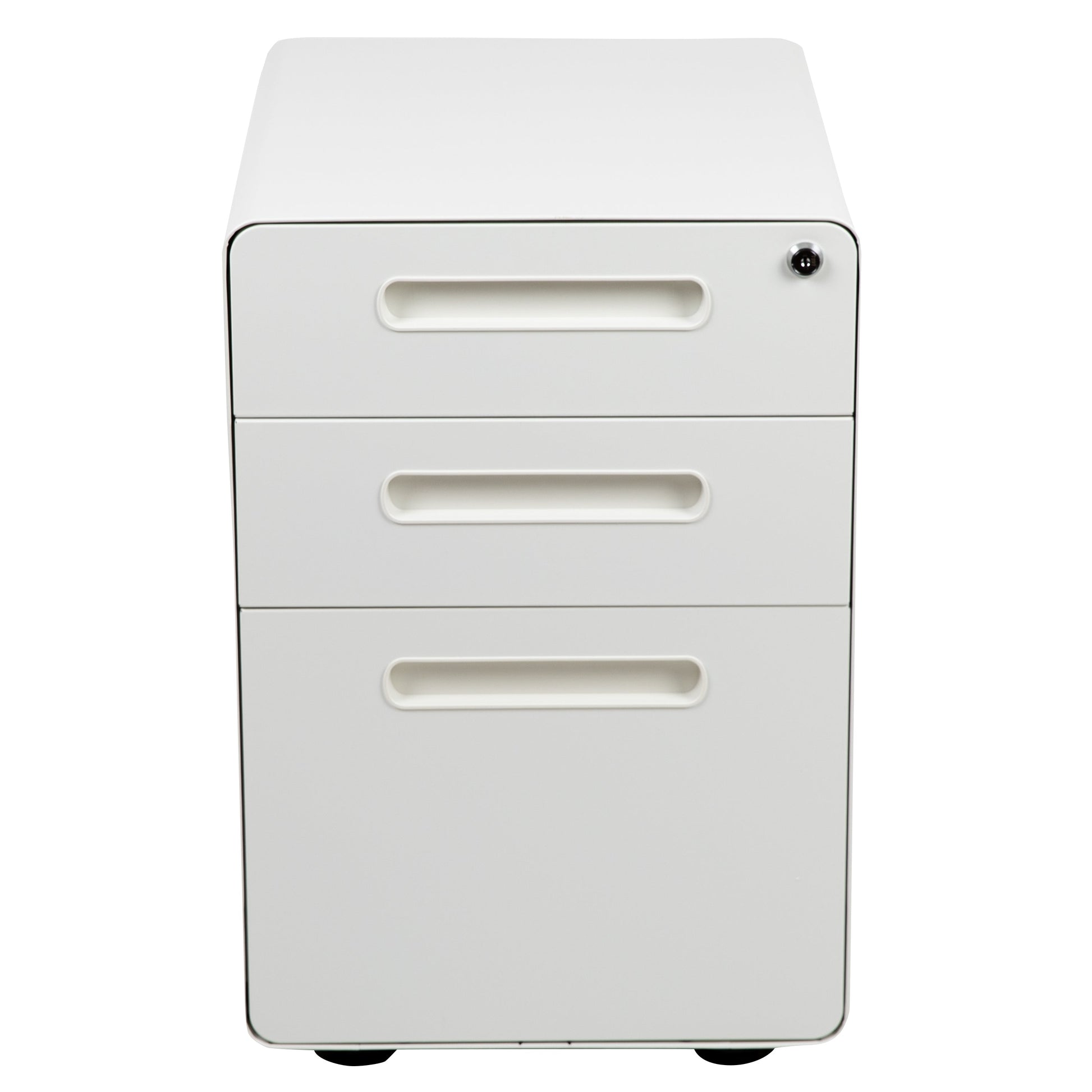 Wren Ergonomic 3-Drawer Mobile Locking Filing Cabinet with Anti-Tilt Mechanism and Hanging Drawer for Legal & Letter Files, White Dimensions: 16"W x 21"D x 24"H