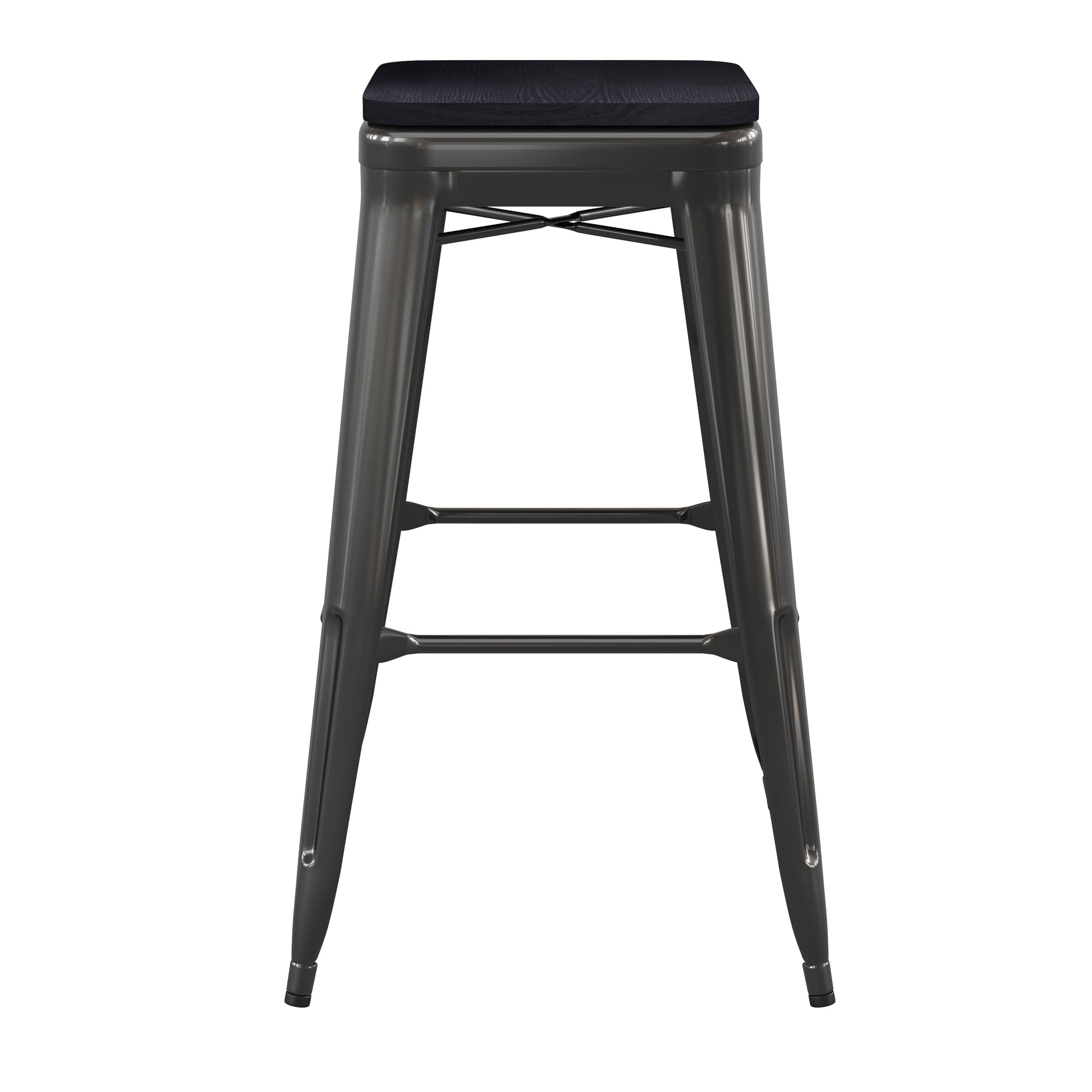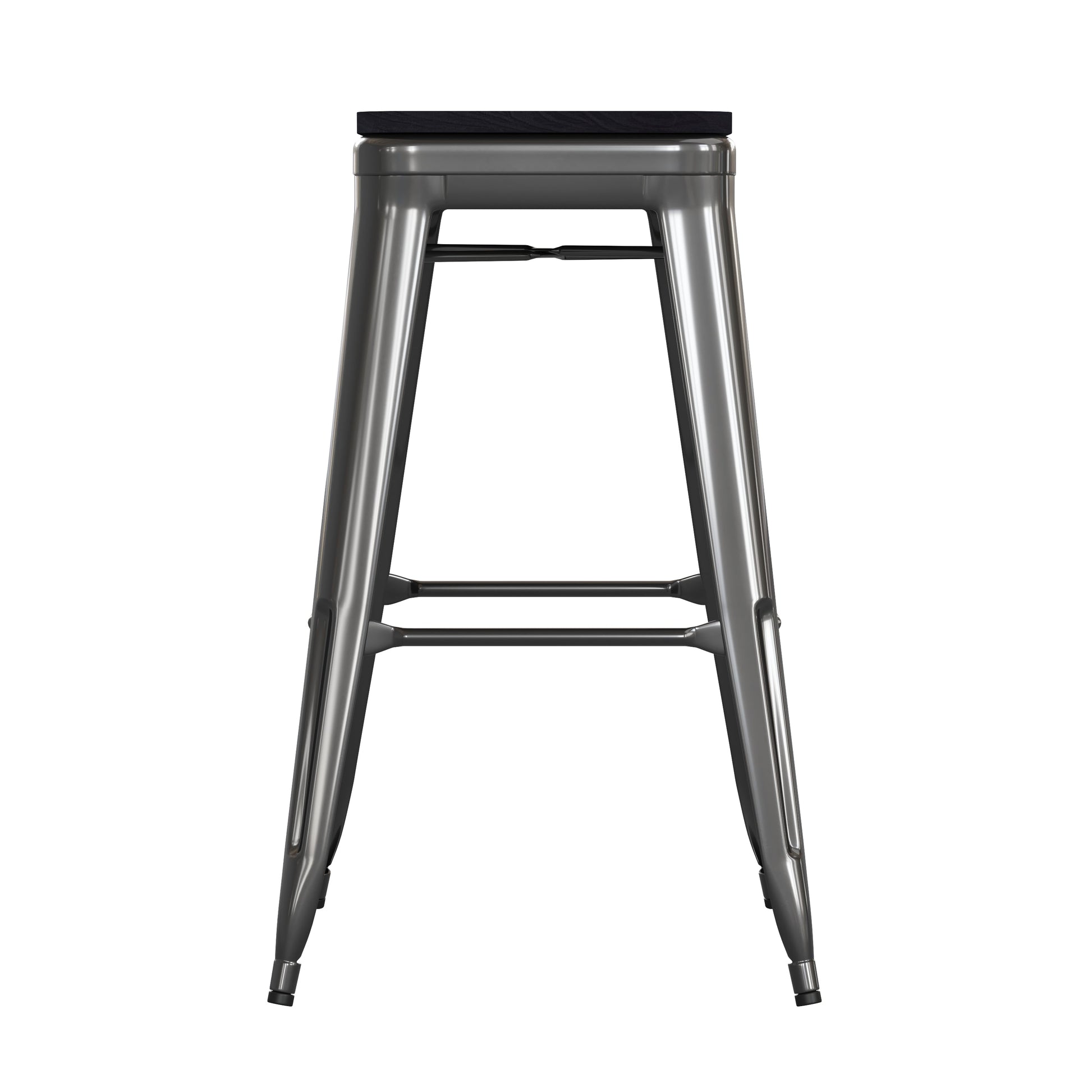 Kai Commercial Grade 30" High Backless Black Metal Indoor-Outdoor Barstool with Black Poly Resin Wood Seat Dimensions: 17"W x 17"D x 30.75"H
