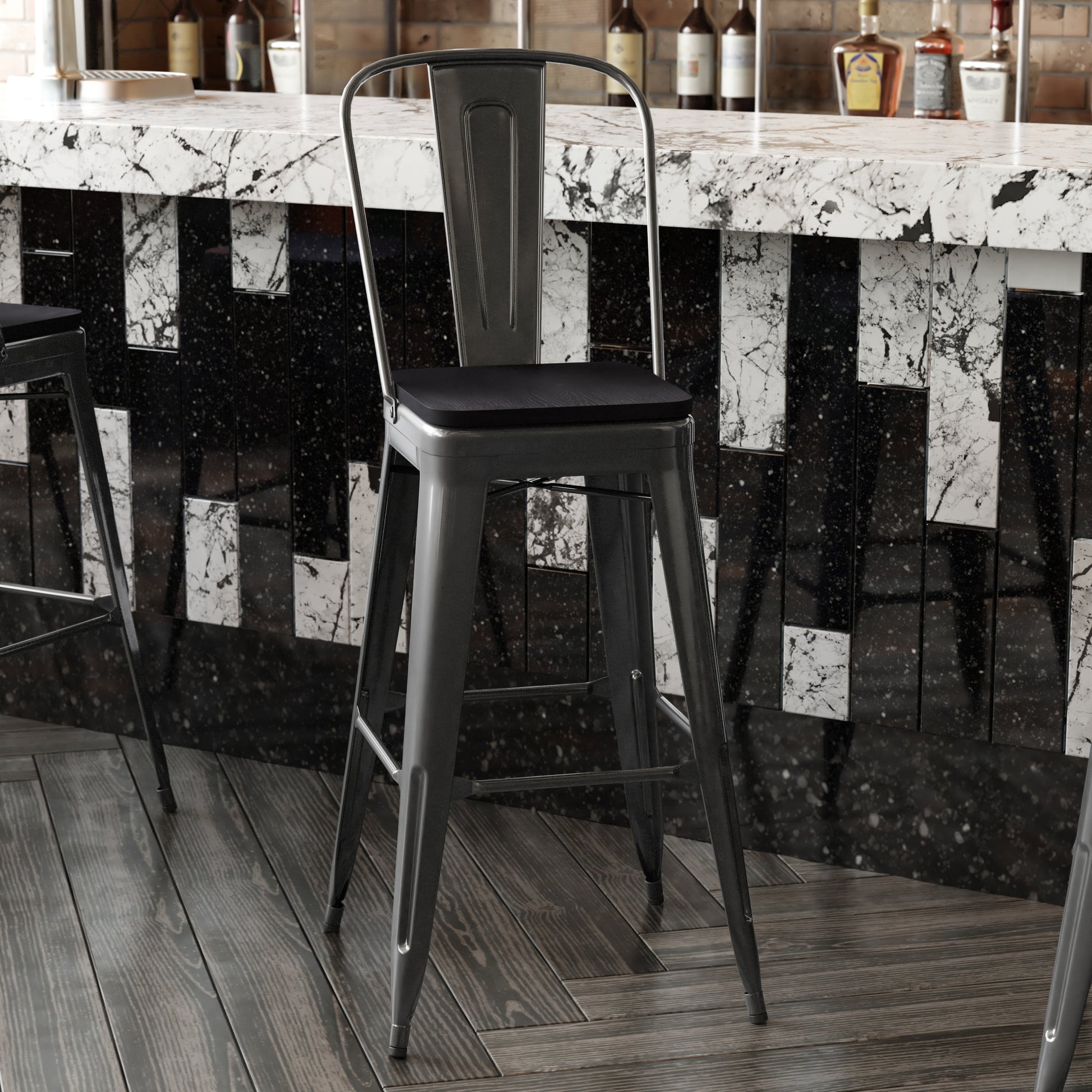 30" Black Stool-Black Seat CH-31320-30GB-BK-PL2B-GG