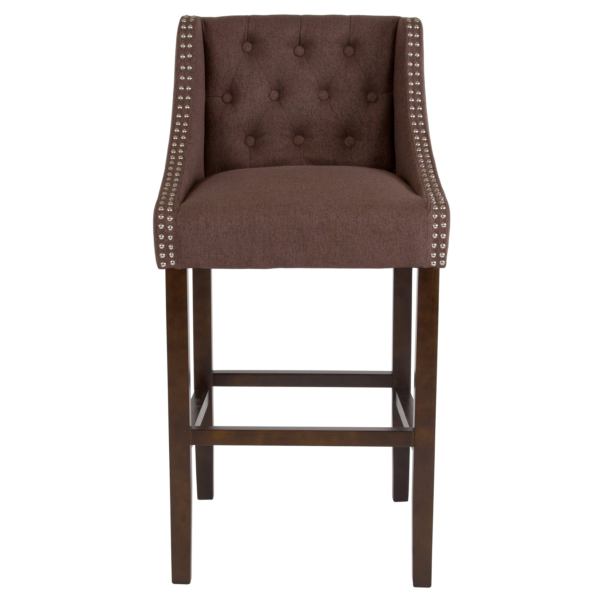 Carmel Series 30" High Transitional Tufted Walnut Barstool with Accent Nail Trim in Brown Fabric Dimensions: 20"W x 22"D x 42"H