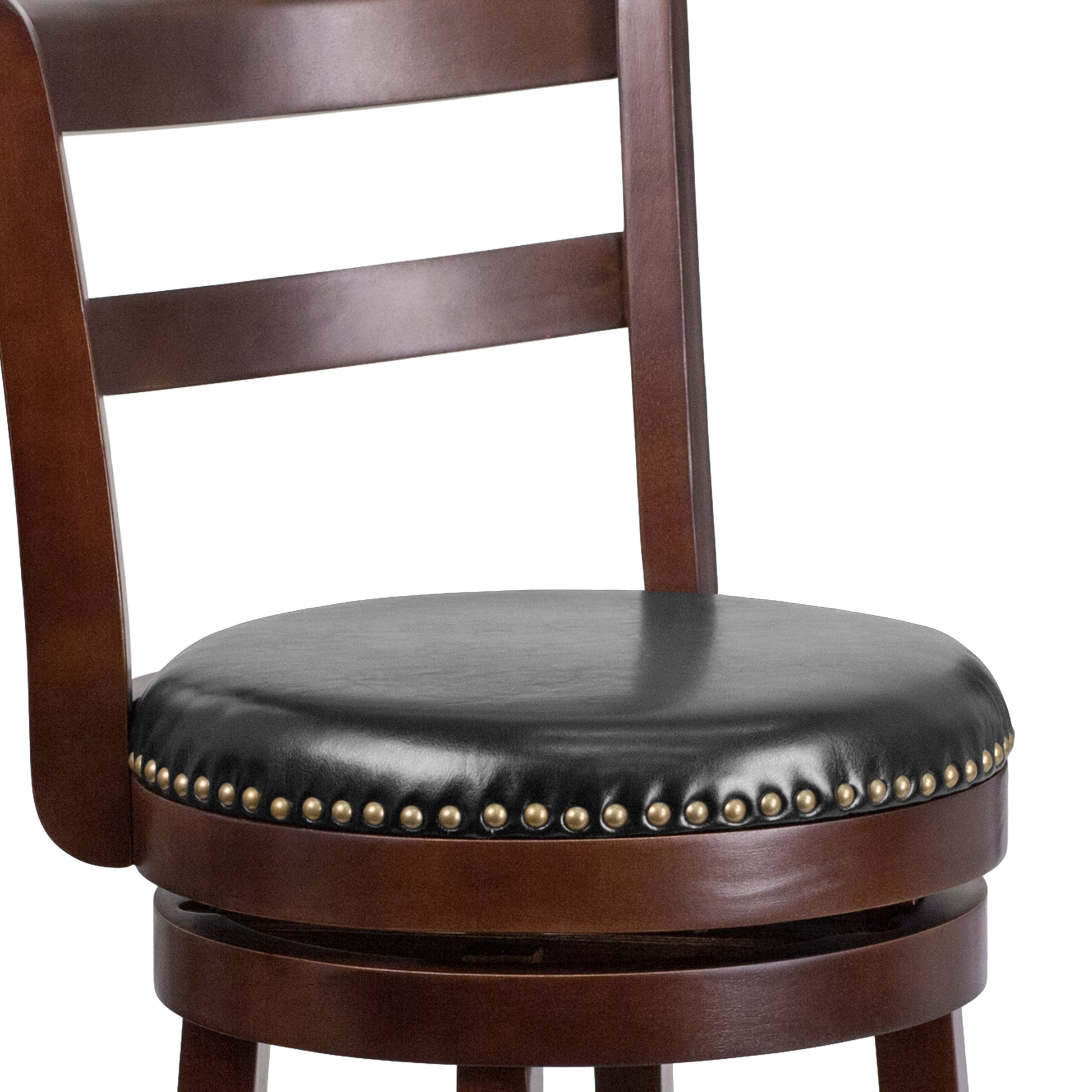 Becca 30'' High Cappuccino Wood Barstool with Single Slat Ladder Back and Black LeatherSoft Swivel Seat Dimensions: 18"W x 20"D x 43"H