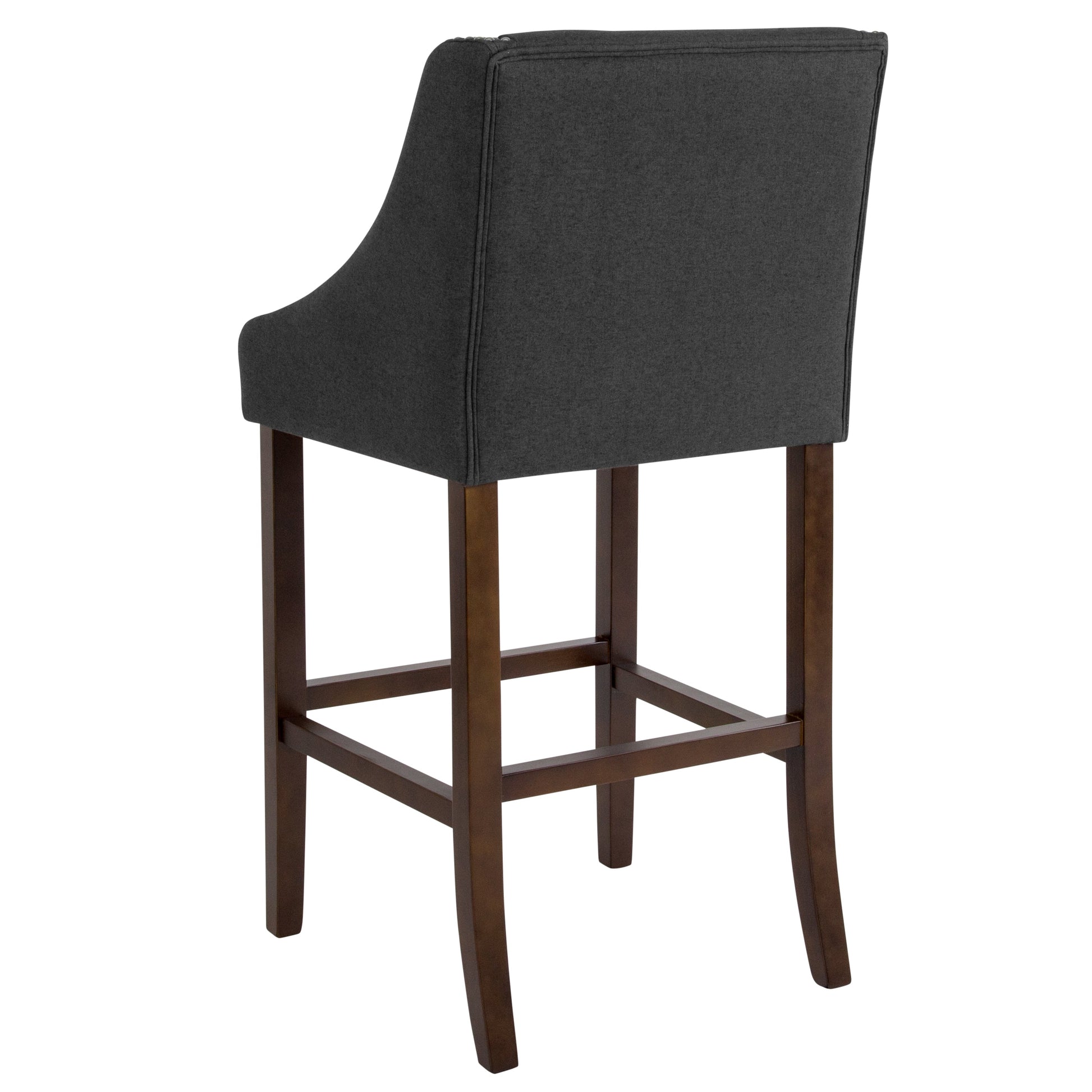 Carmel Series 30" High Transitional Walnut Barstool with Accent Nail Trim in Charcoal Fabric Dimensions: 20"W x 22"D x 42"H