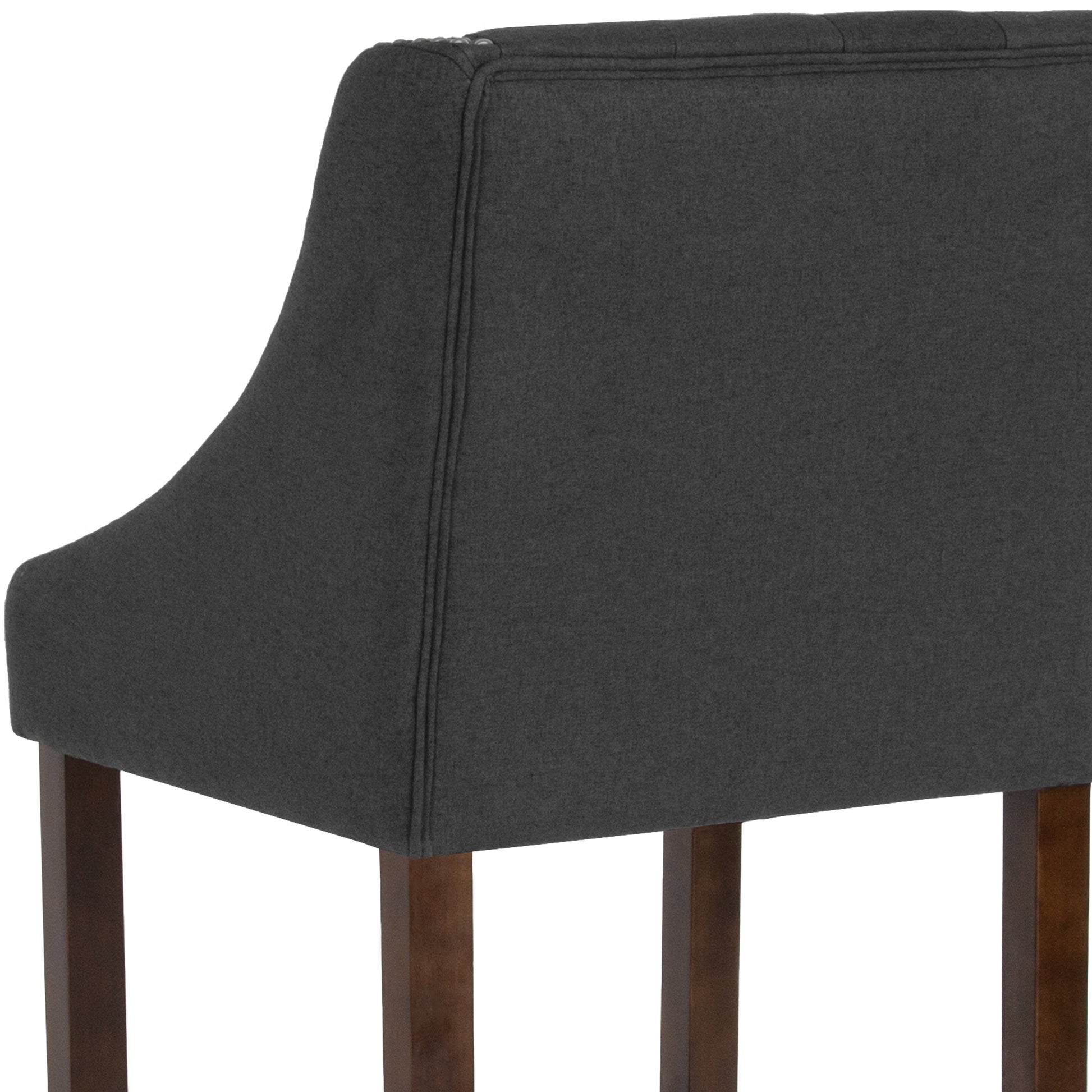 Carmel Series 30" High Transitional Tufted Walnut Barstool with Accent Nail Trim in Charcoal Fabric Dimensions: 20"W x 22"D x 42"H