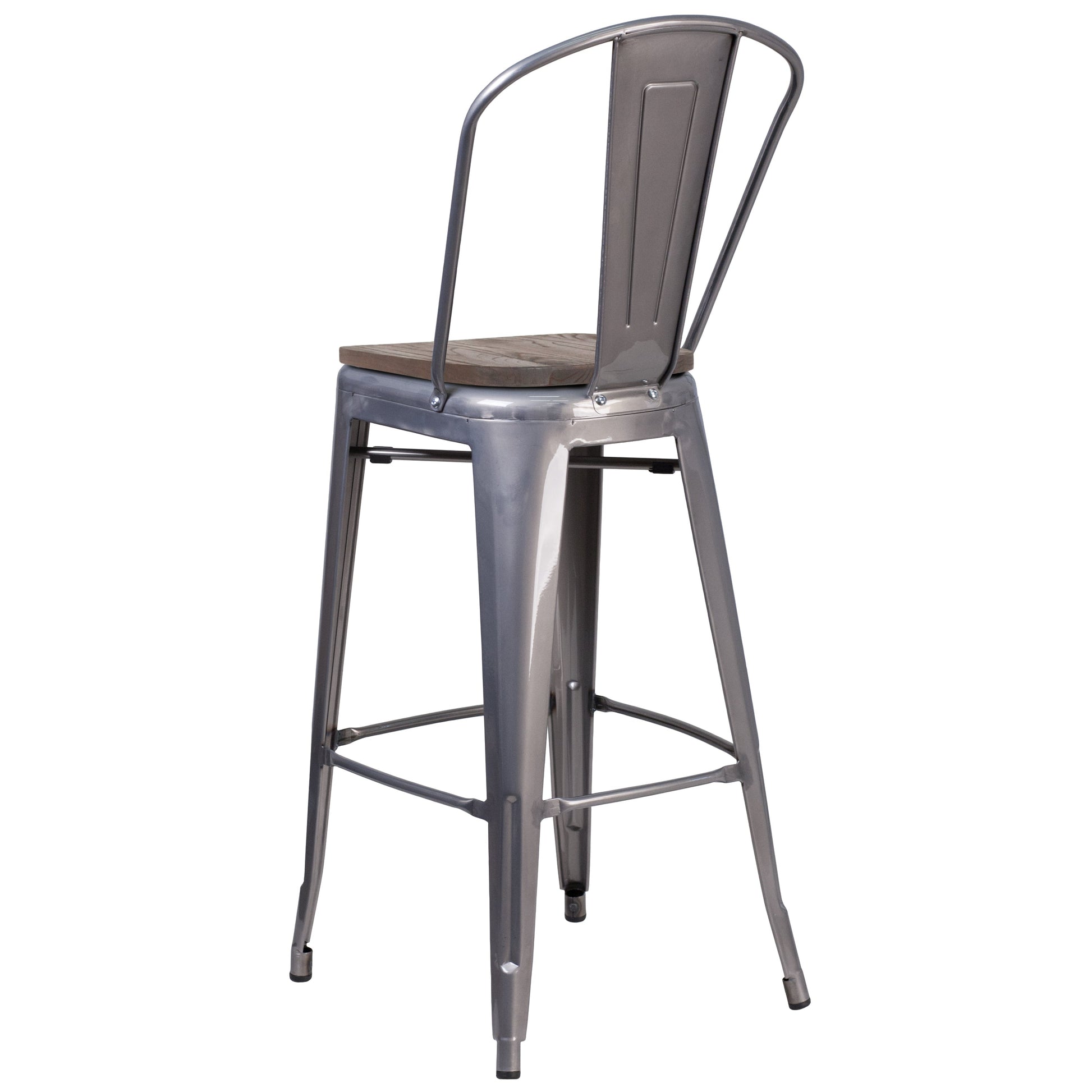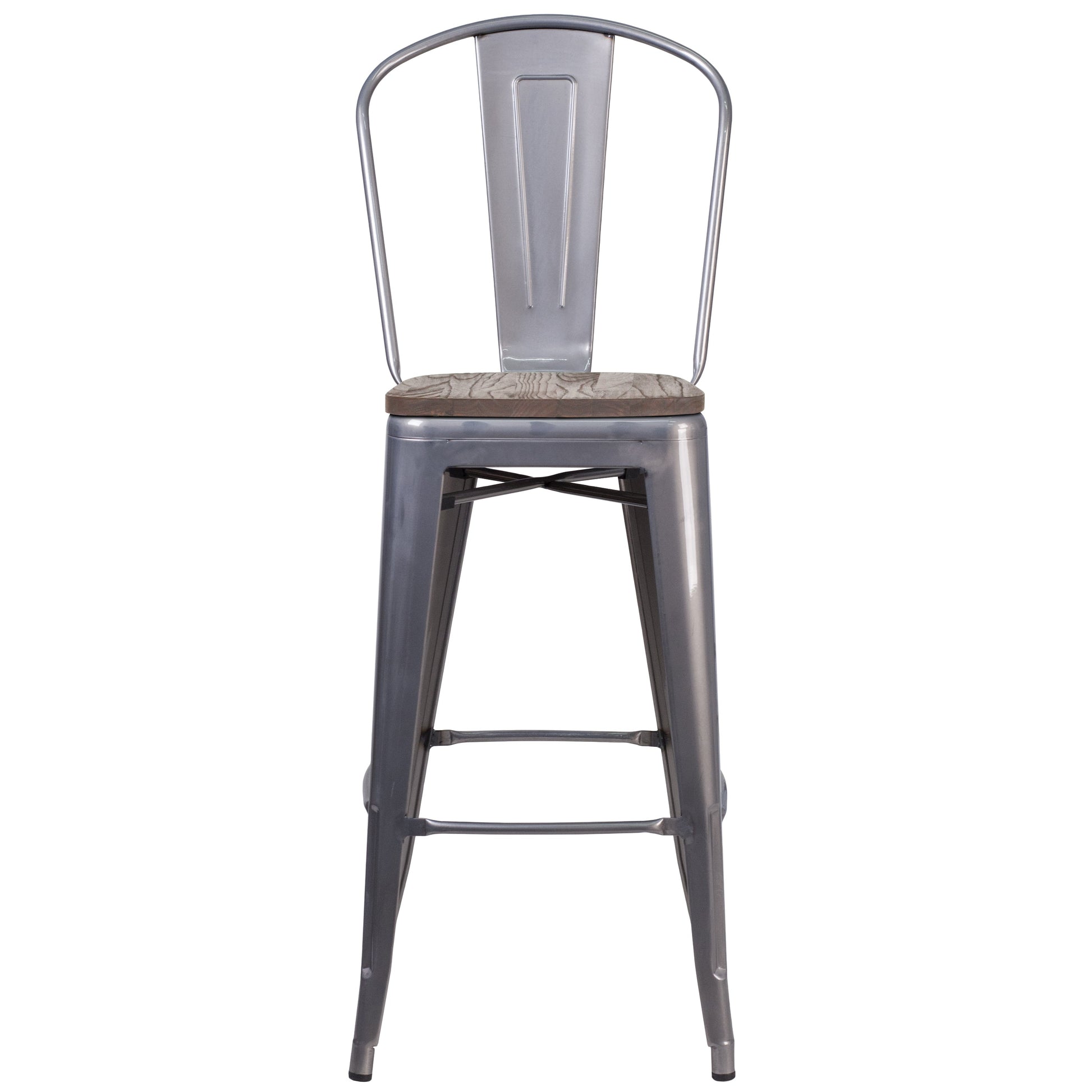 Lincoln 30" High Clear Coated Barstool with Back and Wood Seat Dimensions: 17.75"W x 22.5"D x 46.5"H