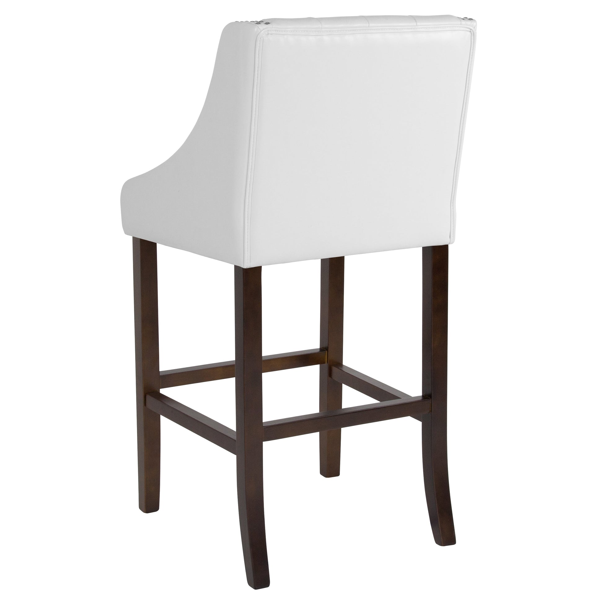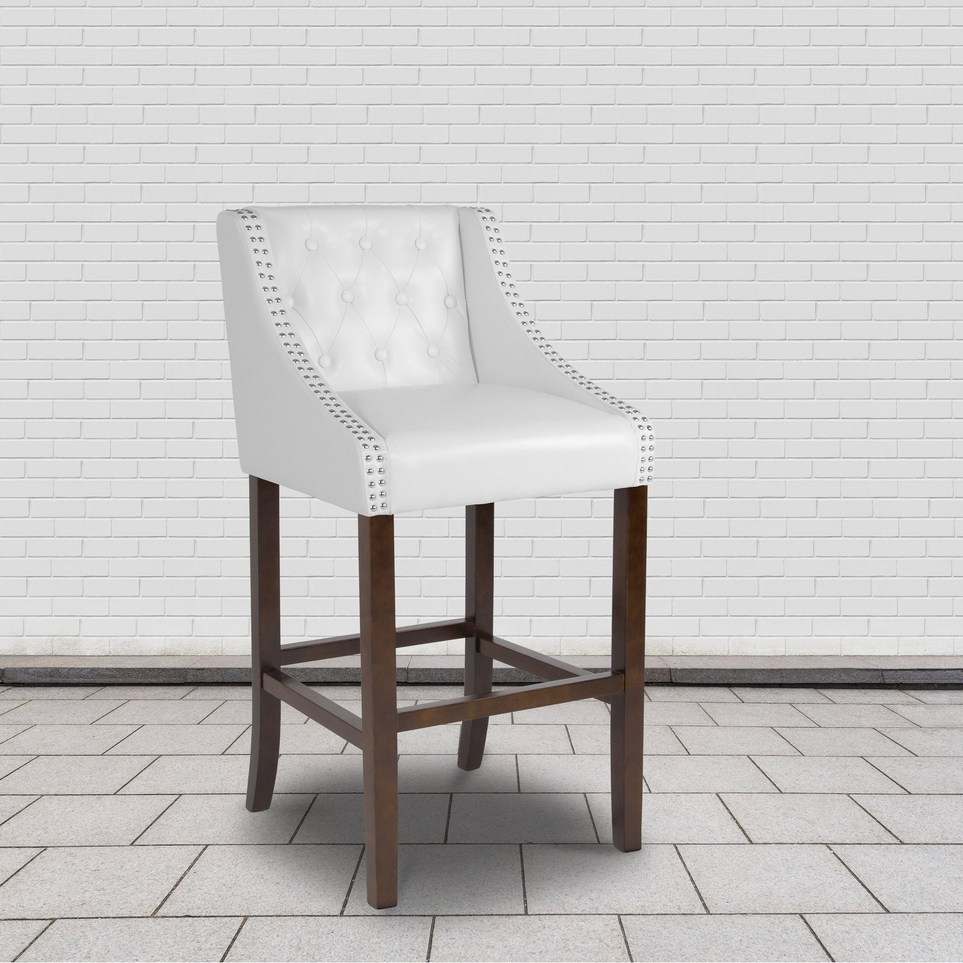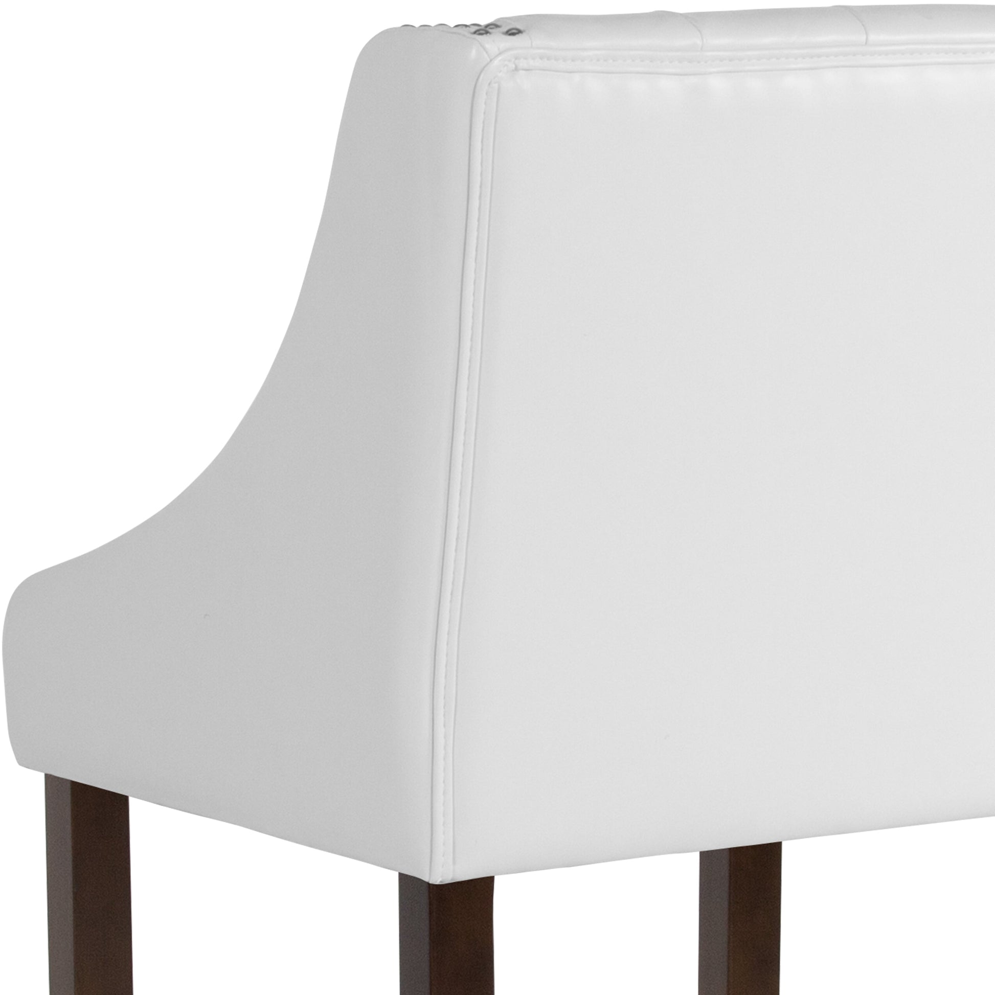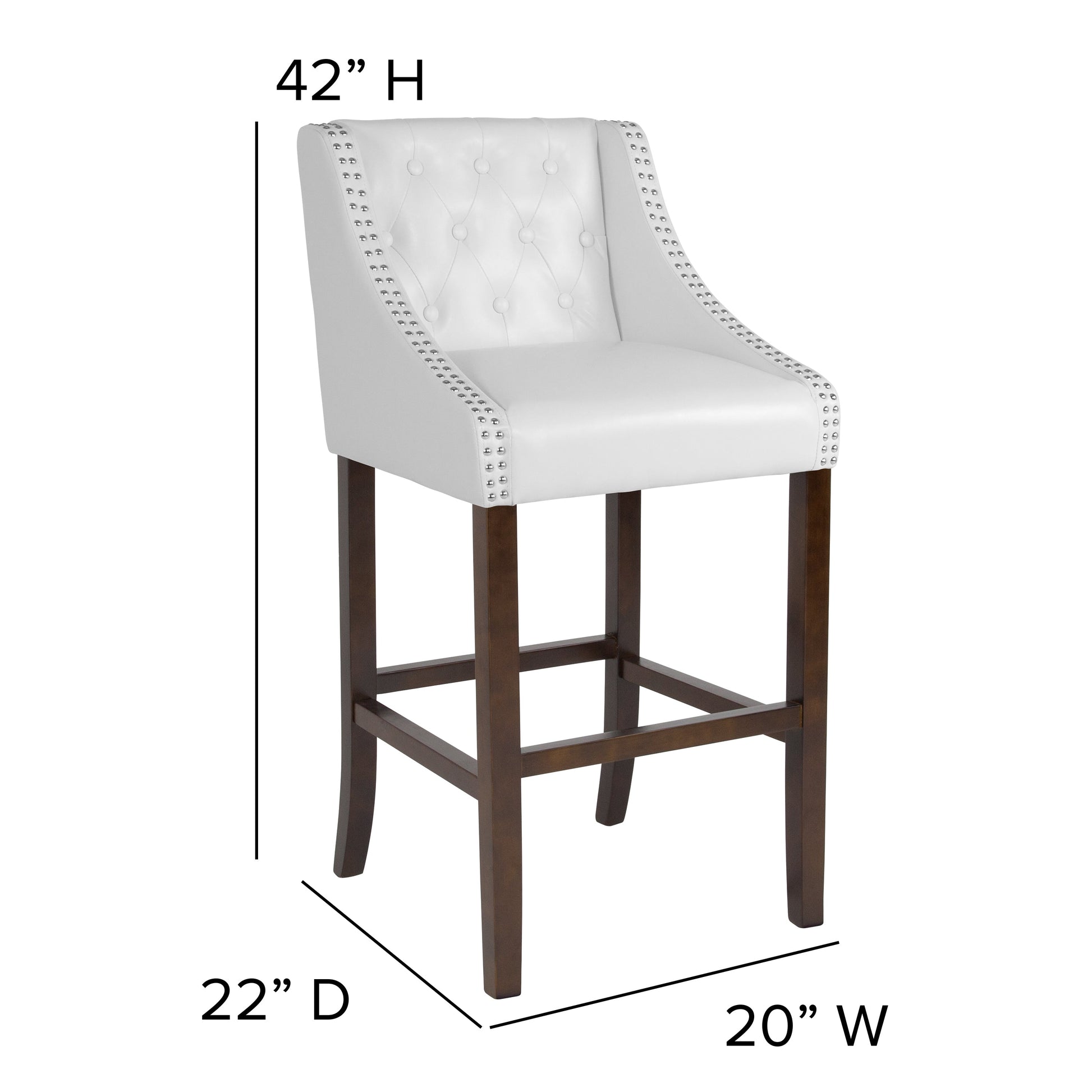 Carmel Series 30" High Transitional Tufted Walnut Barstool with Accent Nail Trim in White LeatherSoft Dimensions: 20"W x 22"D x 42"H