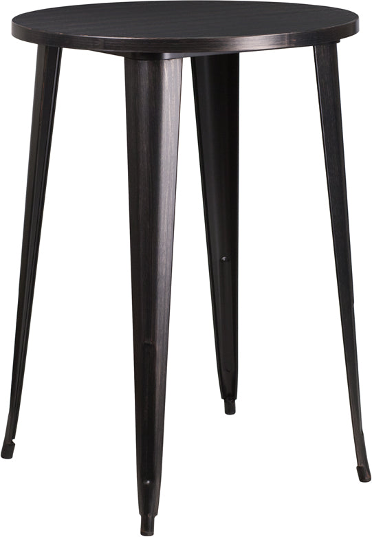 Philip Commercial Grade 30" Round Black-Antique Gold Metal Indoor-Outdoor Bar Height Table Dimensions: 30"W x 30"D x 41"H