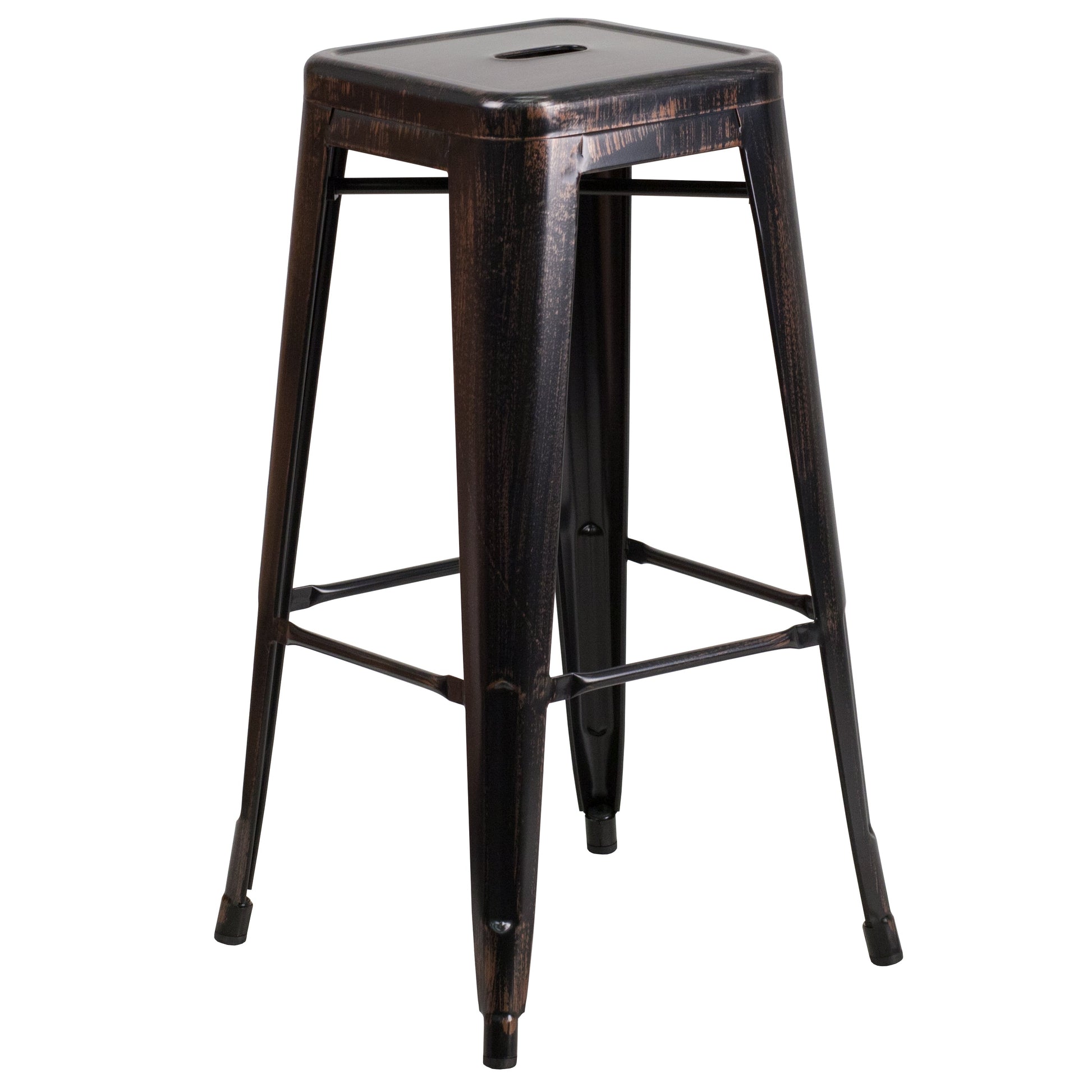 Boyd Commercial Grade 30" Round Black-Antique Gold Metal Indoor-Outdoor Bar Table Set with 2 Square Seat Backless Stools Dimensions: 30"W x 30"D x 41"H