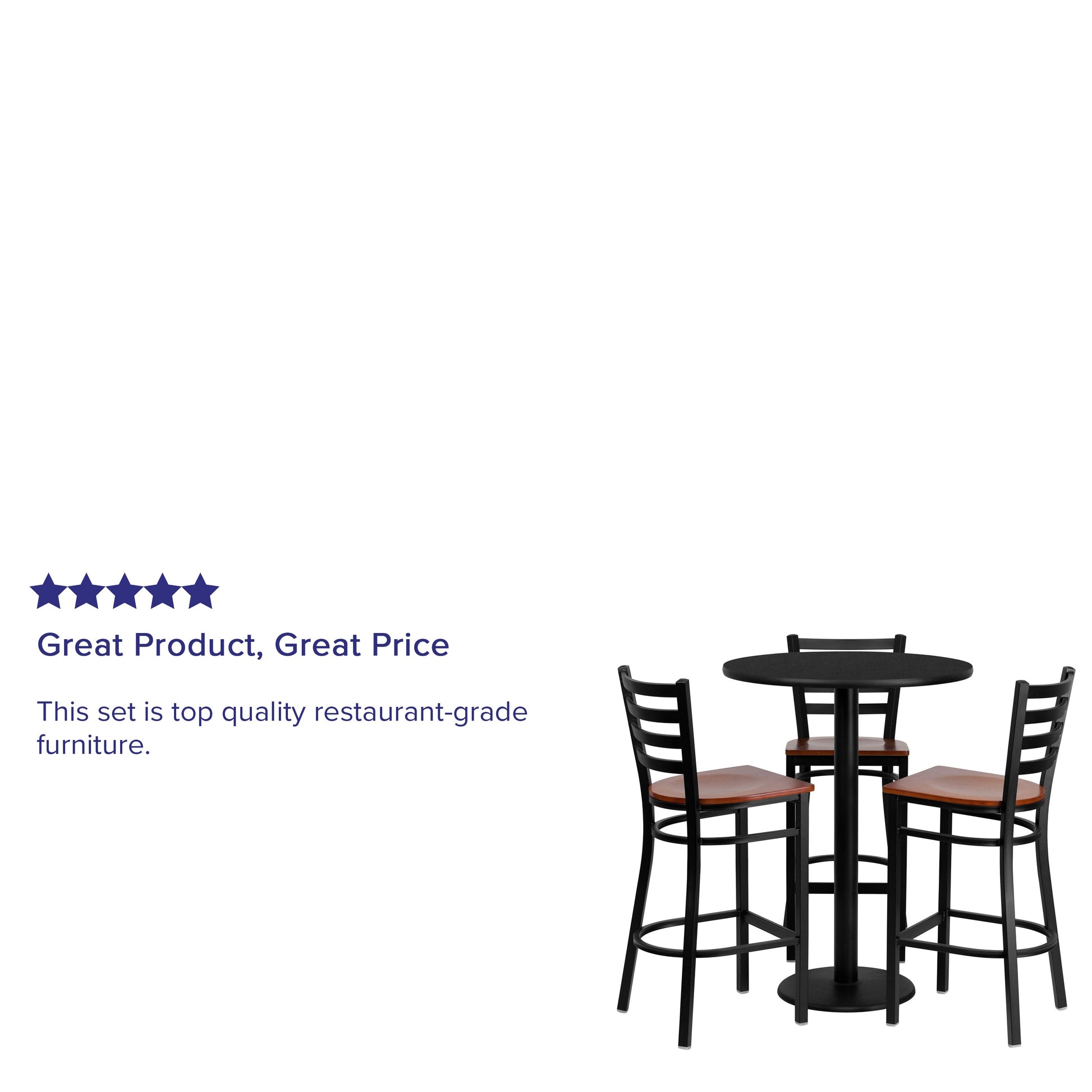 Clark 30'' Round Black Laminate Table Set with 3 Ladder Back Metal Barstools - Cherry Wood Seat Dimensions: 30"W x 30"D x 42"H