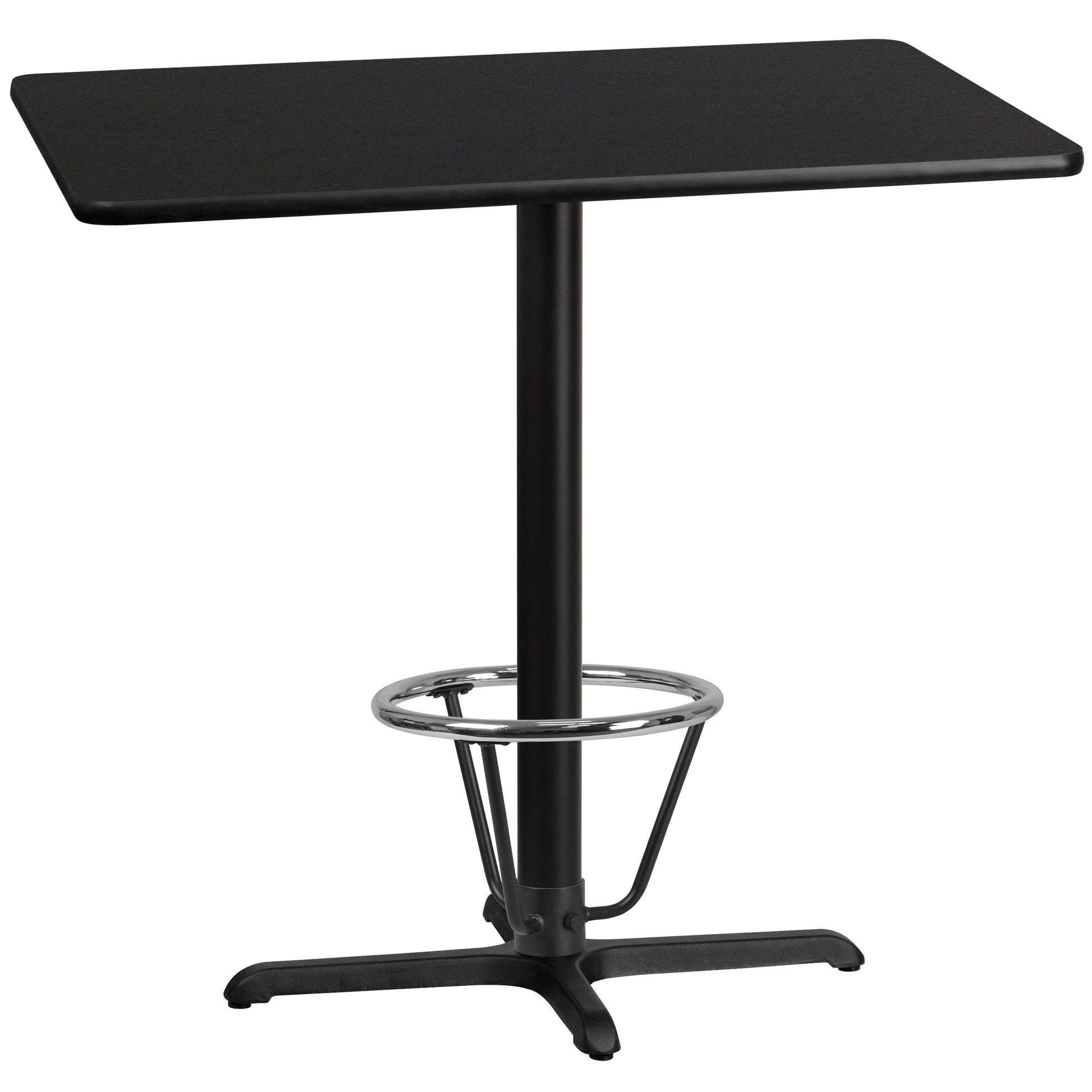 Stiles 30'' x 42'' Rectangular Black Laminate Table Top with 23.5'' x 29.5'' Bar Height Table Base and Foot Ring Dimensions: 30"W x 42"D x 43.125"H