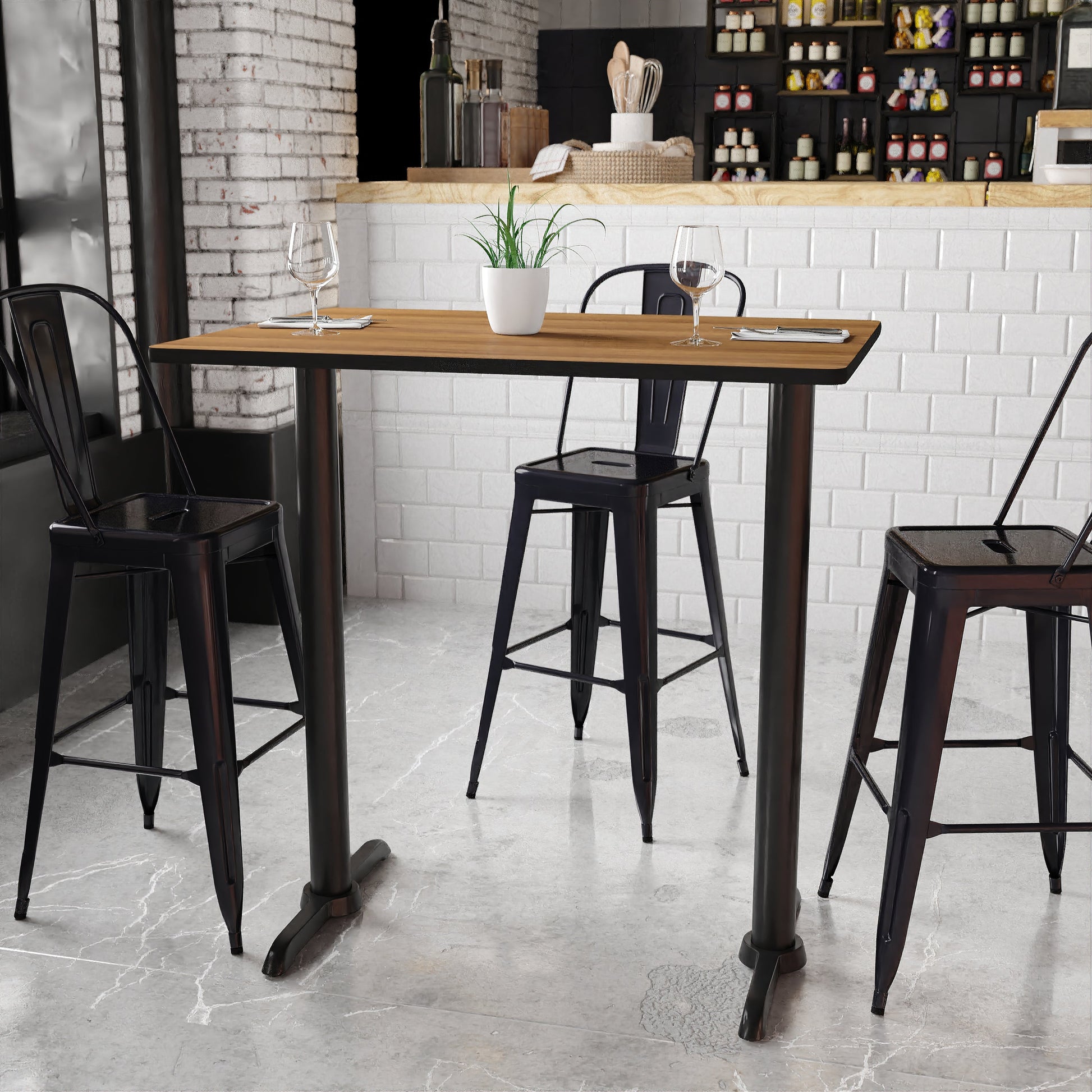 Stiles 30'' x 42'' Rectangular Walnut Laminate Table Top with 5'' x 22'' Bar Height Table Bases Dimensions: 30"W x 42"D x 43.125"H