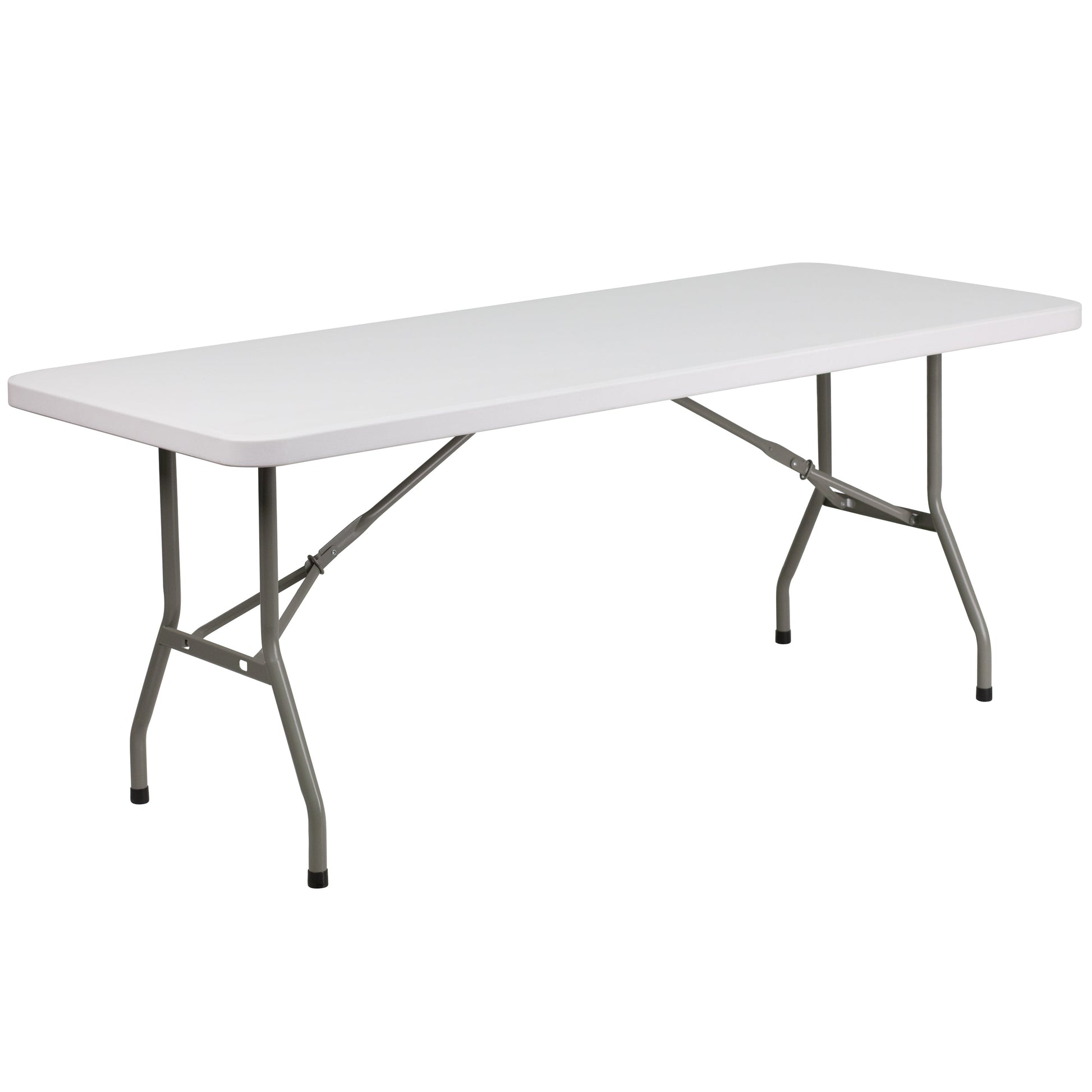 Elon 6-Foot Granite White Plastic Folding Table Dimensions: 30"W x 72"D x 29"H