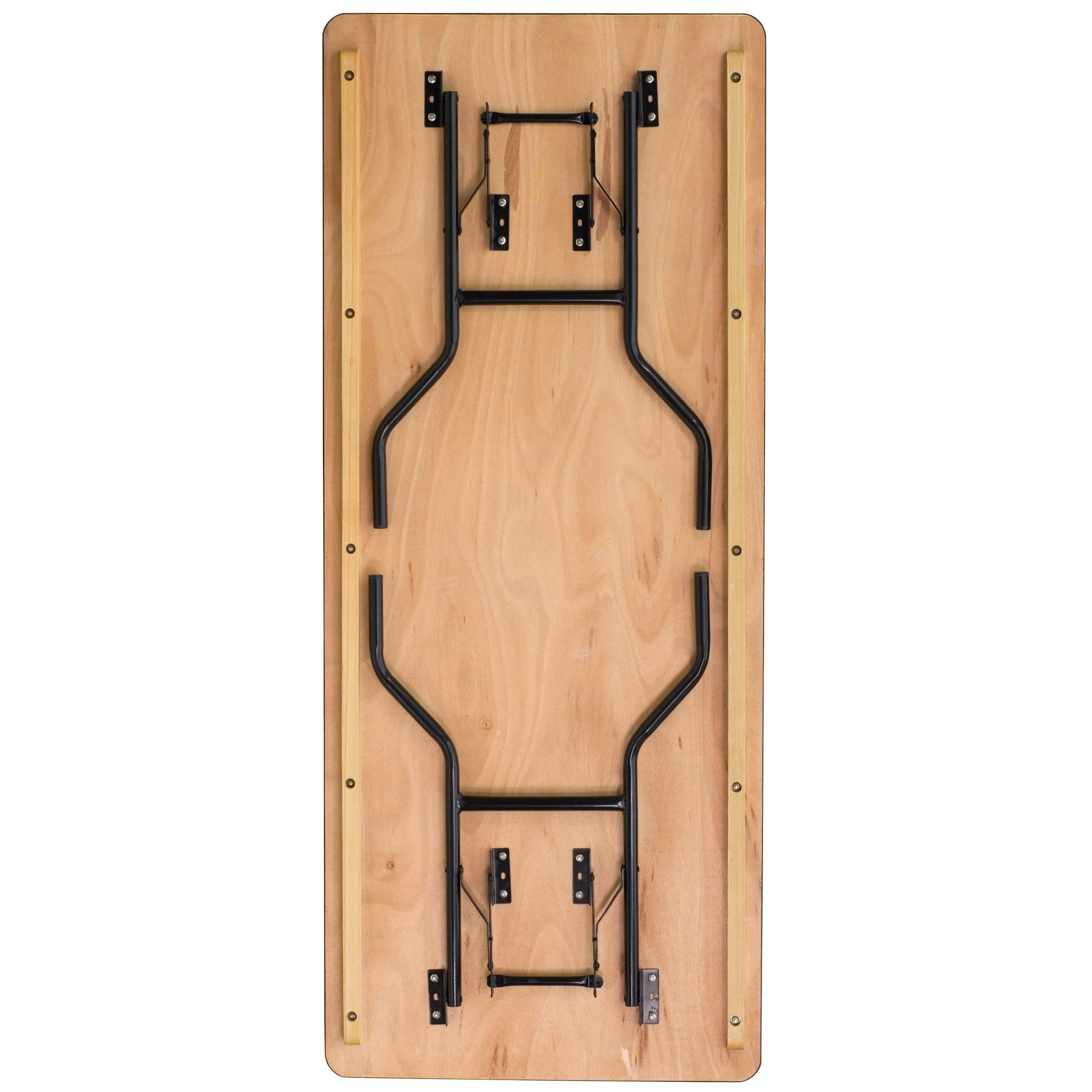 Gael 6-Foot Rectangular Wood Folding Banquet Table with Clear Coated Finished Top Dimensions: 30"W x 72"D x 30.25"H
