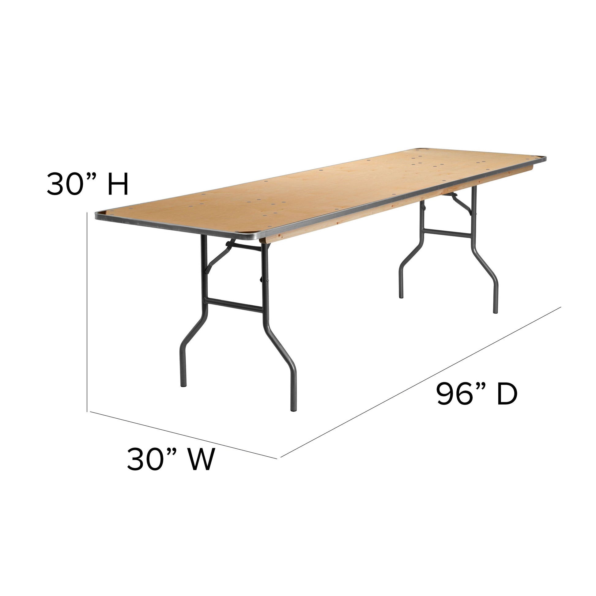 Fielder 8-Foot Rectangular HEAVY DUTY Birchwood Folding Banquet Table with METAL Edges and Protective Corner Guards Dimensions: 30"W x 96"D x 30"H