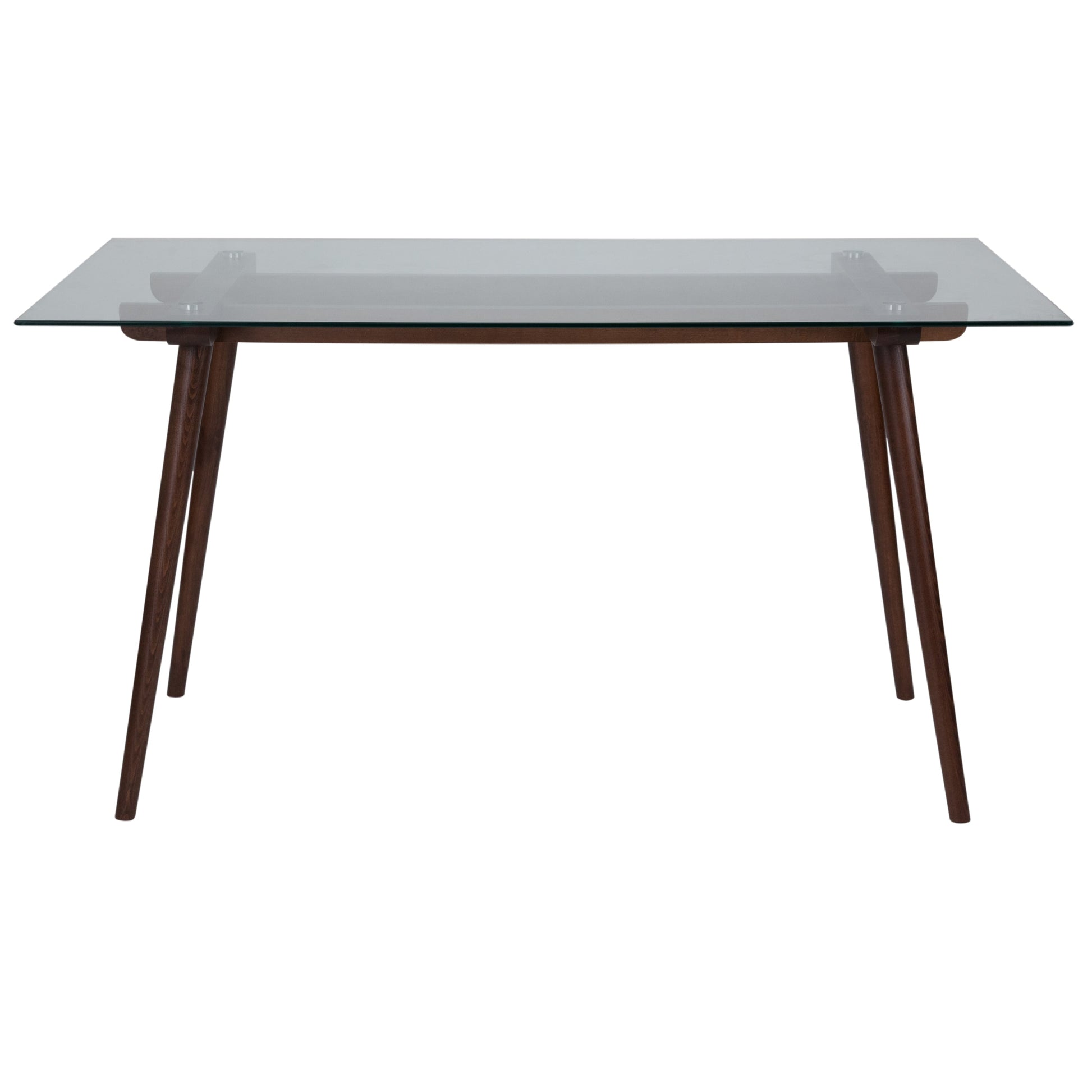 Meriden 31.5" x 55" Rectangular Solid Walnut Wood Table with Clear Glass Top Dimensions: 31.5"W x 55"D x 29.5"H