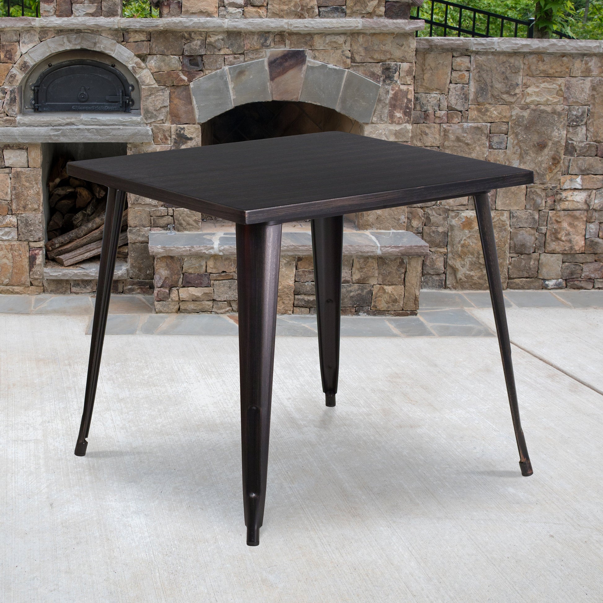 Toby Commercial Grade 31.75" Square Black-Antique Gold Metal Indoor-Outdoor Table Dimensions: 31.75"W x 31.75"D x 29.5"H
