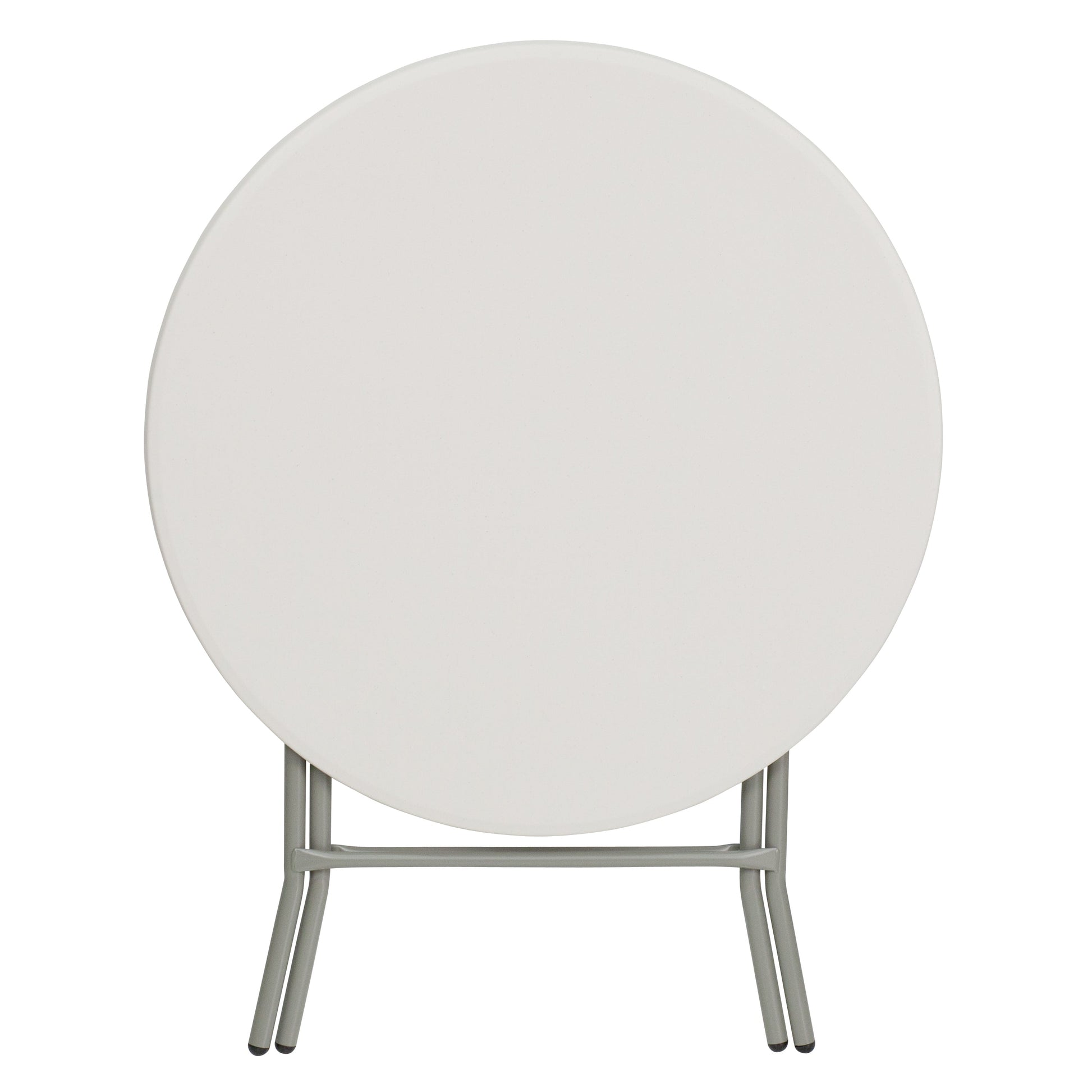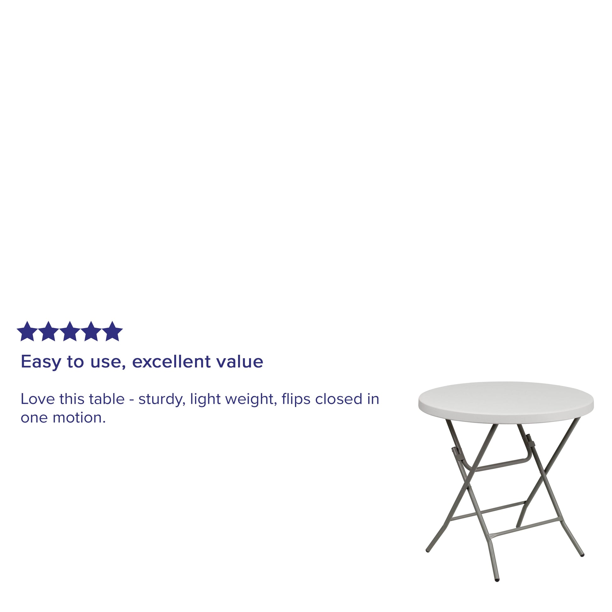Kathryn 2.63-Foot Round Granite White Plastic Folding Table Dimensions: 31.5"W x 31.5"D x 30.25"H
