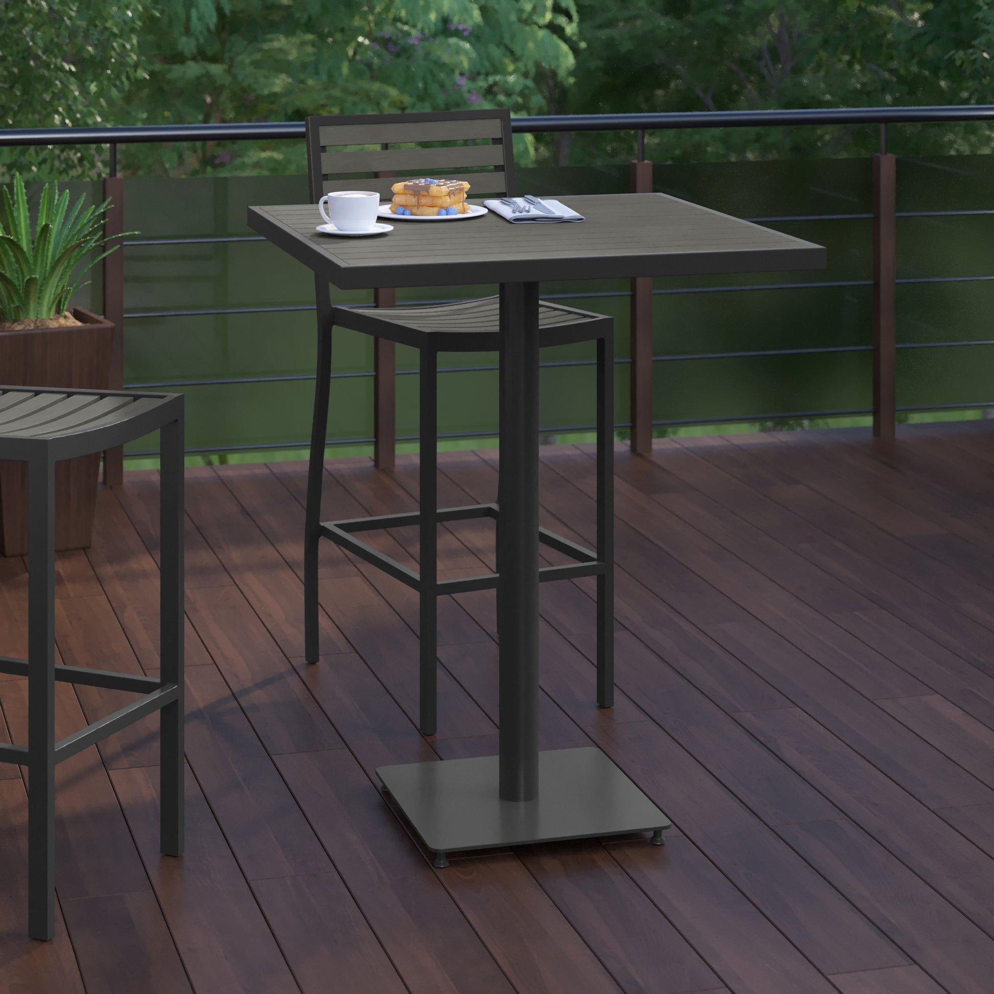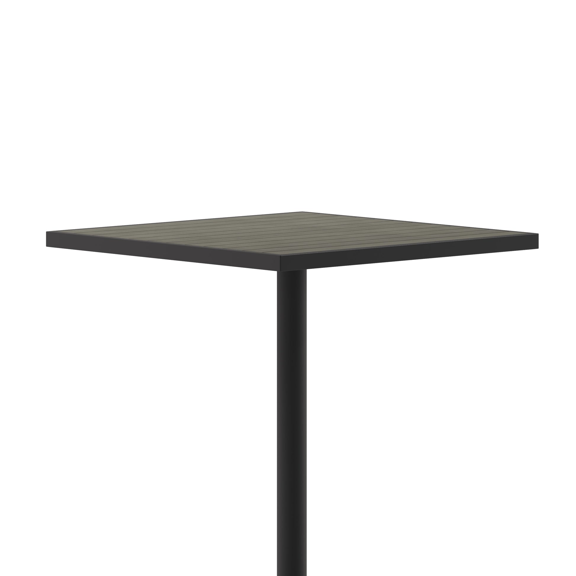 Lark Commercial Grade 32" Square Outdoor Bar Height Table with Gray Wash Poly Resin Slats Dimensions: 32"W x 32"D x 40.5"H